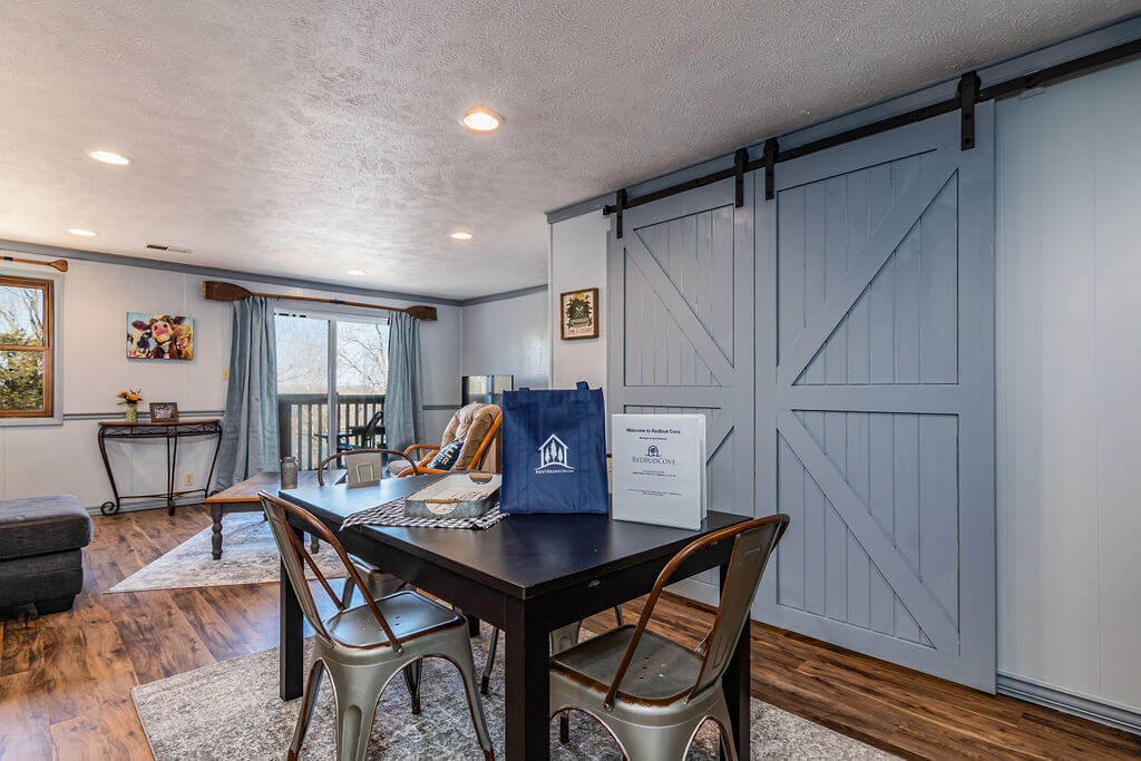 One of the larger units at the Barnhouse Suites of Red Bud Cove is the deluxe Sm'Oars Suite! Located on the third floor of the Red Bud Cove Barn Suites Lodge, this lakefront retreat is one of seven unique suites within the lodge and features an interior hallway entrance.