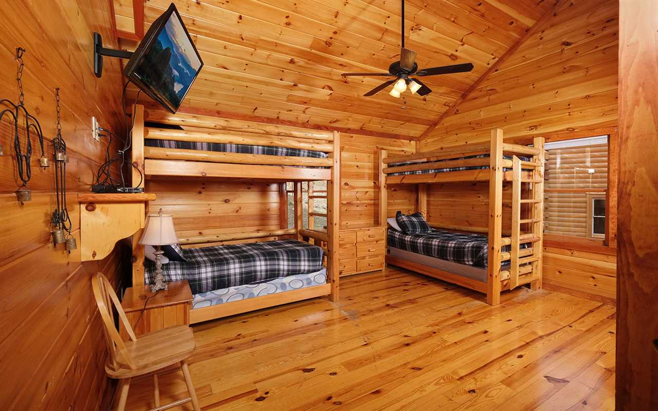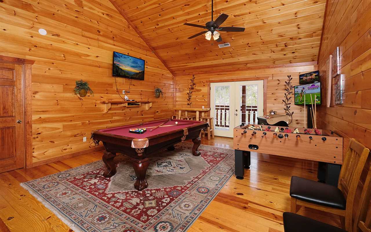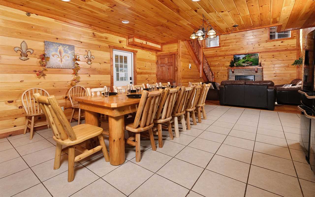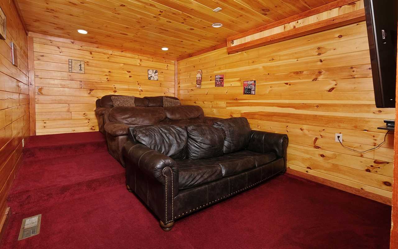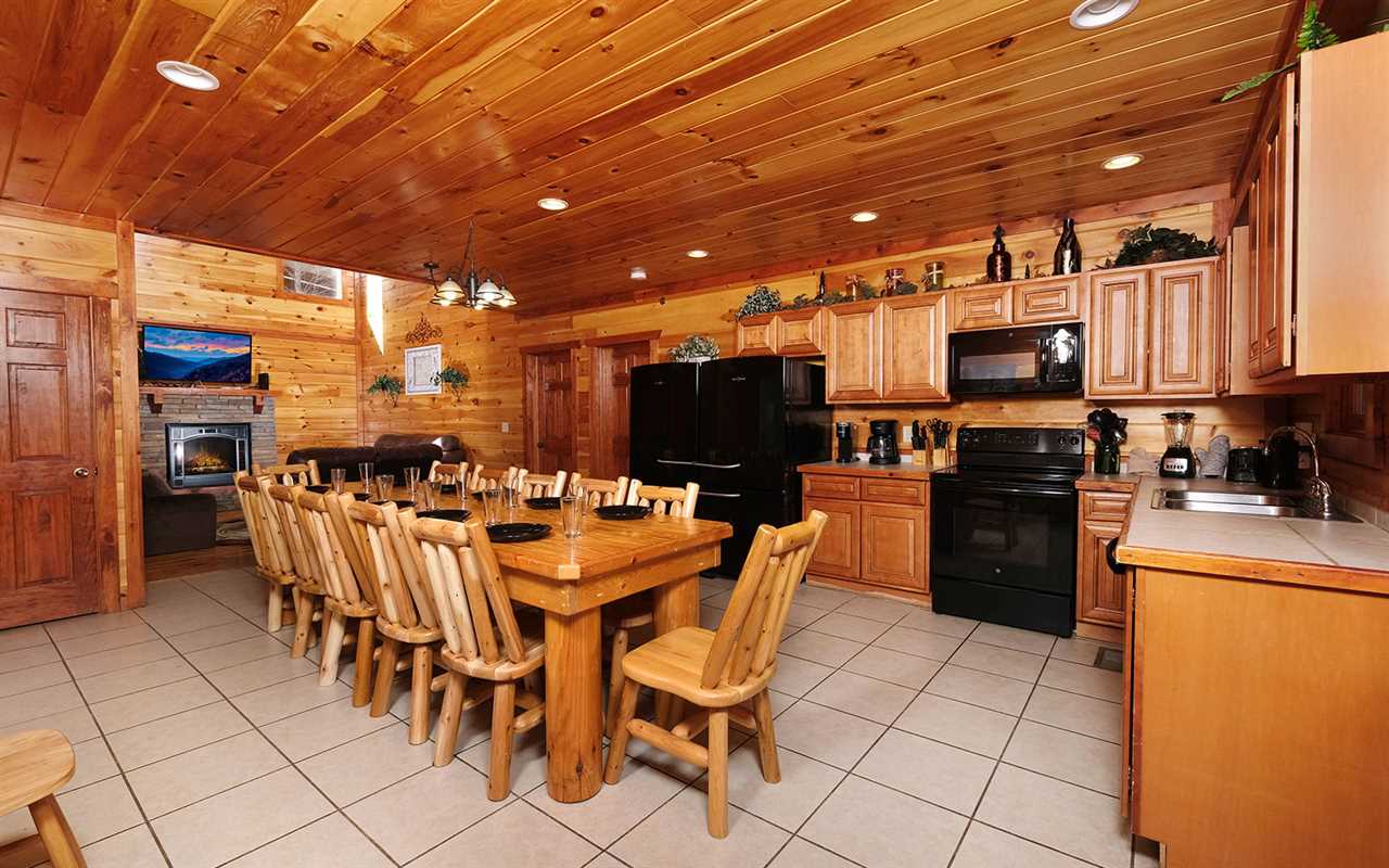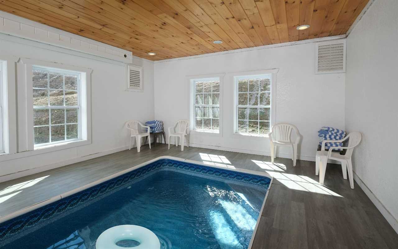 Make your vacation dreams come true when you opt for a group stay at Jennie's Cove in Pigeon Forge's Black Bear Ridge Resort. This Tennessee cabin rental in the Great Smoky Mountains features beautiful mountain views, a private indoor pool, a plush theater, a fun game room, a cozy living room with a fireplace, a fully equipped kitchen and dining area, 6 log bedrooms, 6 full bathrooms, and decks with outdoor amenities. Plus, this Pigeon Forge cabin is pet friendly!