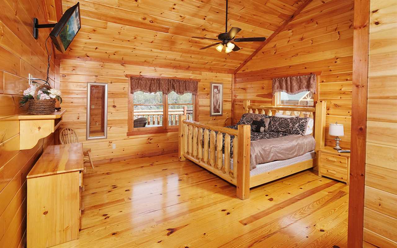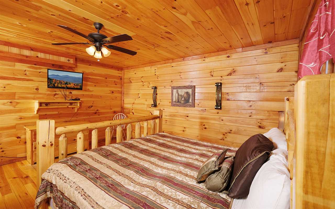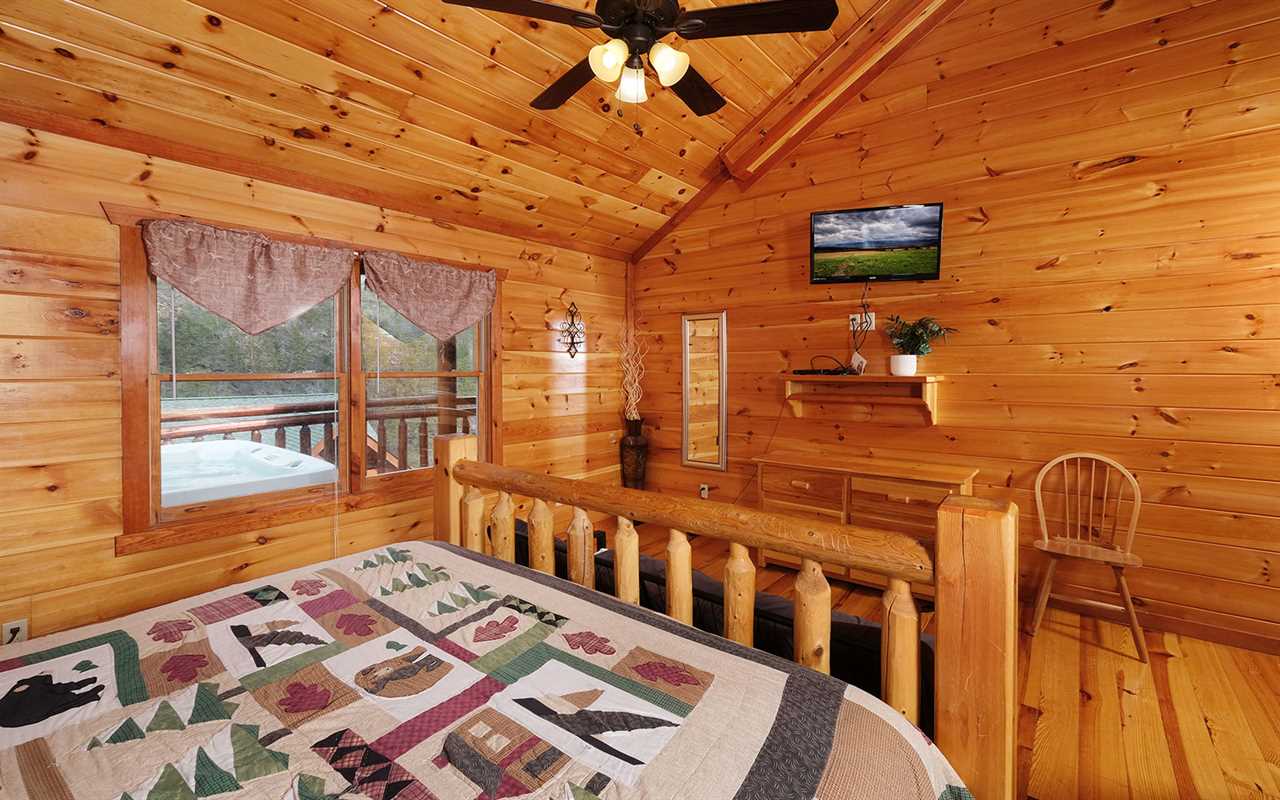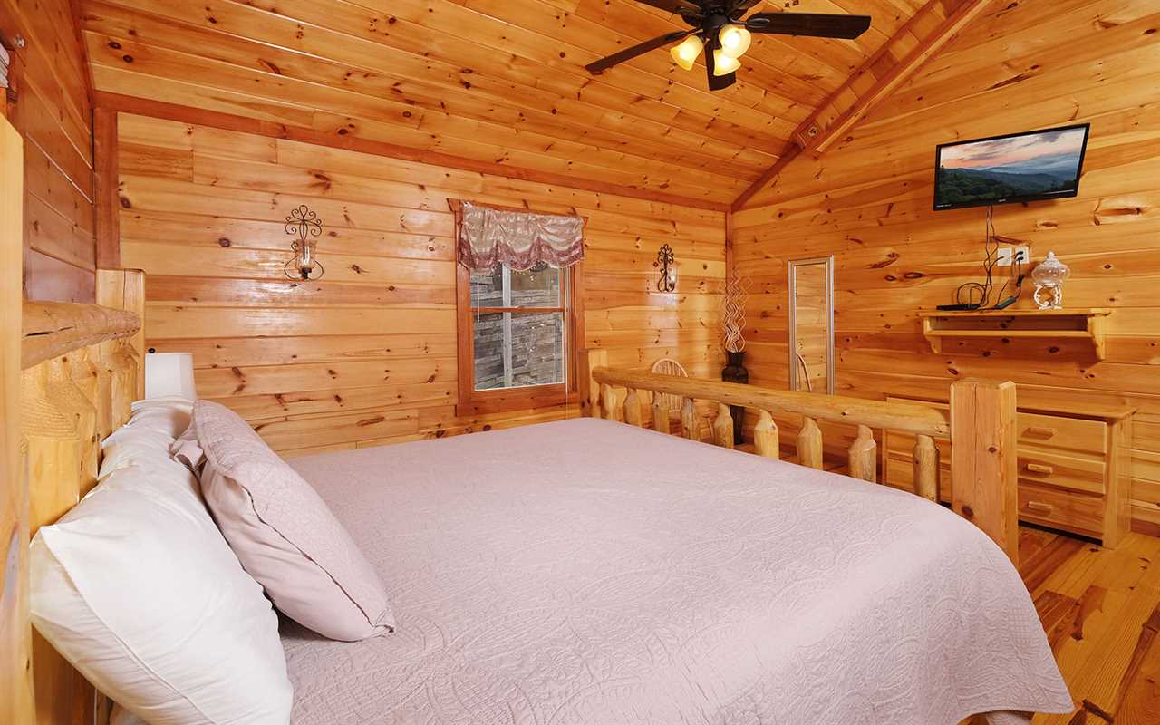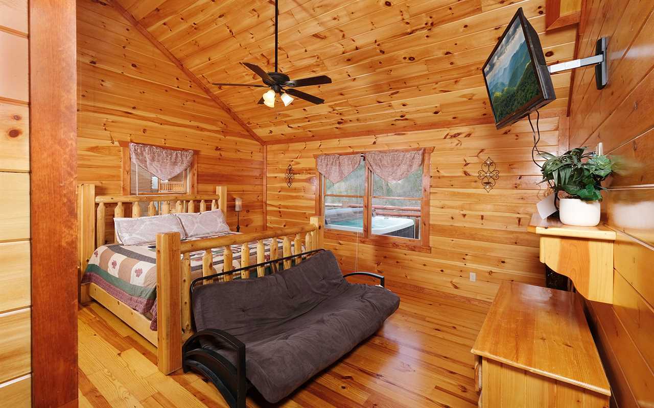 When it's time to unwind for the night, sip wine by the mood-setting (electric) fireplace, watch TV in bed, or simply drift to sleep in a mix of 5 king beds, 2 twin bunks, and 1 futon. You'll also have free access to the cabin's Wi-Fi to stay connected as well as the washer and dryer set to keep up with laundry or reuse provided towels — more conveniences for your Smoky Mountain vacation at Jennie's Cove!
