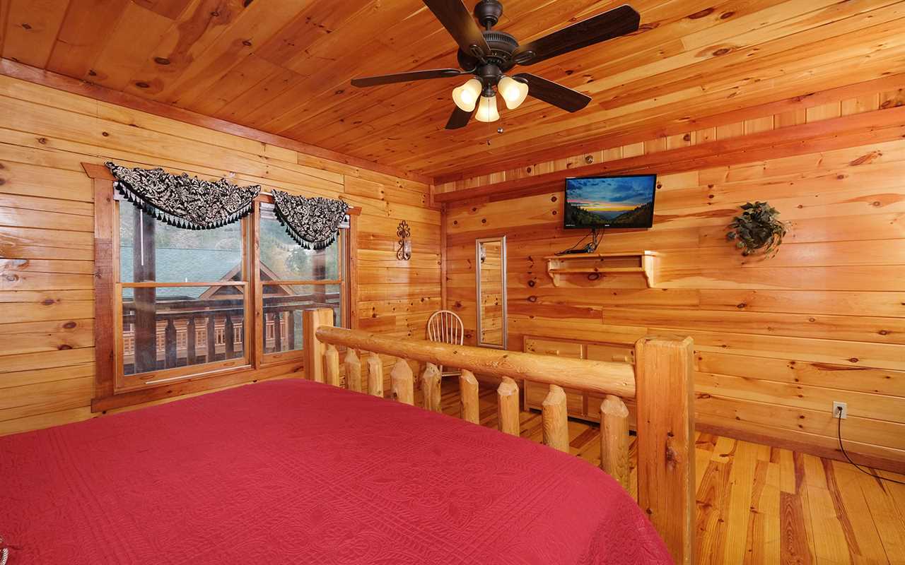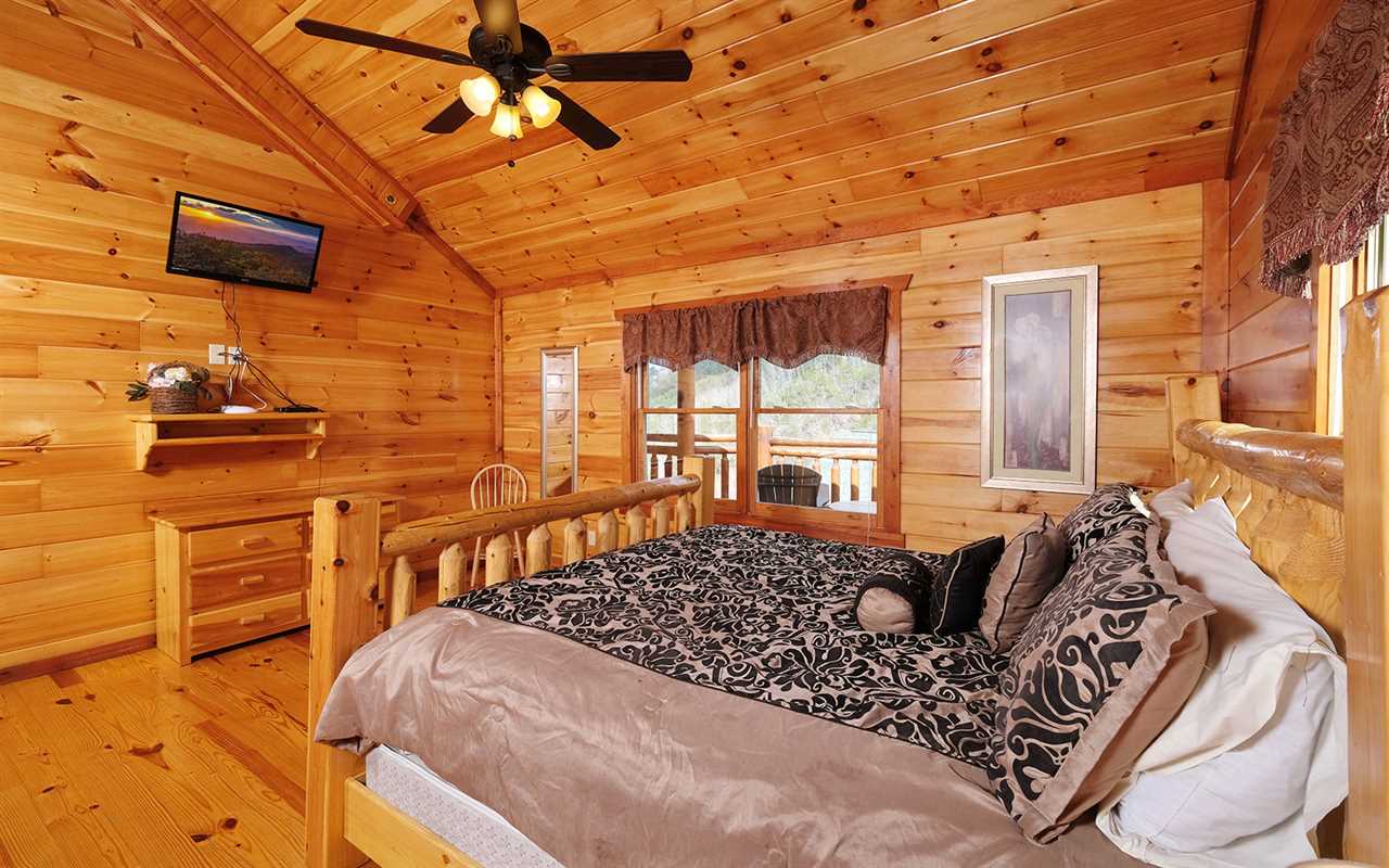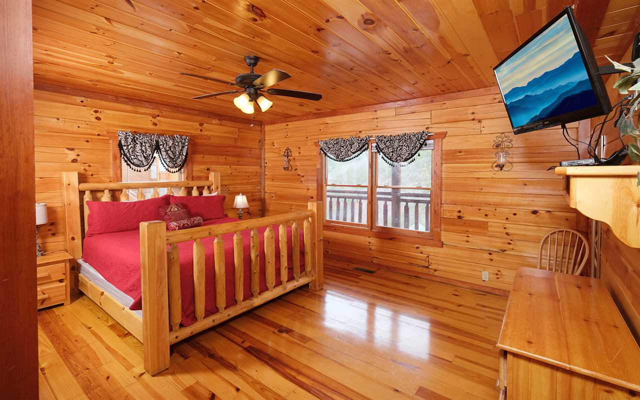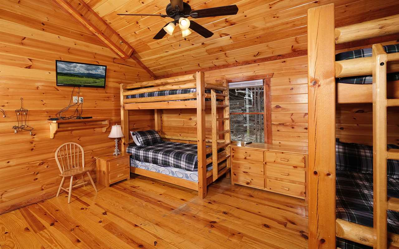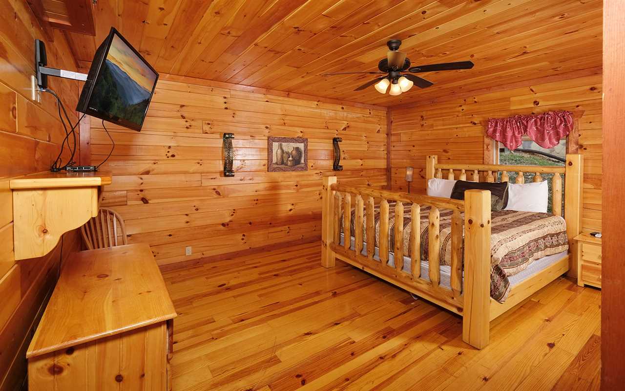 When it's time to unwind for the night, sip wine by the mood-setting (electric) fireplace, watch TV in bed, or simply drift to sleep in a mix of 5 king beds, 2 twin bunks, and 1 futon. You'll also have free access to the cabin's Wi-Fi to stay connected as well as the washer and dryer set to keep up with laundry or reuse provided towels — more conveniences for your Smoky Mountain vacation at Jennie's Cove!