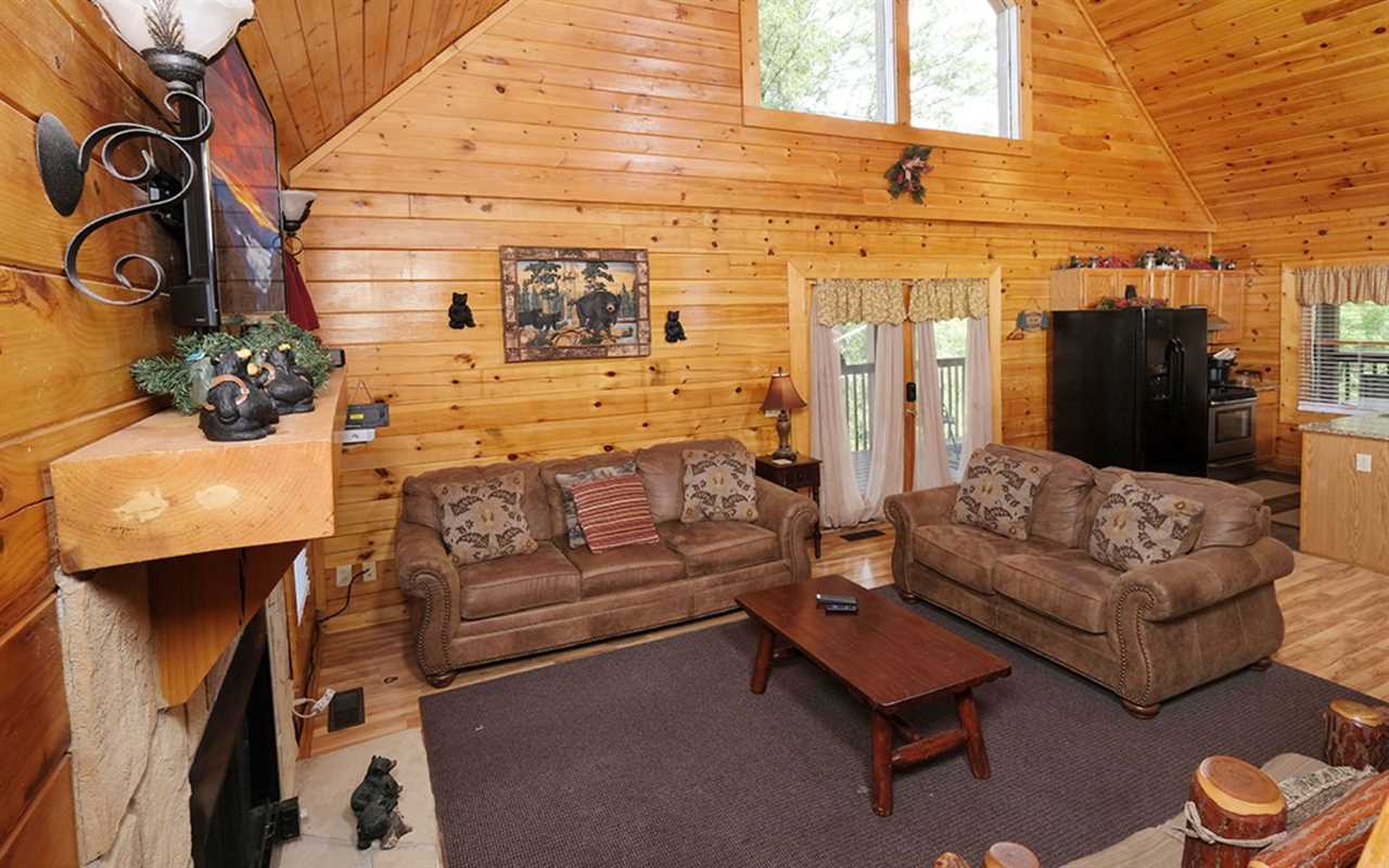 The cozy living room welcomes you to kick back and relax after a day of exploring nearby Pigeon Forge attractions.
