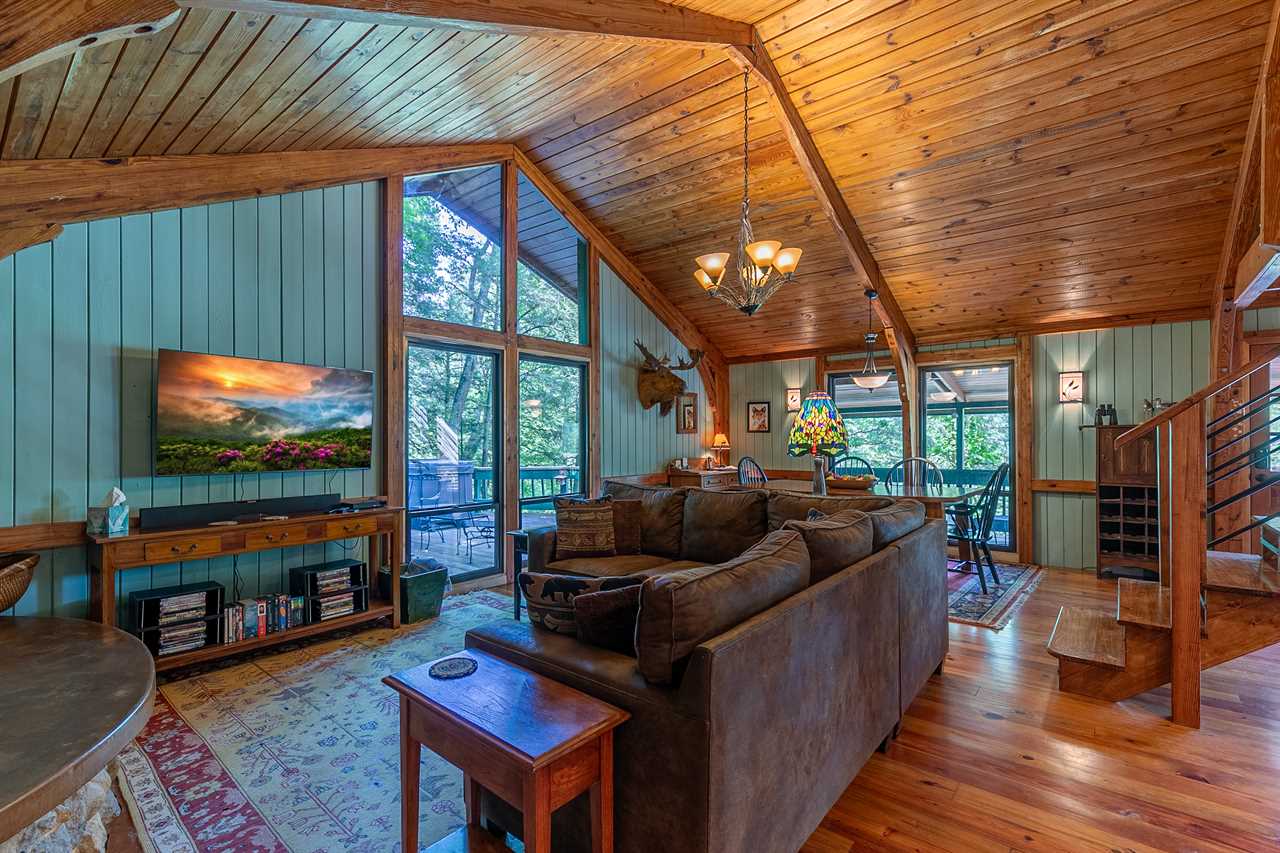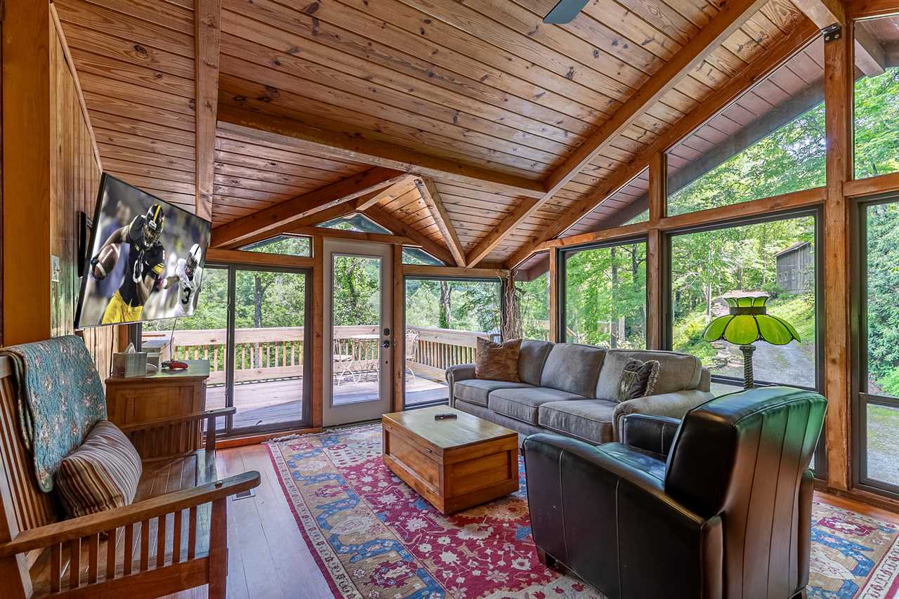 This spectacular 2 bedroom, 3 bathroom home sits on 6 secluded, wooded acres on the Watauga River, affording complete privacy and incredible river views from almost every room in the house!