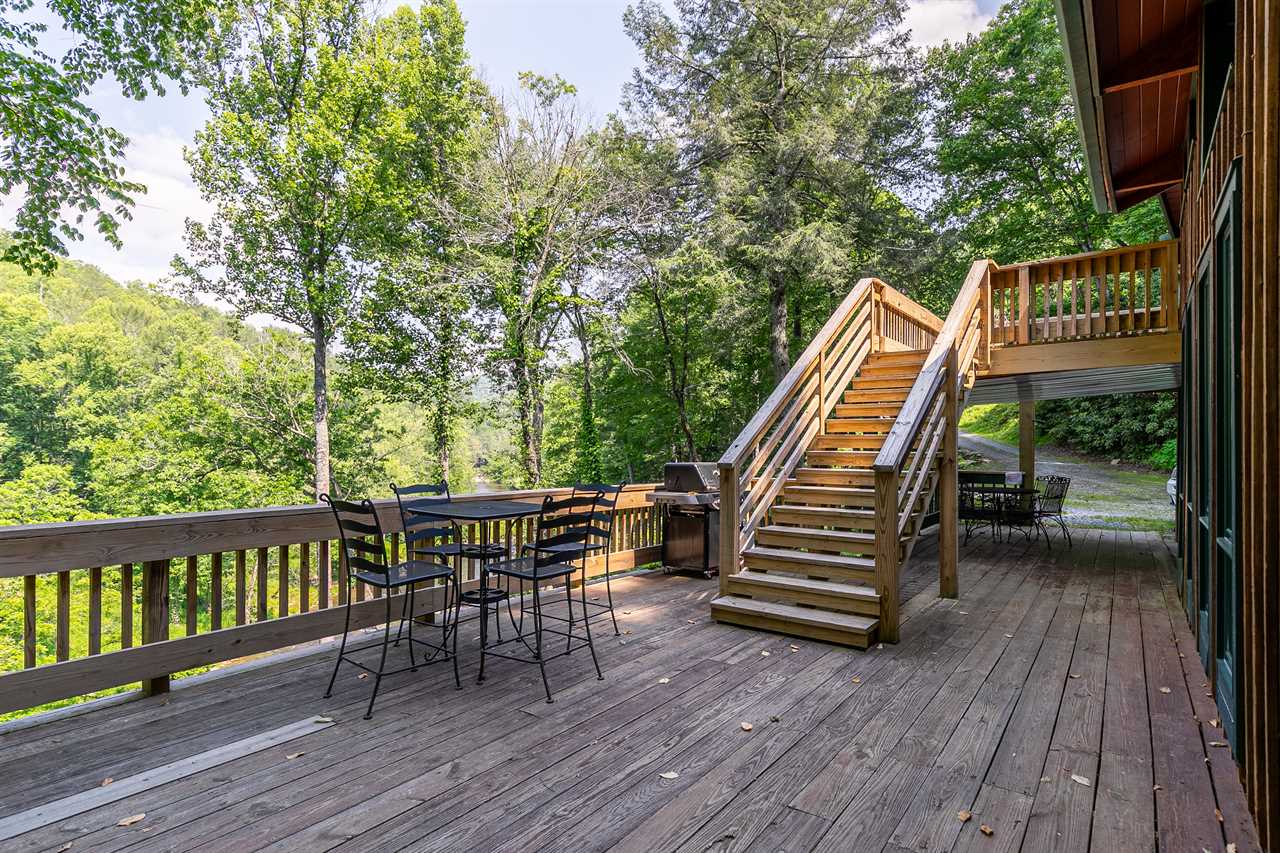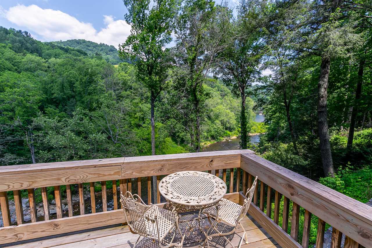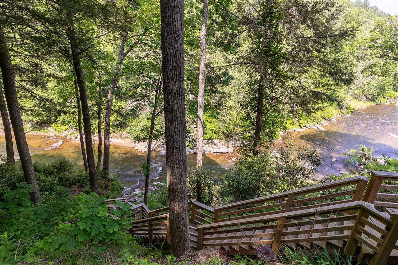 On the lower level deck, you'll find a table with four chairs for al fresco dining, as well as the large stone outdoor firepit on the deck, and the wonderful hot tub. Listen to the river rush by as you enjoy an evening by the fire or soaking in the hot tub. Newly built in 2013 is a flight of 90 stairs leading down to the river, where you can enjoy the sights, sounds, and feel of the beautiful Watauga River up close.