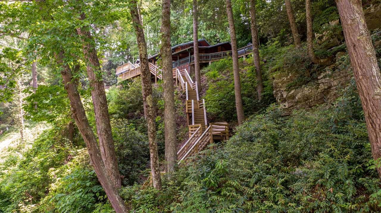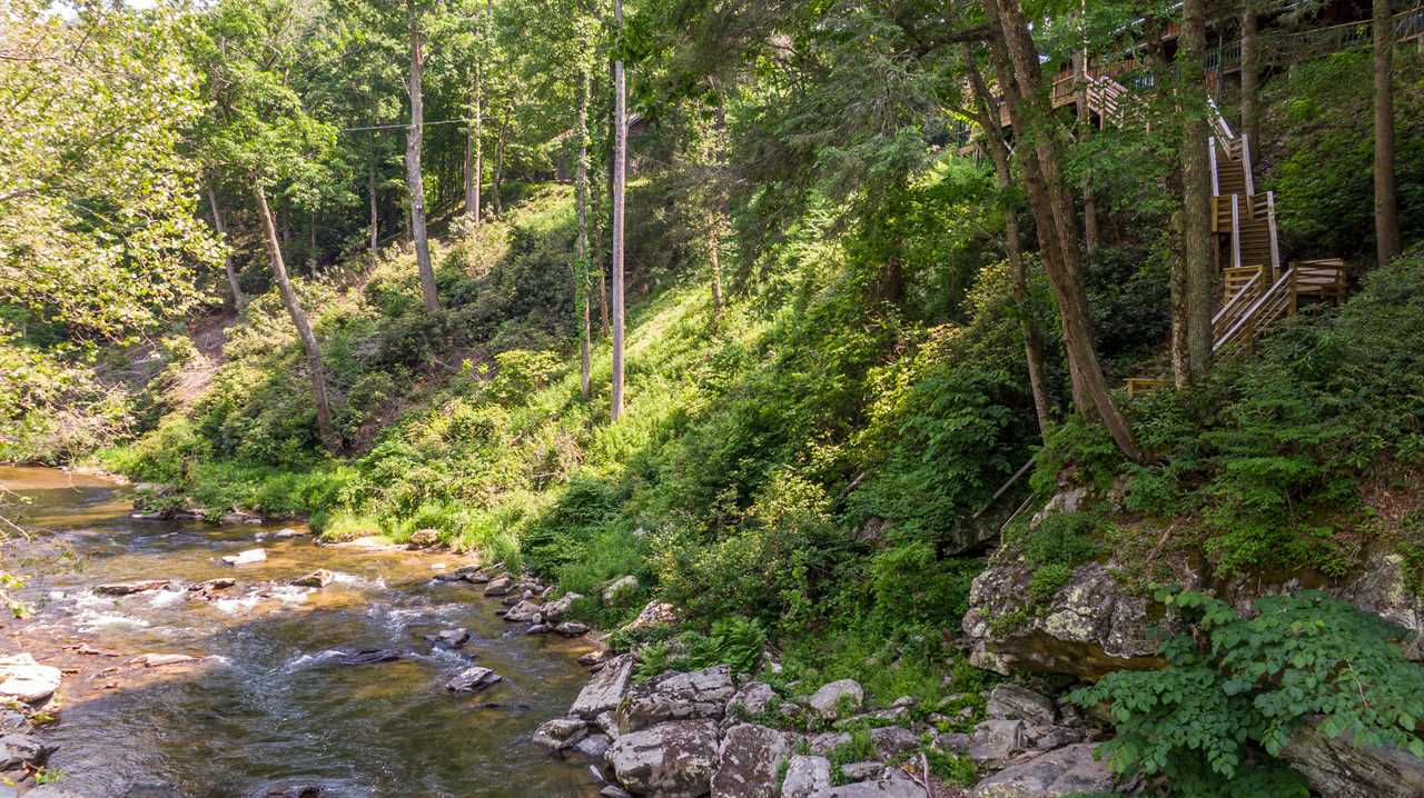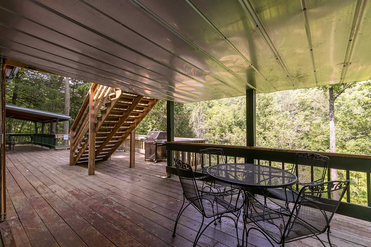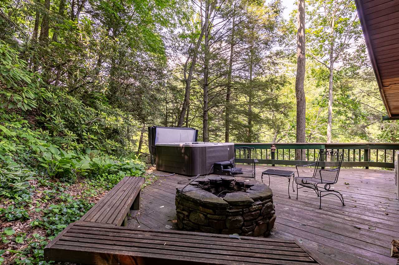 On the lower level deck, you'll find a table with four chairs for al fresco dining, as well as the large stone outdoor firepit on the deck, and the wonderful hot tub. Listen to the river rush by as you enjoy an evening by the fire or soaking in the hot tub. Newly built in 2013 is a flight of 90 stairs leading down to the river, where you can enjoy the sights, sounds, and feel of the beautiful Watauga River up close.