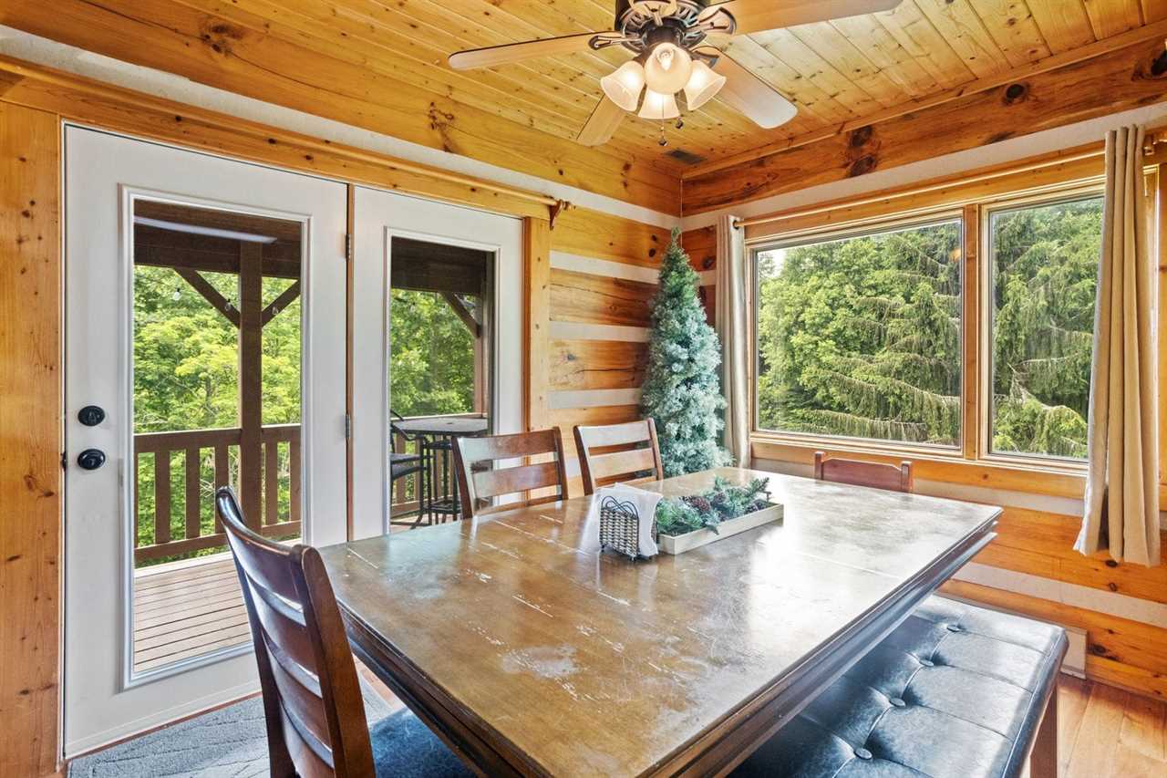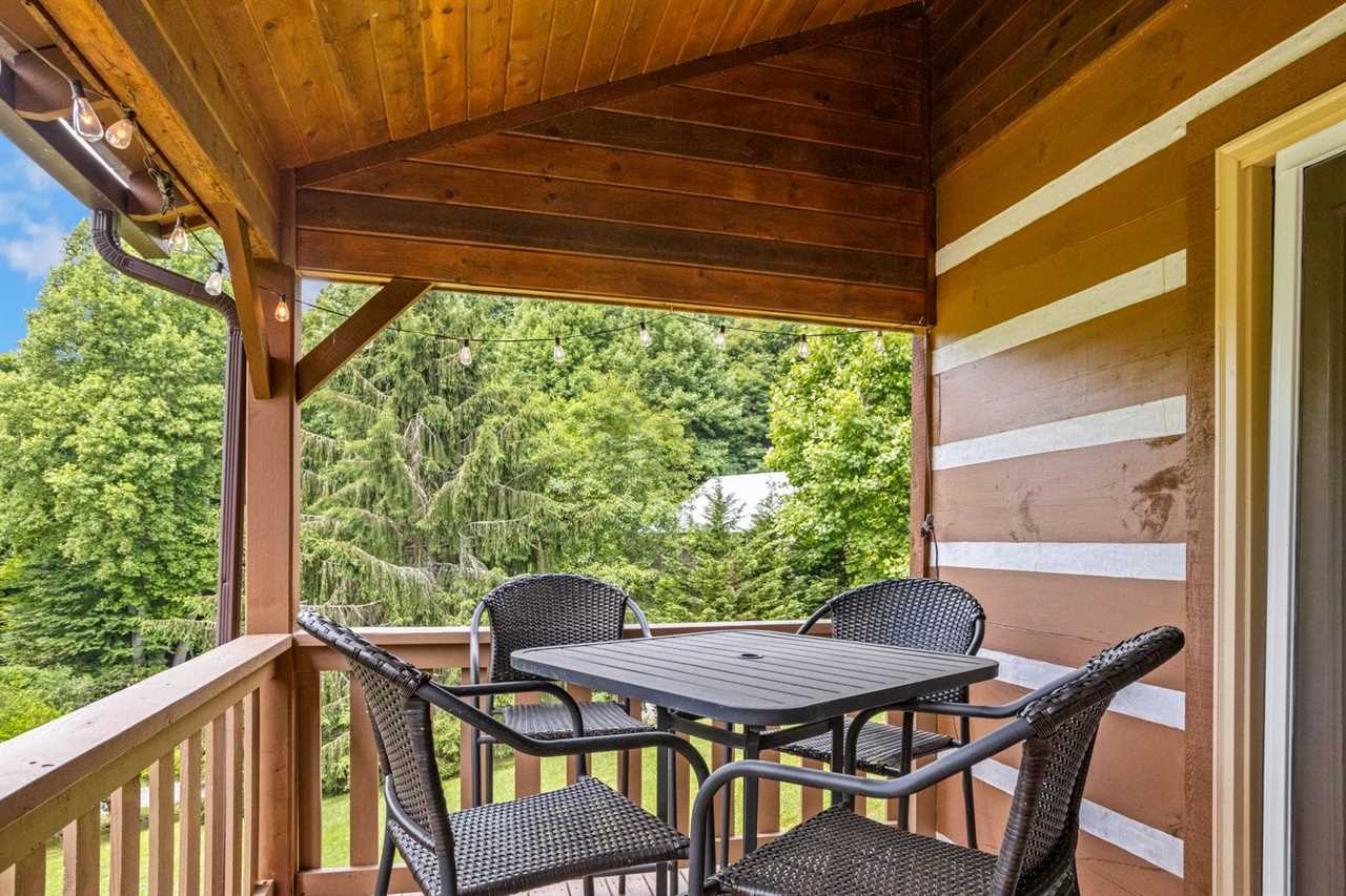 The dining table comfortably seats 6 and enjoys nice views out the windows surrounding the kitchen. This home is located in a well-planned and neatly maintained log cabin community in Boone, North Carolina. One comment that we hear again and again from those who stay in this community is how they enjoy the peace and quiet. People love sitting on the porch in the early morning, enjoying the sunrise with a cup of coffee while listening to the occasional nickering of the horses grazing across the valley in the Yonahlossee Stables. Maybe you would like to arrange a riding lesson while you are here!