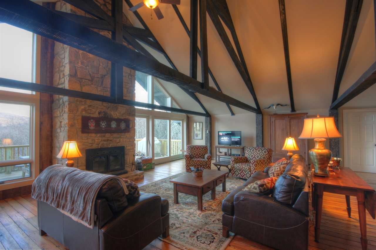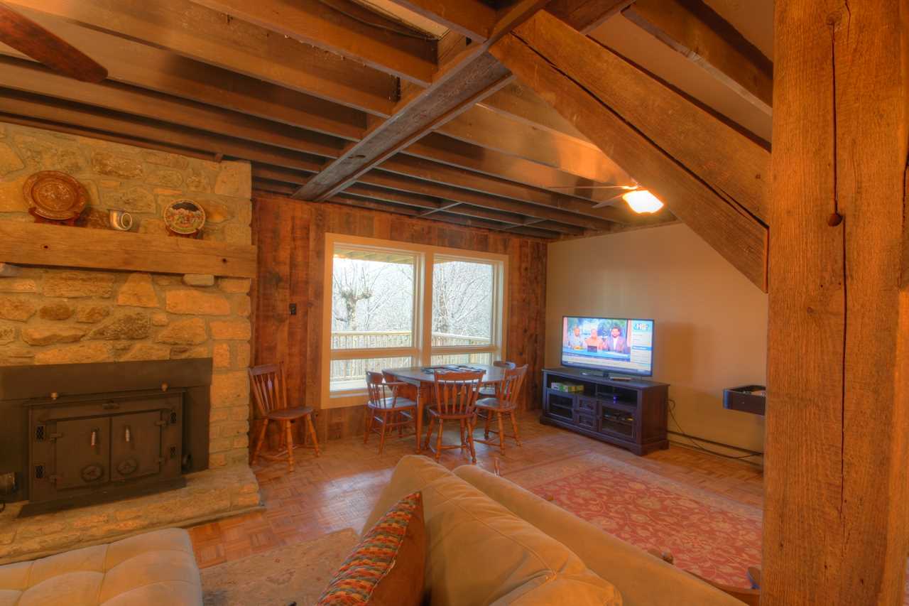 Fun Facts about this house: The Majestic Mountain Haus was built in 1971 using wood and beams from one of the oldest churches in Rowan County, North Carolina, that was dismantled in the early 1970s. The bar in the den was the original ticket counter in the train station of the steam-powered Best Friend of Charleston train. It was the first locomotive train built in the United States and had its inaugural run in 1830!