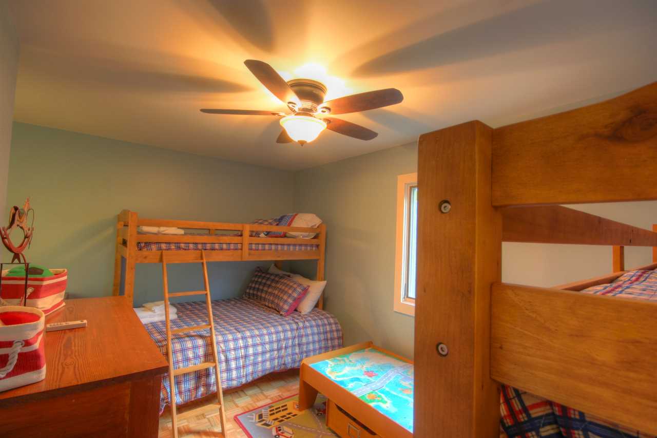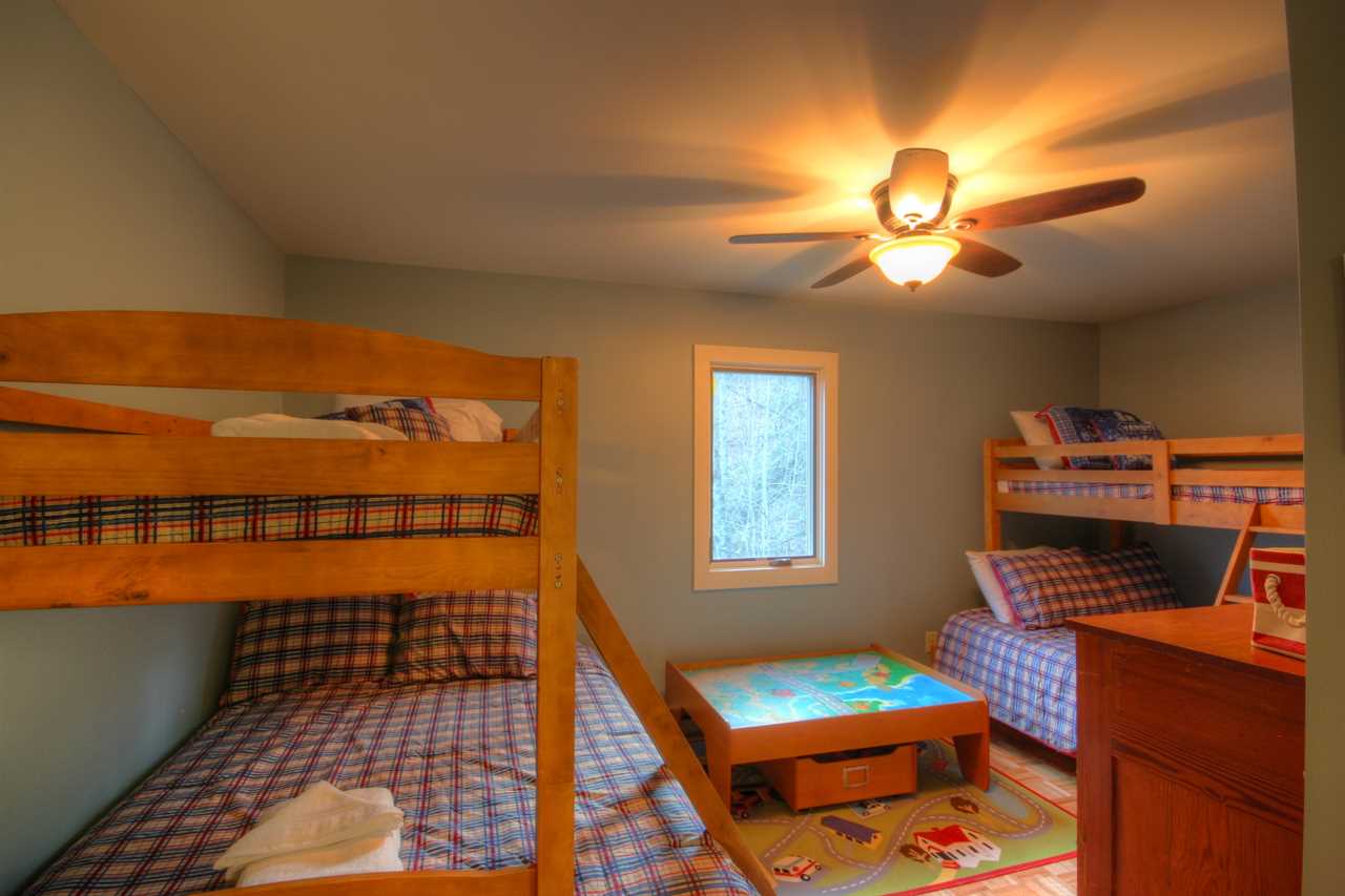 Downstairs are two king master suites with full bathrooms and a third bunk bedroom. It has two twin-over-full bunk beds and a half bathroom. One of the downstairs suites has an HDTV with expanded digital cable programming.