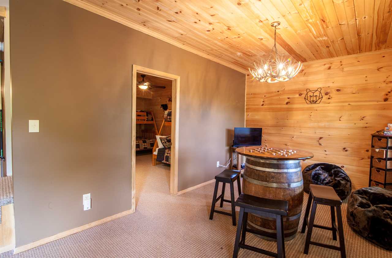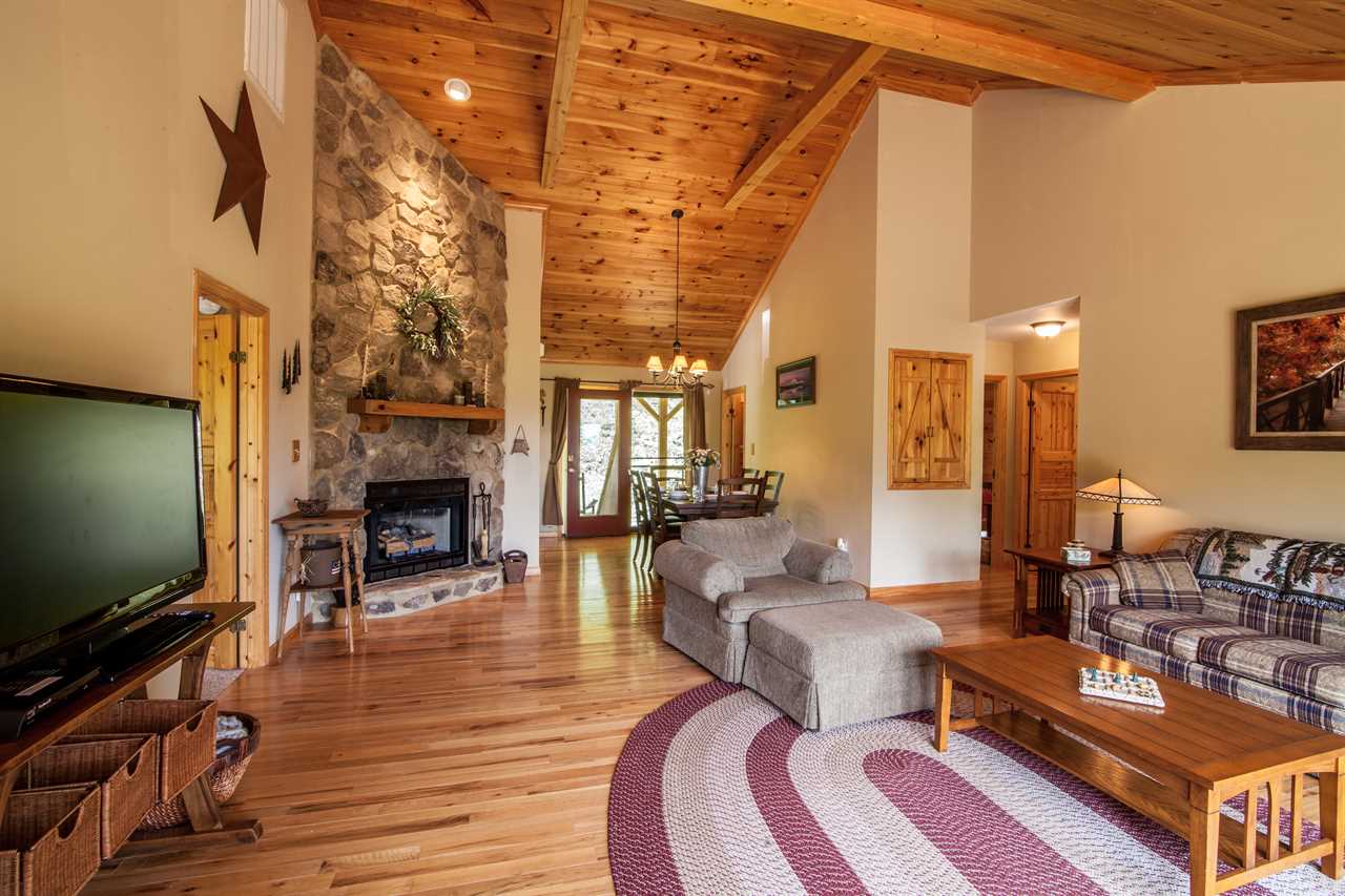 High Road Cabin is a 4BR/3BA log cabin close to the mountain vacation village of Banner Elk and Beech Mountain Ski Resort. This home has a king master suite on the main floor with a private bath. The living area has comfortable seating with a gas fireplace, flat-screen TV, and mountain views looking out to the back deck. After long days of skiing, enjoy the hot tub on the downstairs back deck or the warm fire pit around the side of the home. Inside, there is a game area with a pool table, checker table, and additional seating for movies or shows. Come stay at High Road Cabin and enjoy everything the mountains have to offer! Book your vacation today!