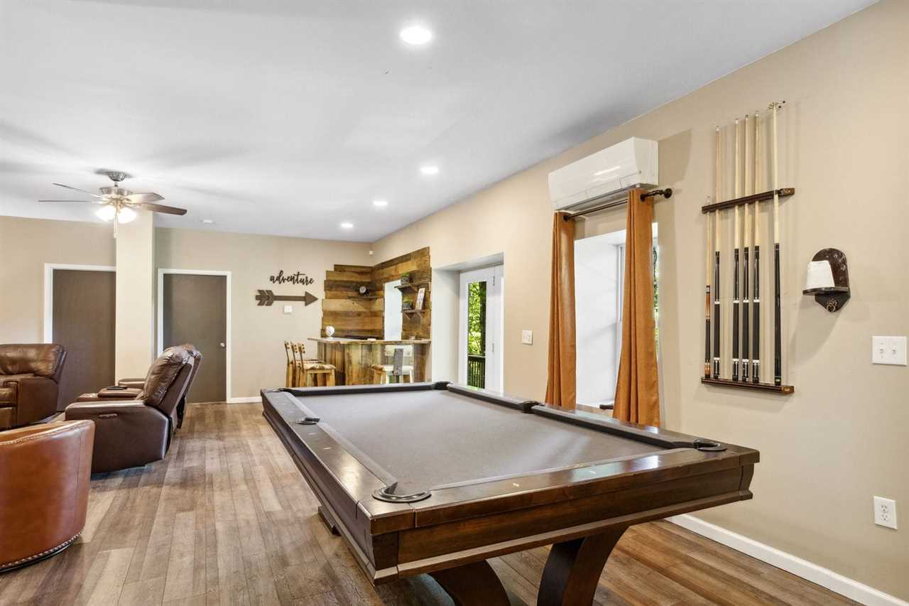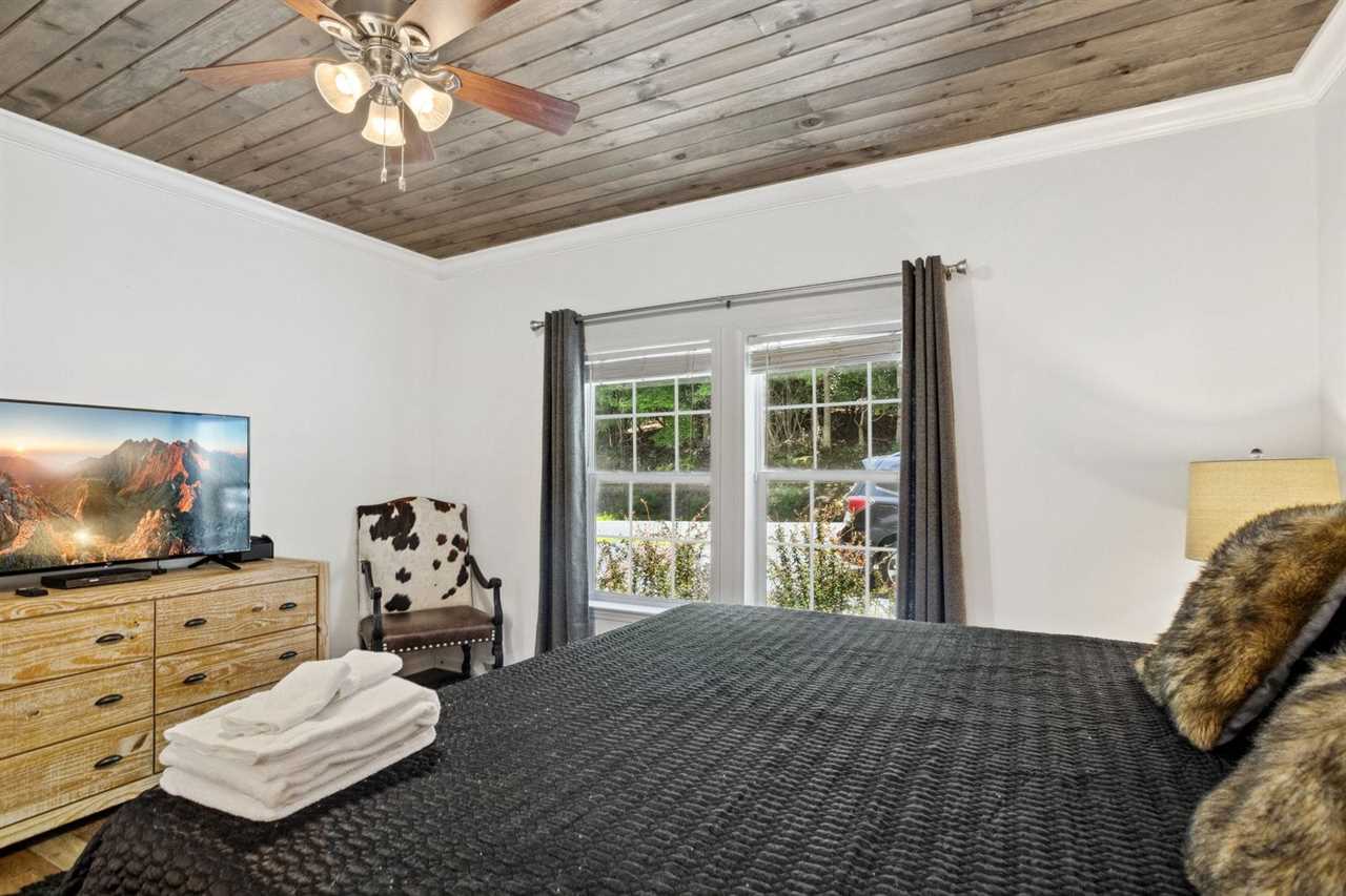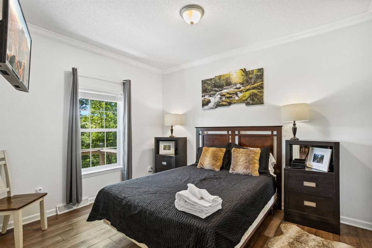 MUST BE AT LEAST 25 YRS OF AGE TO BOOK Welcome to Red Bear Run! Red Bear Run is a charming, well-outfitted home with six (6) bedrooms and four (4) full bathrooms on three levels. Each level has a living area, including a great room on the main level, a huge den and game room with a bar/kitchenette downstairs, and a quiet sitting room upstairs. Two large rear decks offer outdoor dining and relaxation, and both decks enjoy mountain views and a nice view of the Buckeye Lake and Recreation Center. The recreation center at Buckeye Lake is a place the whole family will enjoy, with indoor and outdoor sports like basketball, tennis, pickleball, volleyball, soccer, baseball, softball, climbing, canoeing, kayaking, fishing, and much more! A small daily fee gets you full access. Search BUCKEYE LAKE AND RECREATION CENTER for more information. Only three (3) miles away is Beech Mountain Ski Resort, where you can ski, snowboard, ice skate, snowboard, ice skate, snow tube, sled, and more. There are also numerous restaurants and shops on Beech Mountain to be explored and enjoyed. Downtown Banner Elk is at the foot of Beech Mountain, seven (7) miles away. The main level of Red Bear Run boasts an open-concept great room, kitchen, and dining area. The great room features a convenient central place for guests to gather and relax on comfortable furniture. The kitchen is open and well-equipped to prepare and serve large groups meals. The adjacent dining table expands to seat up to ten (10) guests, and the center island bartop in the kitchen seats six (6) more. Up to sixteen (16) guests can dine together on the main level, and there is another dining table downstairs and on the rear deck. The master suite is on the main level and has a king-size bed, a large HD Smart TV, a walk-in closet, and an ensuite bathroom with a large soaking tub, separate shower, and double sink vanity. A second full bathroom in the hallway serves two more queen bedrooms on the main floor. Each has an HD Smart TV and a walk-in closet. One of the bedrooms enjoys mountain views. Upstairs are two more huge bedrooms flanking a central sitting area with a sofa and a full bathroom with a combination tub and shower. One features a queen bed and an HD Smart TV. The other is a bunk room with two twin-over-twin bunk beds, an HD Smart TV, and a walk-in closet. All these rooms enjoy mountain views. Downstairs is an open den and game room with a pool table, an HD Smart TV, sofa and chair/ottoman, and a kitchenette with a mini-fridge, microwave, coffee maker, and Keurig machine, as well as a four-seat table and chairs for dining and playing games. A generous full bathroom with a combination tub and shower and a king bedroom with an HD Smart TV mountain views complete this floor. There is an open-air deck on the main level rear spanning the length of the house. It has a gas grill and an outdoor dining table that seats six, more seating, and a wood-burning fire bowl. The lower rear deck is covered, spans the length of the house, and has even more seating. Both decks offer mountain views and look down at the nearby Buckeye Lake and Recreation Center. Red Bear Run offers wireless internet and seven HD Smart TVs with live programming and numerous additional programming options. There is a laundry room with a washer and dryer and a utility sink on the main level. The house has central heating and air conditioning for year-round comfort, currently on the main and lower levels. The upstairs does not have central air conditioning but does have a floor-unit air conditioner set up for the summer months and ceiling fans in both bedrooms. Dogs are allowed at Red Bear Run with an additional fee. There is a Ring camera at the front door. SLEEPING ARRANGEMENTS (sleeps up to 14 guests): Main Level King Master Suite (sleeps 2) Main Level Queen Bedroom #1 (sleeps 2) Main Level Queen Bedroom #2 (sleeps 2) Upstairs Queen Bedroom #3 (sleeps 2) Upstairs Bunk Bedroom with 2 Twin over Twin Bunk Beds (sleeps 4) Downstairs King Bedroom (sleeps 2) Nearby Attractions: Boone - 20 miles Blowing Rock - 25 miles Valle Crucis, the Original Mast General Store, and The Valle Crucis Community Park on the Watauga River - 16 miles The town of Seven Devils, Hawksnest Snowtubing & ZipLines Resort, and Otter Falls Trail - 18 miles Sugar Mountain Ski Resort and the Sugar Mountain Public Golf Club - 21 miles Grandfather Mountain Profile Trail - 13 Appalachian State University - 20 miles Tweetsie Railroad and Appalachian Ski Mountain - 27 miles The Elk River and the Watauga River - 10 miles Watauga Lake - 15 miles