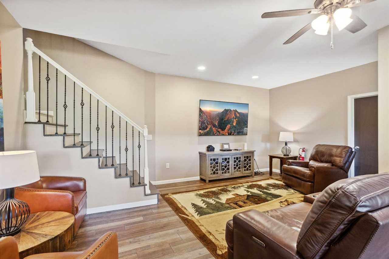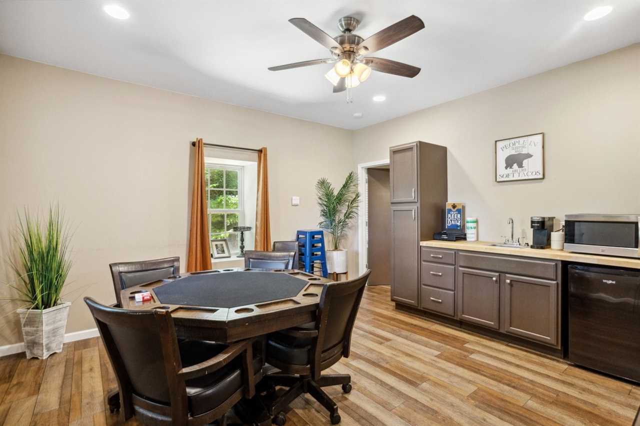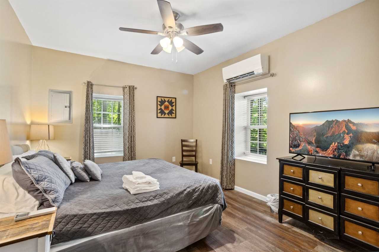 MUST BE AT LEAST 25 YRS OF AGE TO BOOK Welcome to Red Bear Run! Red Bear Run is a charming, well-outfitted home with six (6) bedrooms and four (4) full bathrooms on three levels. Each level has a living area, including a great room on the main level, a huge den and game room with a bar/kitchenette downstairs, and a quiet sitting room upstairs. Two large rear decks offer outdoor dining and relaxation, and both decks enjoy mountain views and a nice view of the Buckeye Lake and Recreation Center. The recreation center at Buckeye Lake is a place the whole family will enjoy, with indoor and outdoor sports like basketball, tennis, pickleball, volleyball, soccer, baseball, softball, climbing, canoeing, kayaking, fishing, and much more! A small daily fee gets you full access. Search BUCKEYE LAKE AND RECREATION CENTER for more information. Only three (3) miles away is Beech Mountain Ski Resort, where you can ski, snowboard, ice skate, snowboard, ice skate, snow tube, sled, and more. There are also numerous restaurants and shops on Beech Mountain to be explored and enjoyed. Downtown Banner Elk is at the foot of Beech Mountain, seven (7) miles away. The main level of Red Bear Run boasts an open-concept great room, kitchen, and dining area. The great room features a convenient central place for guests to gather and relax on comfortable furniture. The kitchen is open and well-equipped to prepare and serve large groups meals. The adjacent dining table expands to seat up to ten (10) guests, and the center island bartop in the kitchen seats six (6) more. Up to sixteen (16) guests can dine together on the main level, and there is another dining table downstairs and on the rear deck. The master suite is on the main level and has a king-size bed, a large HD Smart TV, a walk-in closet, and an ensuite bathroom with a large soaking tub, separate shower, and double sink vanity. A second full bathroom in the hallway serves two more queen bedrooms on the main floor. Each has an HD Smart TV and a walk-in closet. One of the bedrooms enjoys mountain views. Upstairs are two more huge bedrooms flanking a central sitting area with a sofa and a full bathroom with a combination tub and shower. One features a queen bed and an HD Smart TV. The other is a bunk room with two twin-over-twin bunk beds, an HD Smart TV, and a walk-in closet. All these rooms enjoy mountain views. Downstairs is an open den and game room with a pool table, an HD Smart TV, sofa and chair/ottoman, and a kitchenette with a mini-fridge, microwave, coffee maker, and Keurig machine, as well as a four-seat table and chairs for dining and playing games. A generous full bathroom with a combination tub and shower and a king bedroom with an HD Smart TV mountain views complete this floor. There is an open-air deck on the main level rear spanning the length of the house. It has a gas grill and an outdoor dining table that seats six, more seating, and a wood-burning fire bowl. The lower rear deck is covered, spans the length of the house, and has even more seating. Both decks offer mountain views and look down at the nearby Buckeye Lake and Recreation Center. Red Bear Run offers wireless internet and seven HD Smart TVs with live programming and numerous additional programming options. There is a laundry room with a washer and dryer and a utility sink on the main level. The house has central heating and air conditioning for year-round comfort, currently on the main and lower levels. The upstairs does not have central air conditioning but does have a floor-unit air conditioner set up for the summer months and ceiling fans in both bedrooms. Dogs are allowed at Red Bear Run with an additional fee. There is a Ring camera at the front door. SLEEPING ARRANGEMENTS (sleeps up to 14 guests): Main Level King Master Suite (sleeps 2) Main Level Queen Bedroom #1 (sleeps 2) Main Level Queen Bedroom #2 (sleeps 2) Upstairs Queen Bedroom #3 (sleeps 2) Upstairs Bunk Bedroom with 2 Twin over Twin Bunk Beds (sleeps 4) Downstairs King Bedroom (sleeps 2) Nearby Attractions: Boone - 20 miles Blowing Rock - 25 miles Valle Crucis, the Original Mast General Store, and The Valle Crucis Community Park on the Watauga River - 16 miles The town of Seven Devils, Hawksnest Snowtubing & ZipLines Resort, and Otter Falls Trail - 18 miles Sugar Mountain Ski Resort and the Sugar Mountain Public Golf Club - 21 miles Grandfather Mountain Profile Trail - 13 Appalachian State University - 20 miles Tweetsie Railroad and Appalachian Ski Mountain - 27 miles The Elk River and the Watauga River - 10 miles Watauga Lake - 15 miles