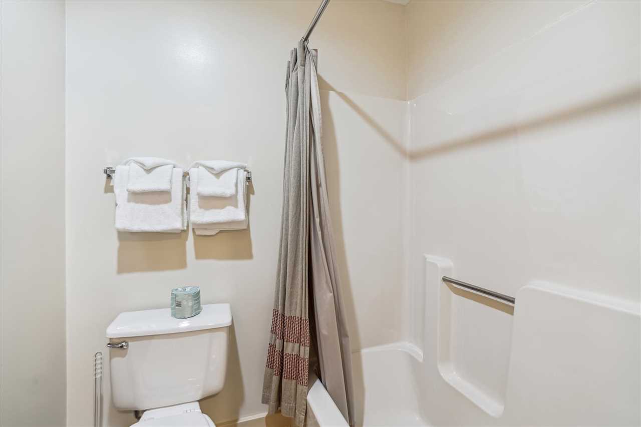 This cozy ground-floor unit in Cedarbrook Building #3 offers a peaceful retreat with a relaxing brook view just outside your window. Inside, you'll find two double beds, a full bathroom with a hair dryer, and a small table with seating for two—perfect for enjoying a quiet meal or planning your day's adventures.