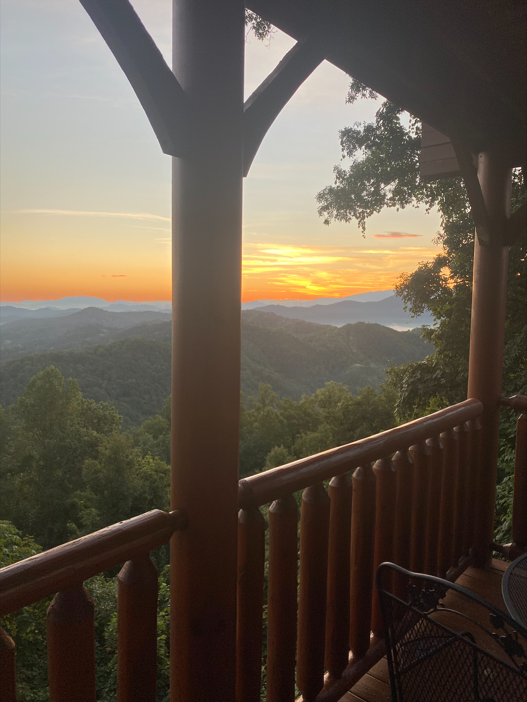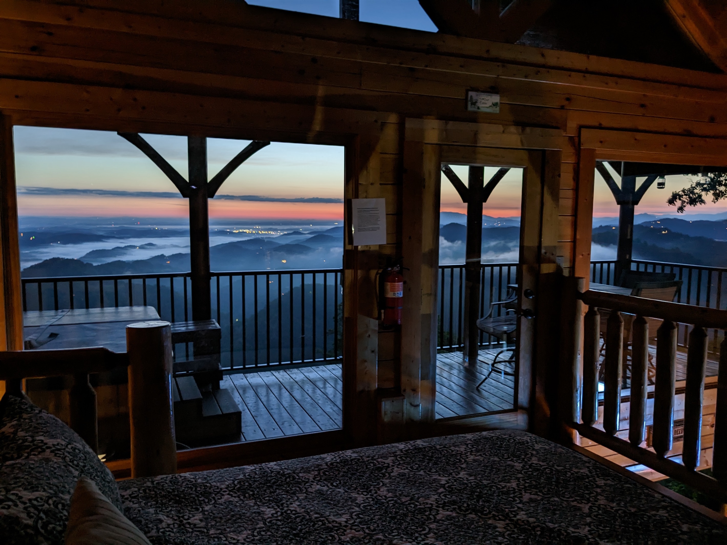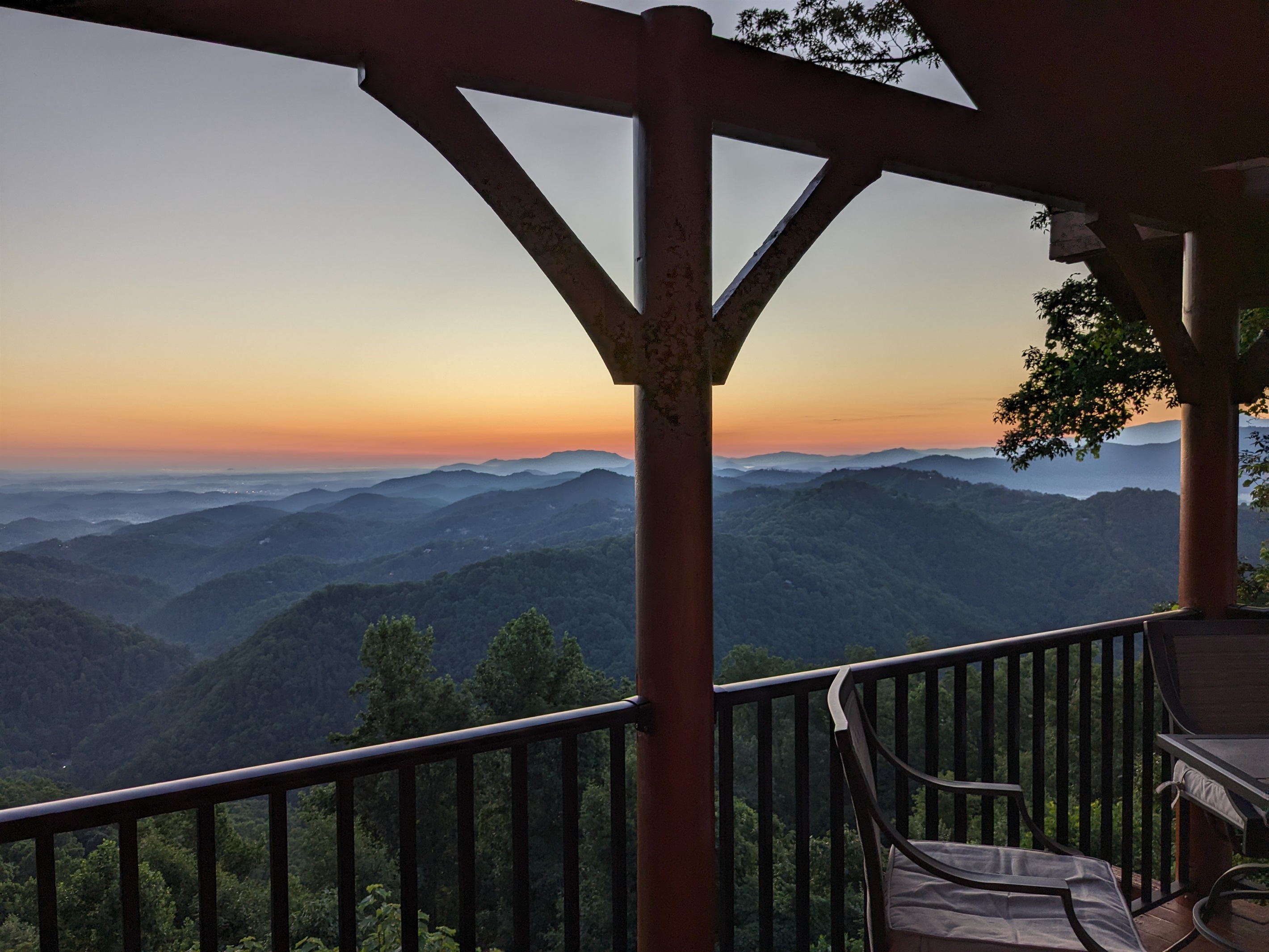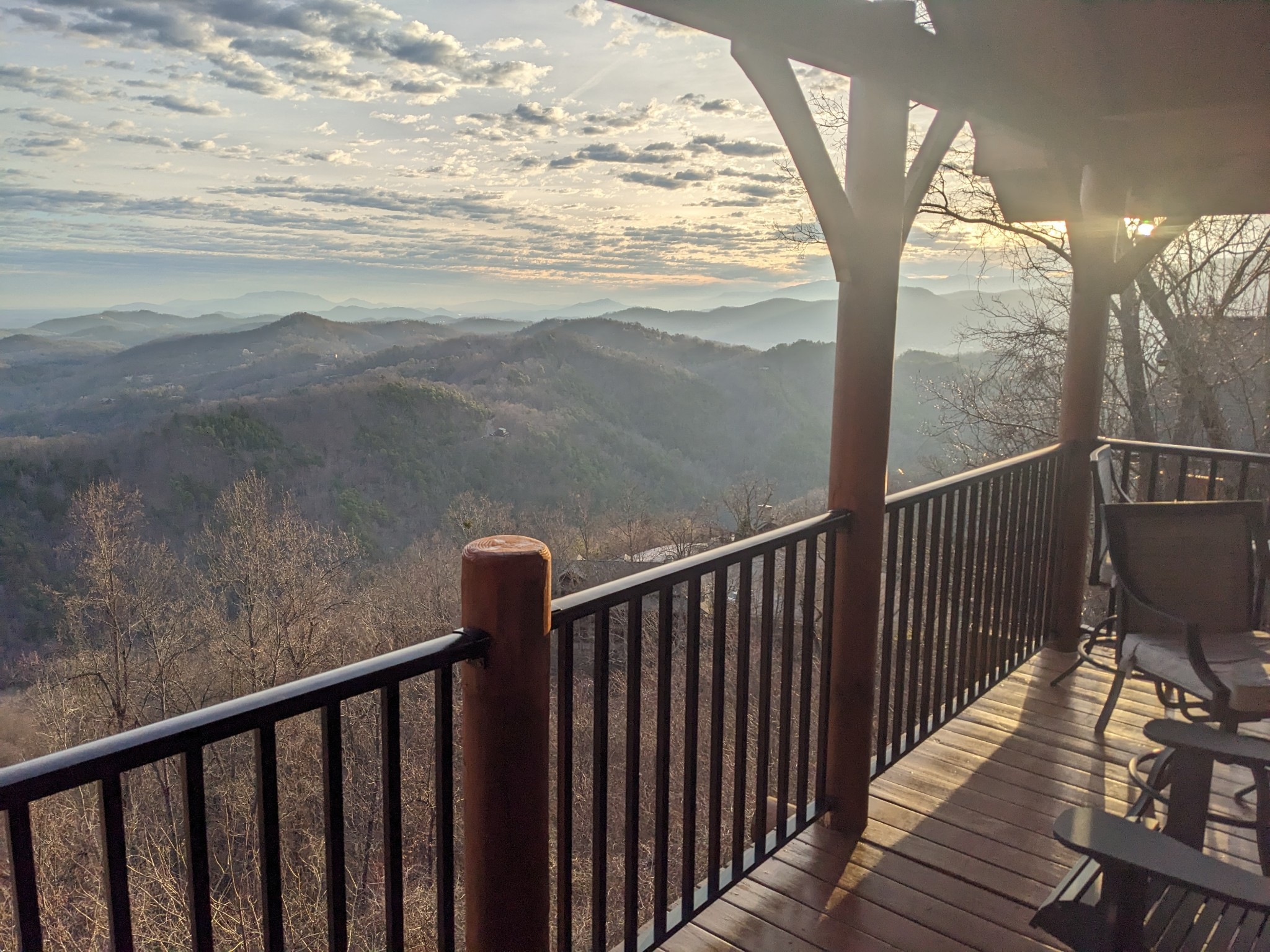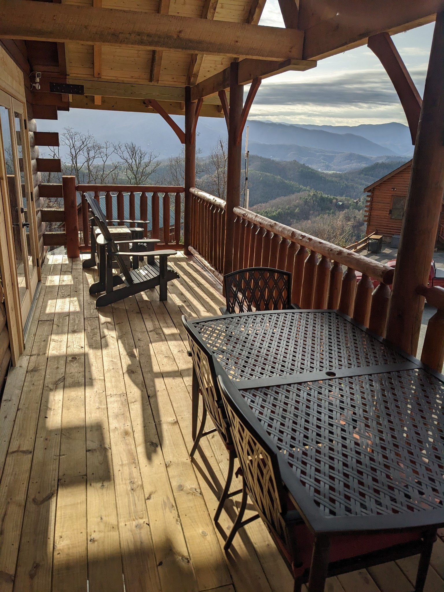 Kiss the Clouds sits at the end of a quiet cul‑de‑sac overlooking stunning Wears Valley, giving you the feeling of being on top of the mountain from both the front and rear decks.