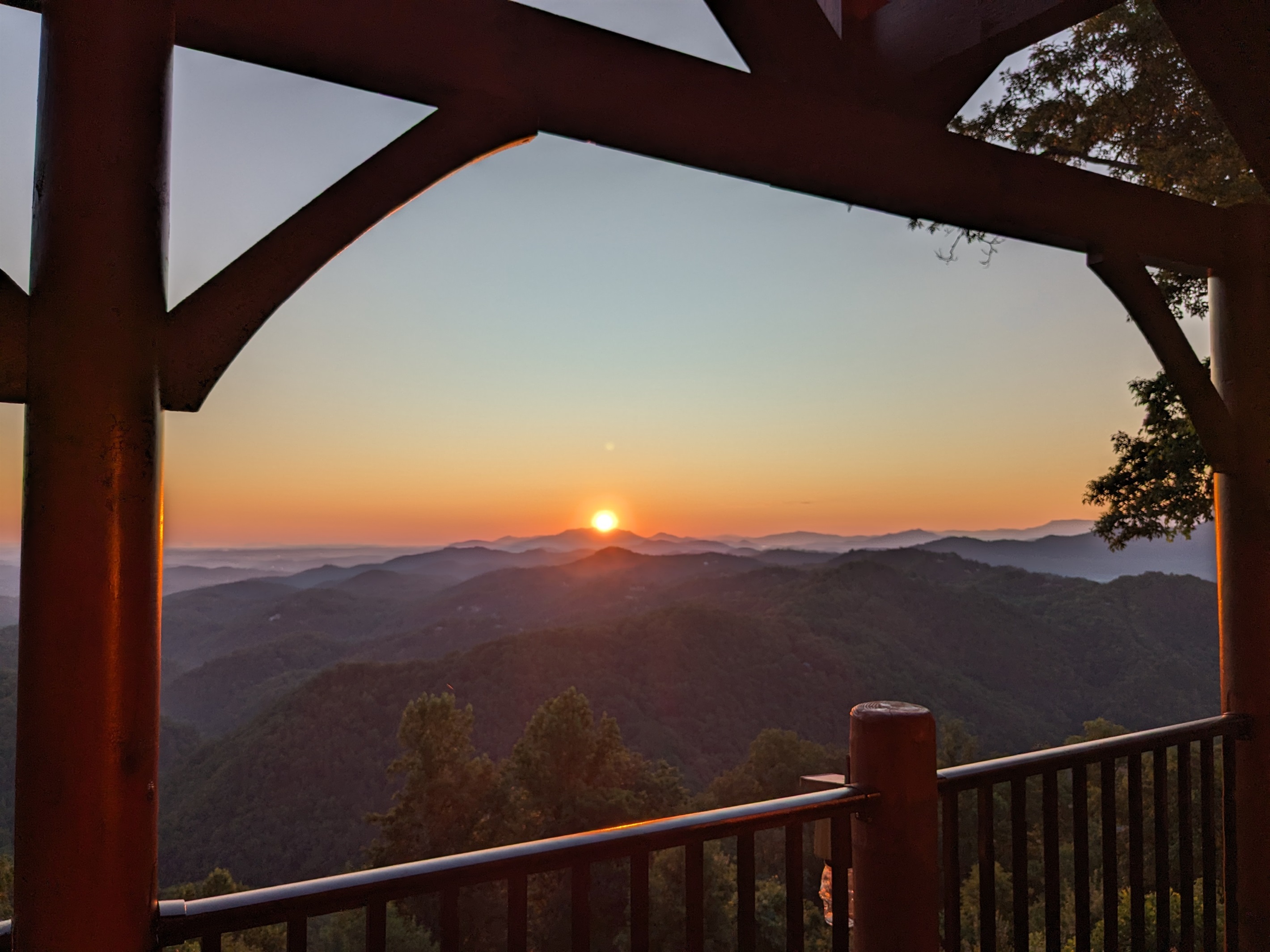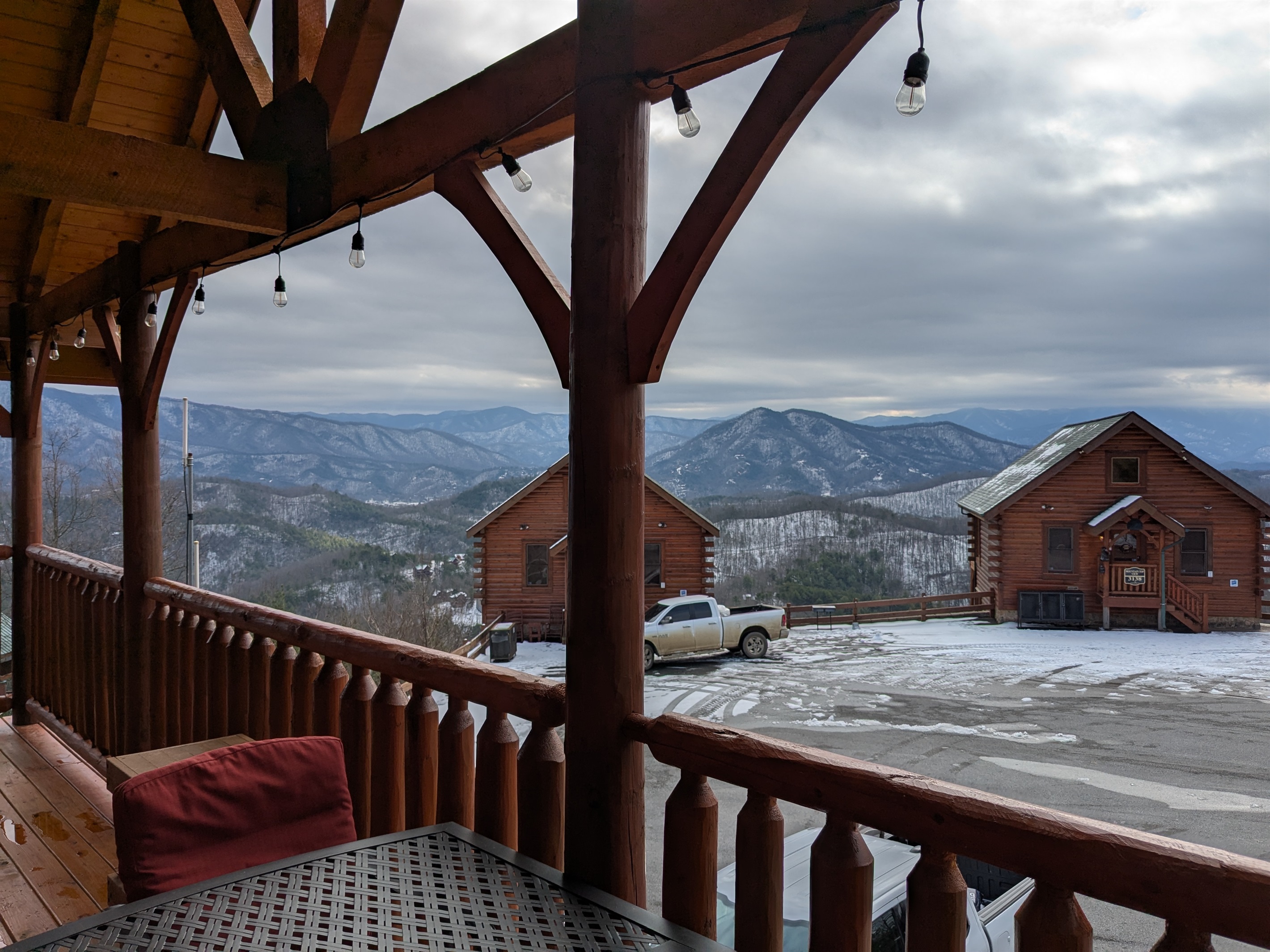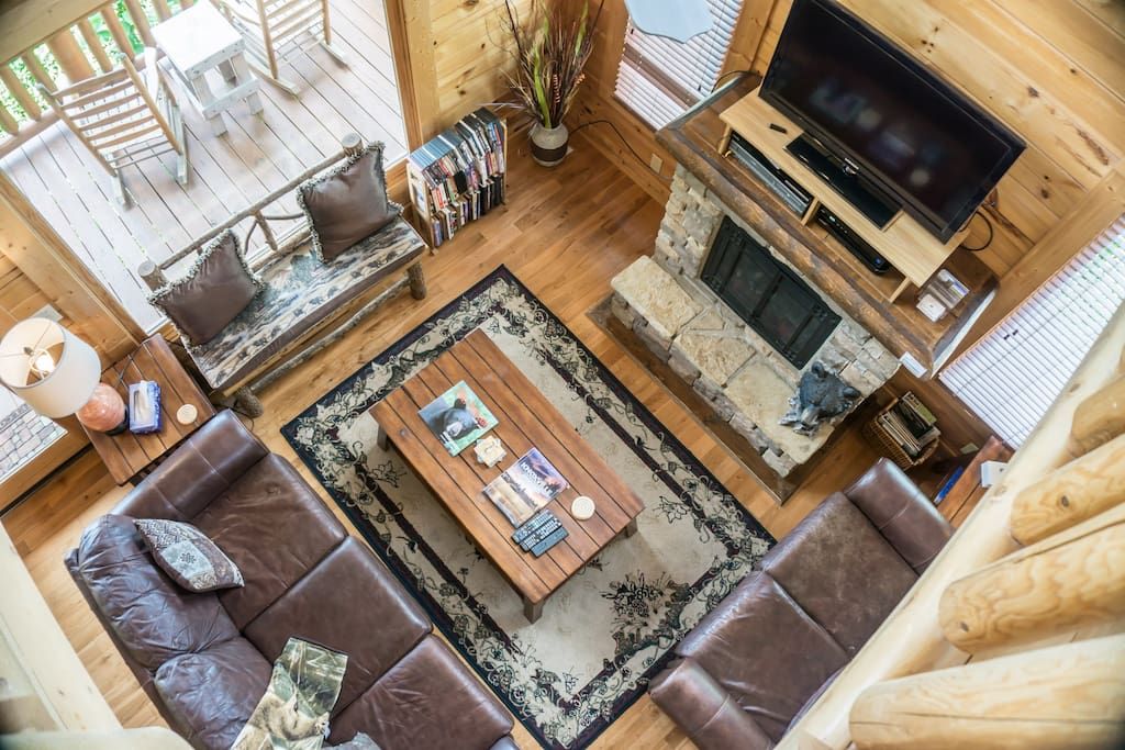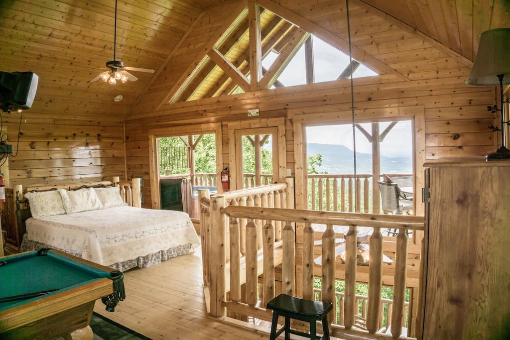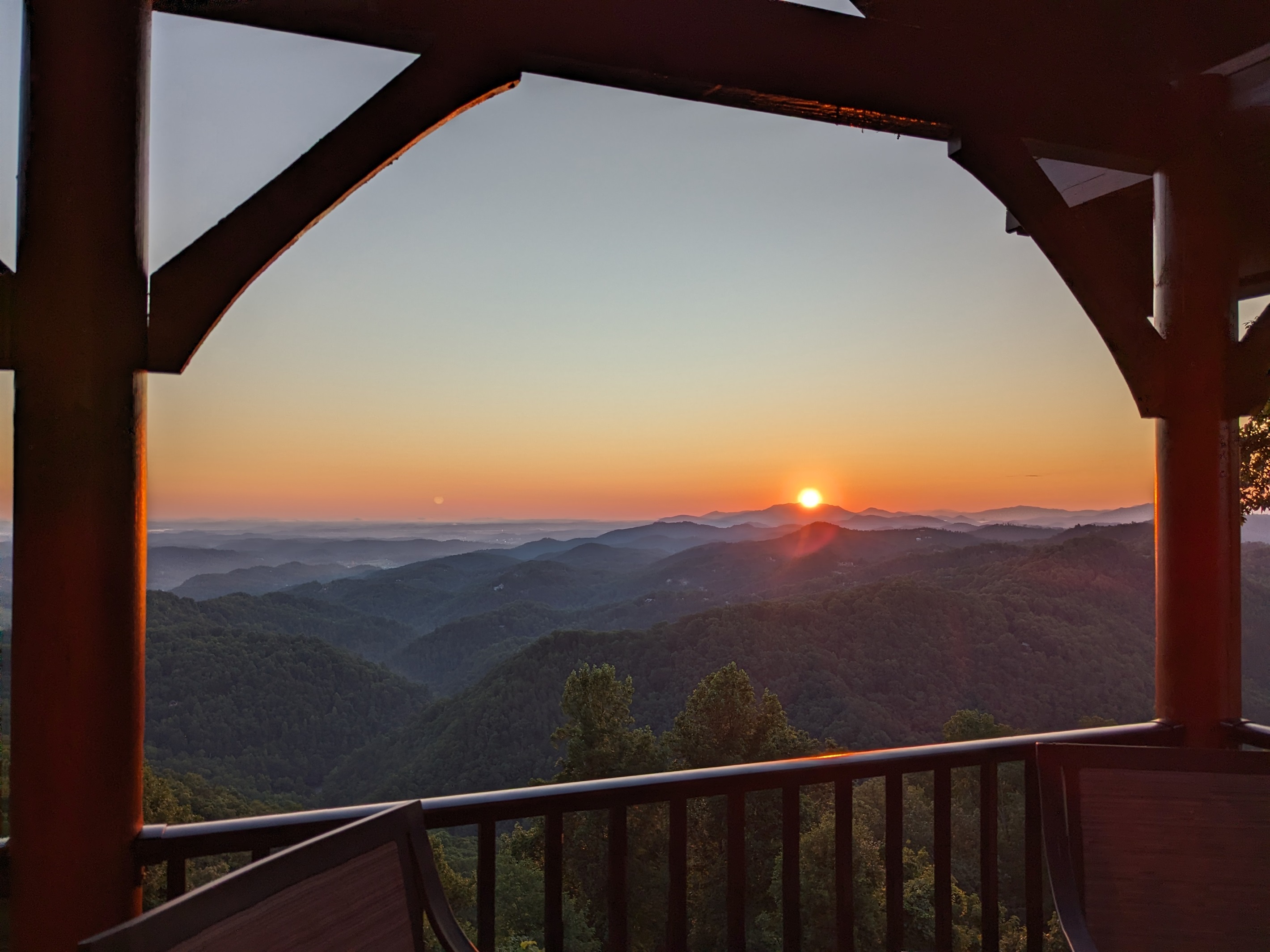 Kiss the Clouds sits at the end of a quiet cul‑de‑sac overlooking stunning Wears Valley, giving you the feeling of being on top of the mountain from both the front and rear decks.