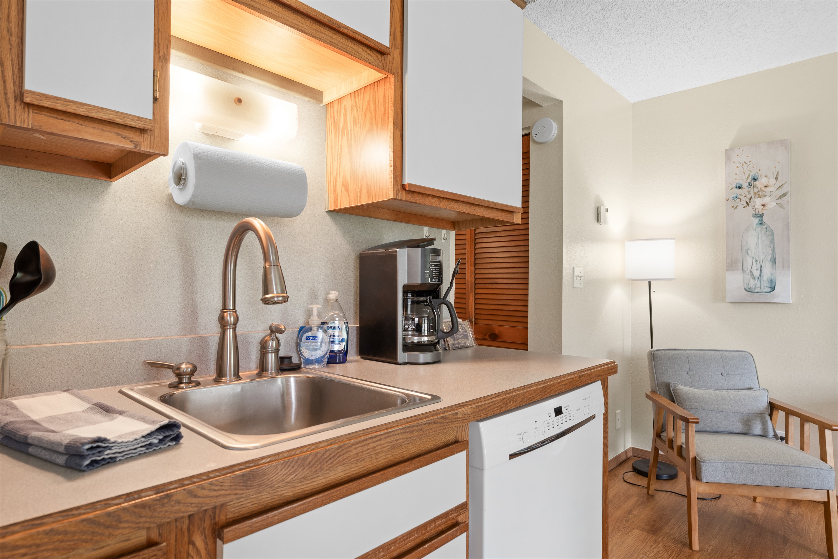 • Cozy living area with a smart TV (login to your streaming apps!)