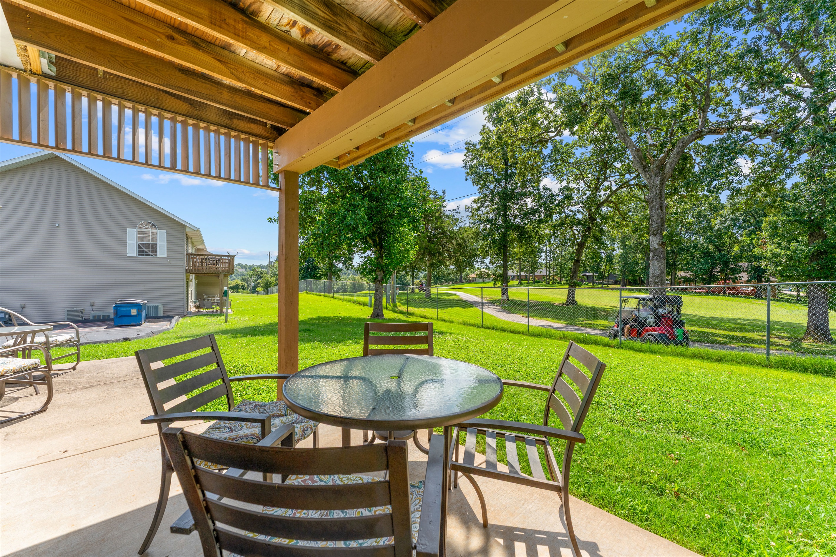 • Private covered patio with tranquil golf course views