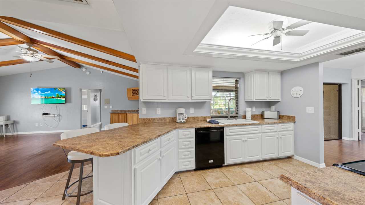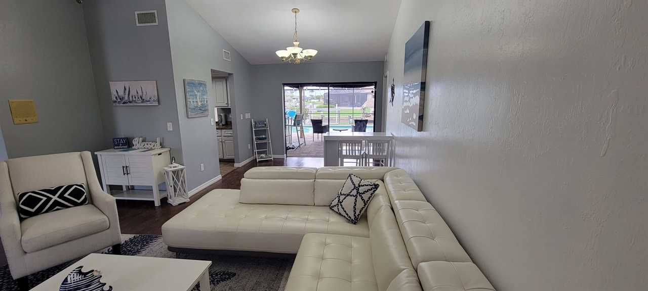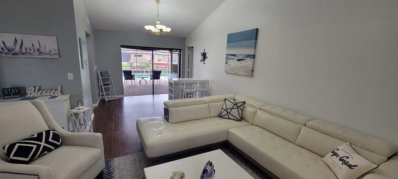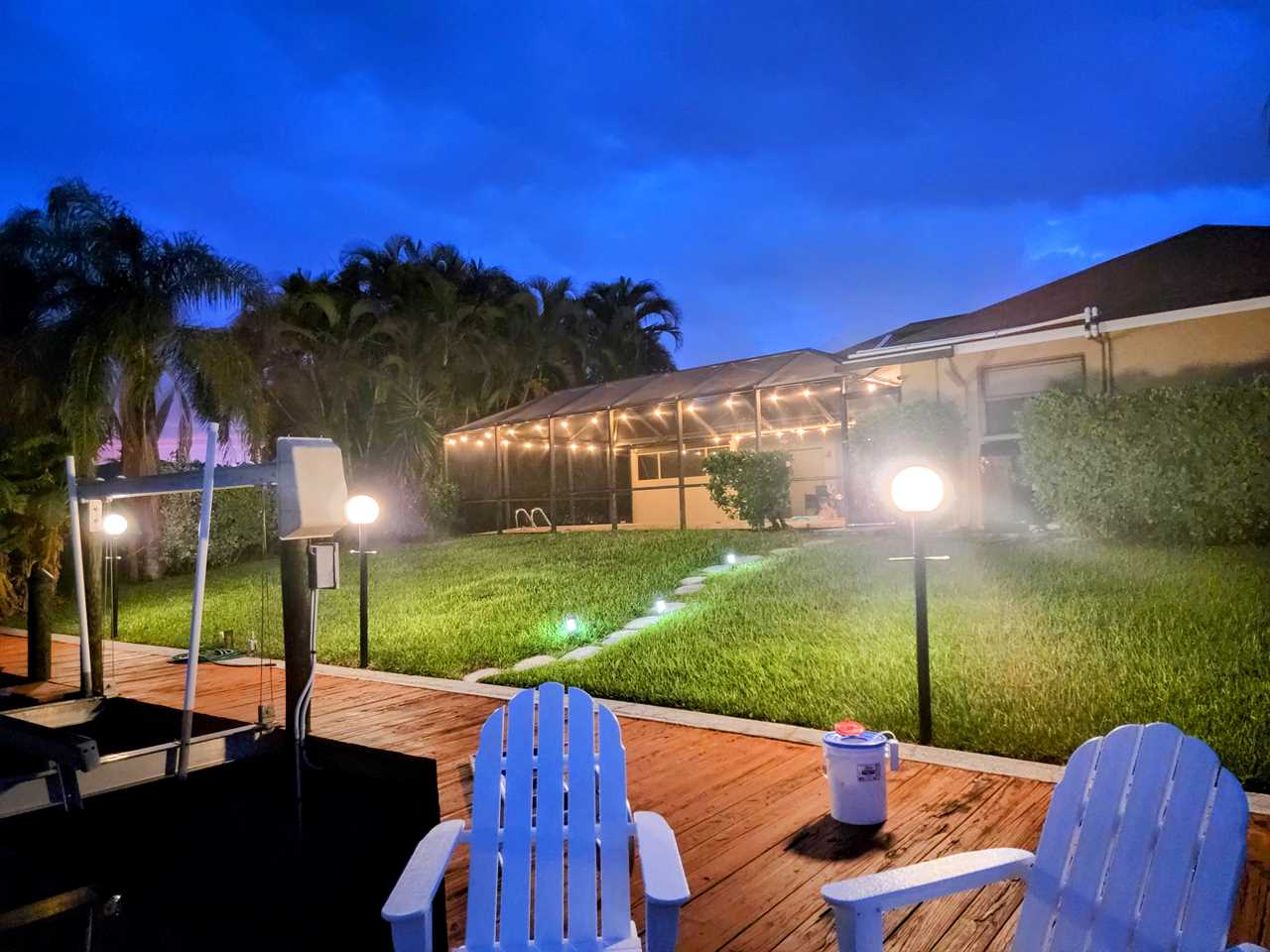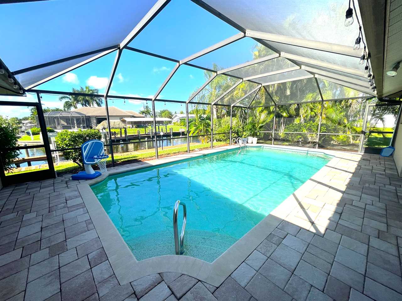 Sunset Palms Dockside Retreat is the perfect place to relax in the warmth and serenity of Cape Coral! This gorgeous vacation home is located east off Del Prado Blvd in a great area of town with quick access to shopping, restaurants, and just a short ride by boat to the open water/river and all area beaches.