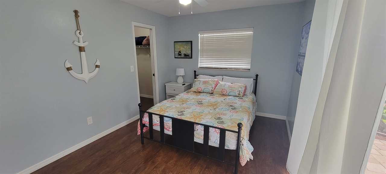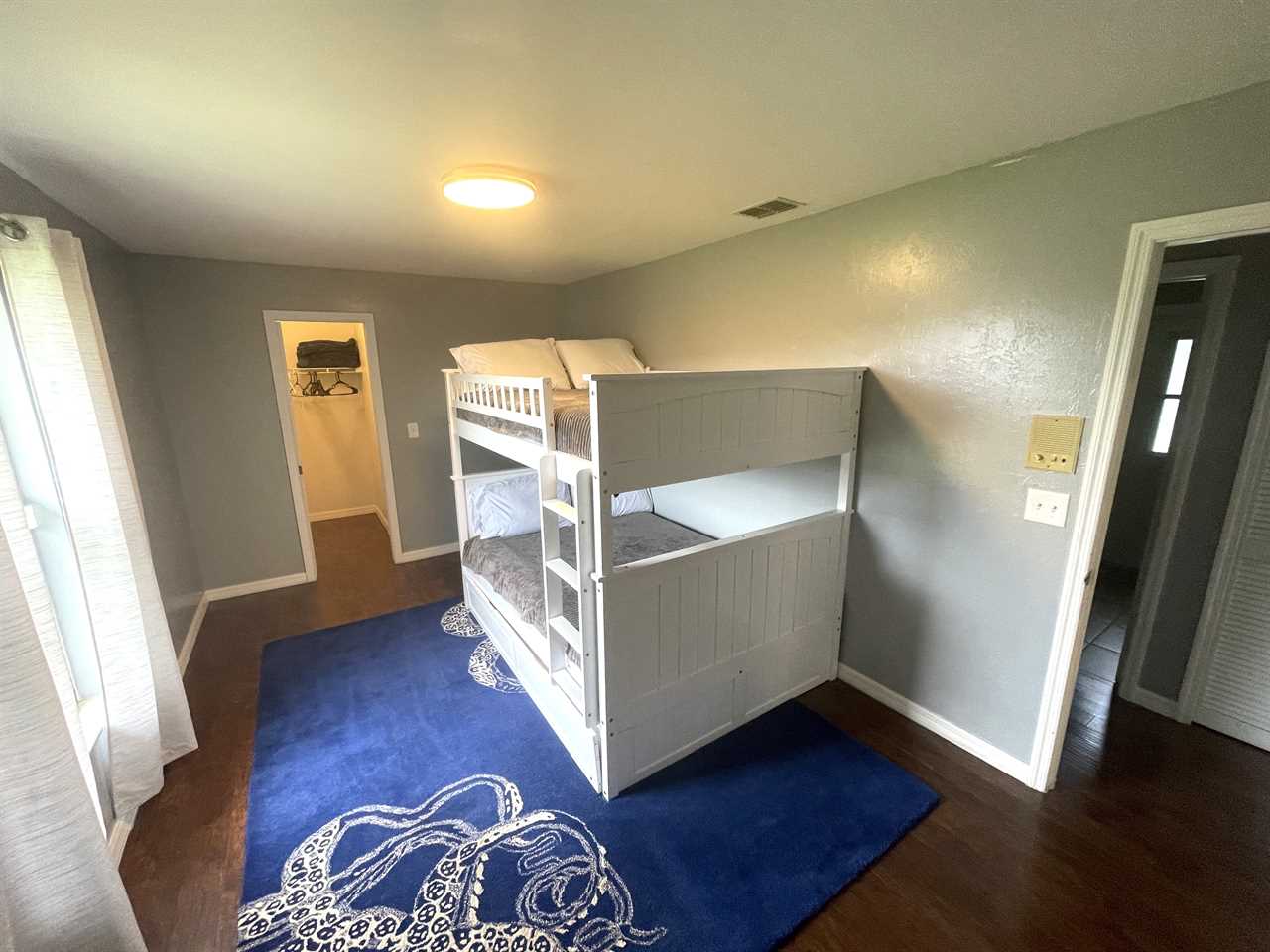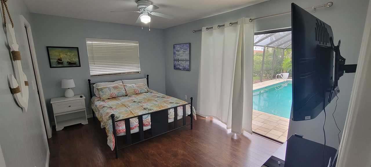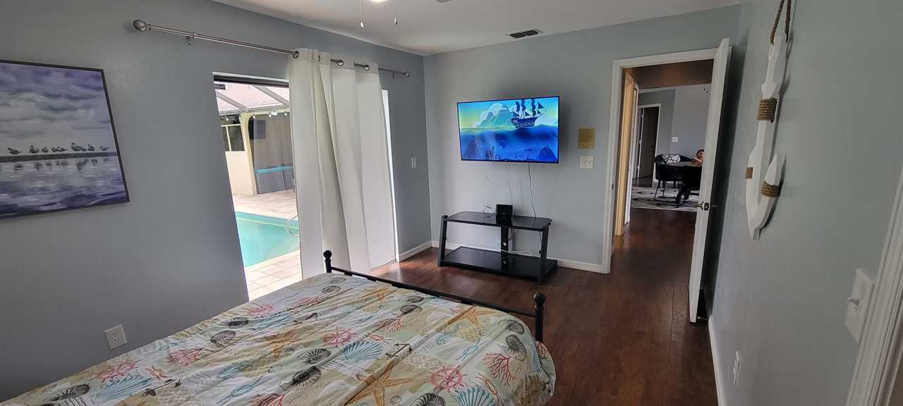 The property offers 3 bedrooms: king in master, queen in back guest room and 2 full size bunk beds in 3rd guest room, Bunk bedroom has overhead light in place of fan for added safety. Master bath features dual vanities and a roman shower. The guest bathroom has a shower/tub combo and accesses the pool area. Fully stocked kitchen allows for homecooked meals with family and friends. This home also offers a comfortable living space and spacious family room complete with foosball table and Xbox 360 consol. The flat screen TVs in living room, master bedroom and guest bedroom are Wi-Fi ready for your streaming services and offer Flex TV. High speed internet is available throughout the home. Fantastic pool area with outdoor seating, pool toys/floats and TV, perfect for a relaxing vacation, electric heated pool and accessible boat dock with gulf access views. Pool heat can be controlled and adjusted by guest. Master bedroom does not have a closet for guest use.