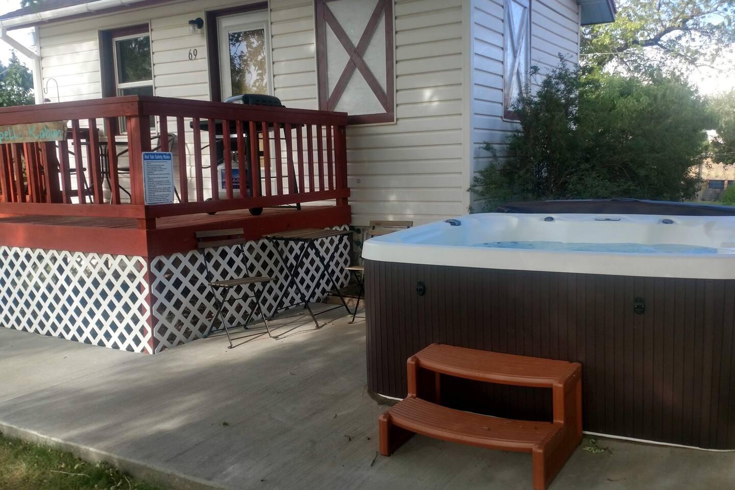 Adorable Small Cottage with a Private Hot Tub, Queen Bed, Kitchenette, Bathroom, Shower, and Deck. Located in Blanding near Hiking, Ruins, and ATV Trails in the Heart of Southeastern Utah! 14 Parks and Monuments-One Destination!