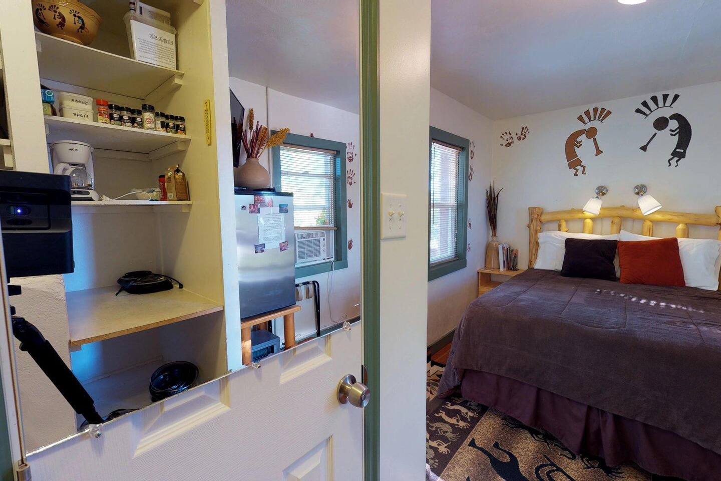 The Kokopelli Cabin with a Private Hot Tub is a studio cottage with one queen bed and features wood floors and a fully equipped kitchenette. Your stay at the Kokopelli Kabyn will be an intimate experience. A/C, Flat-screen TV, DVD, Wi-Fi, Folding Table & Chairs for inside, Outdoor Table, and BBQ grill outside add to your stay.
