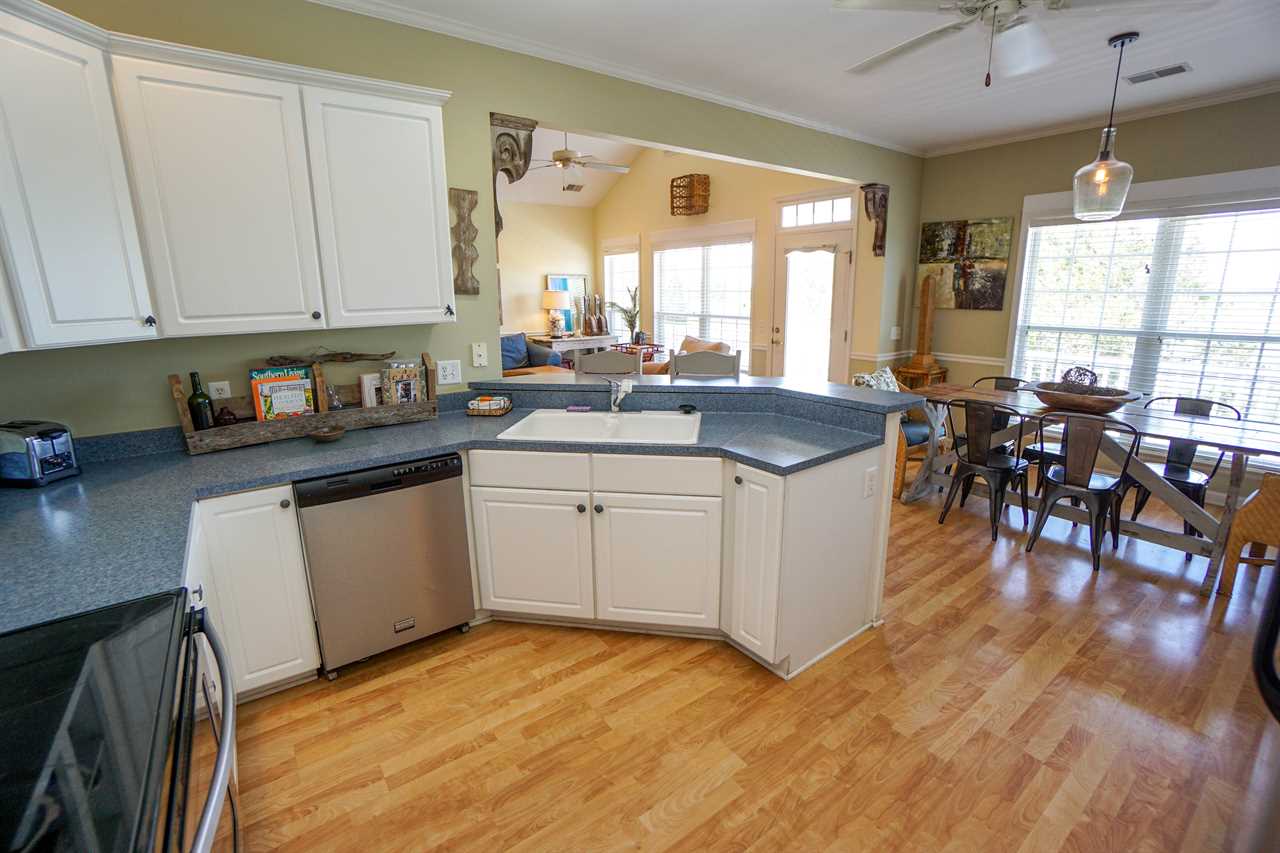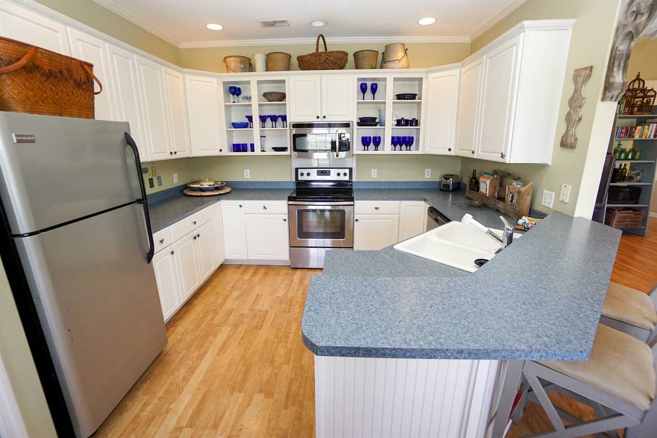 The kitchen has new appliances and is stocked with all of your cooking needs including utensils, glassware, dishes, and pots and pans to cook up your fresh catch of the day. Just down the hall is a full-size laundry room.