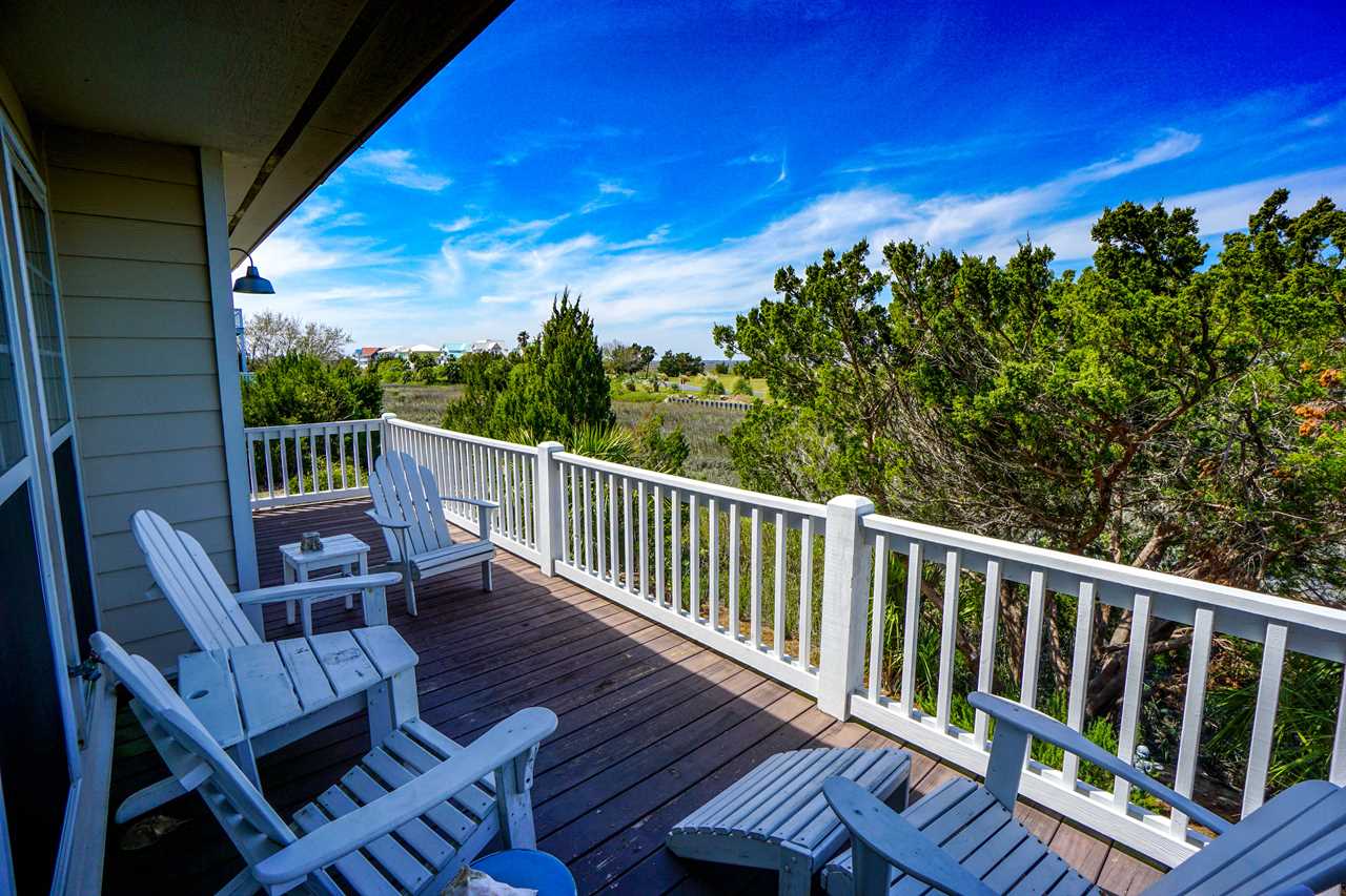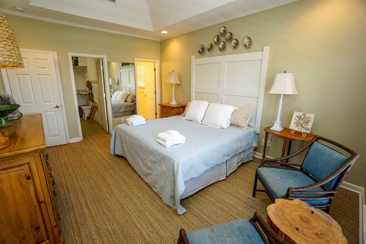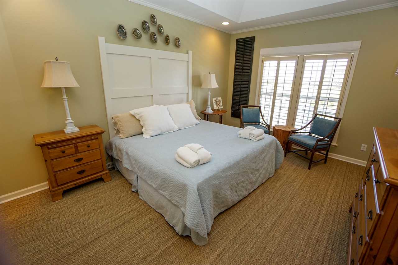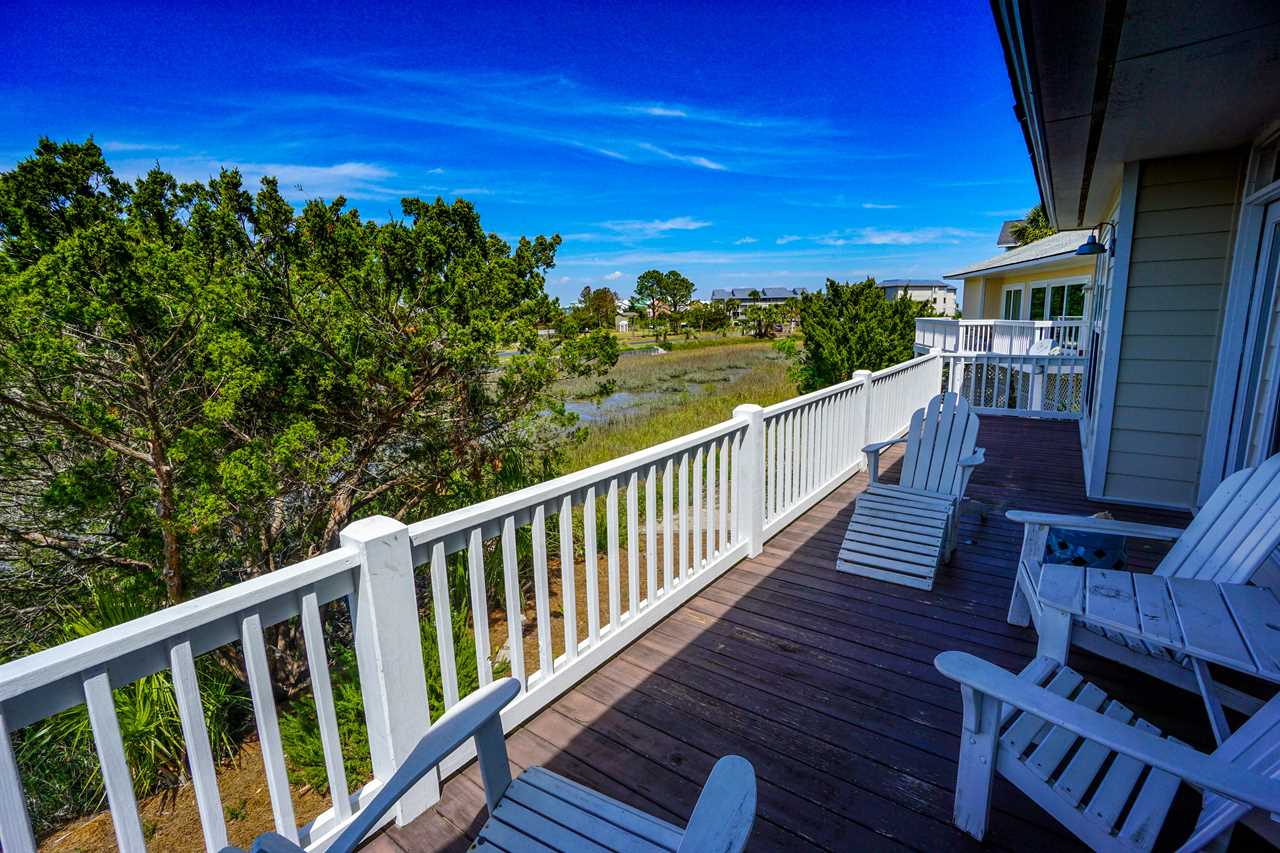 The master bedroom has a king bed, private bathroom, and marsh views. The other two bedrooms have very comfortable queen beds.