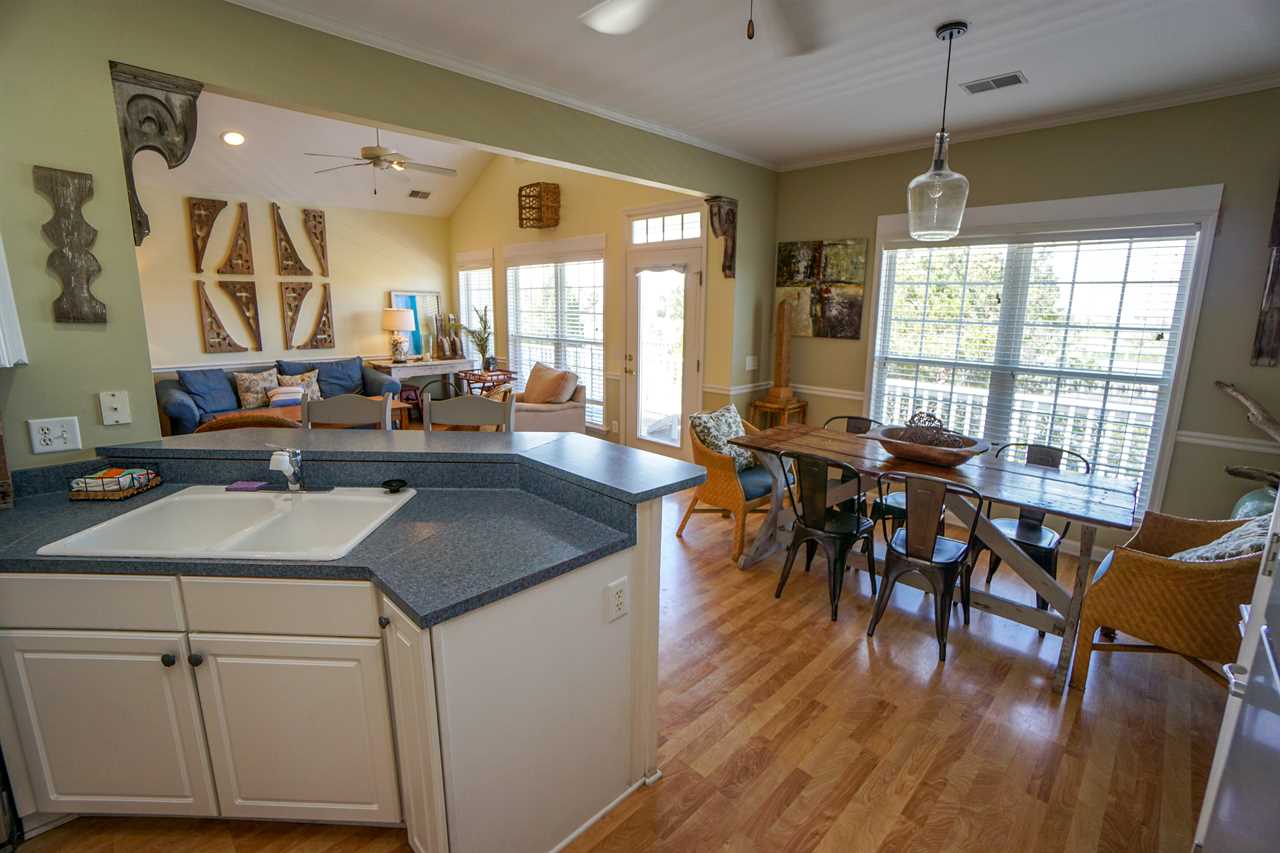 The open floor plan makes the home perfect for entertaining. There is a large back porch that spans the width of the house and overlooks a marsh sanctuary.