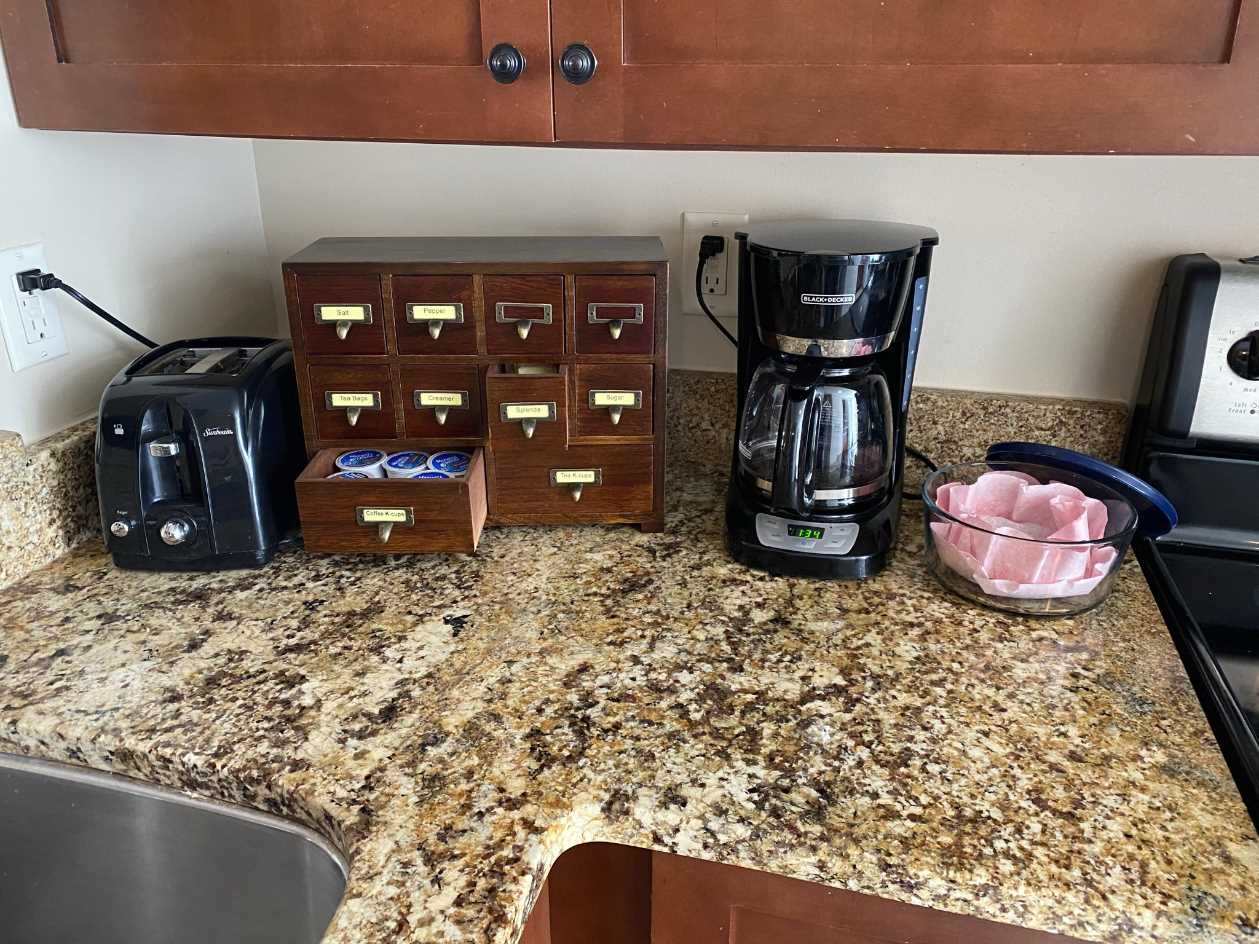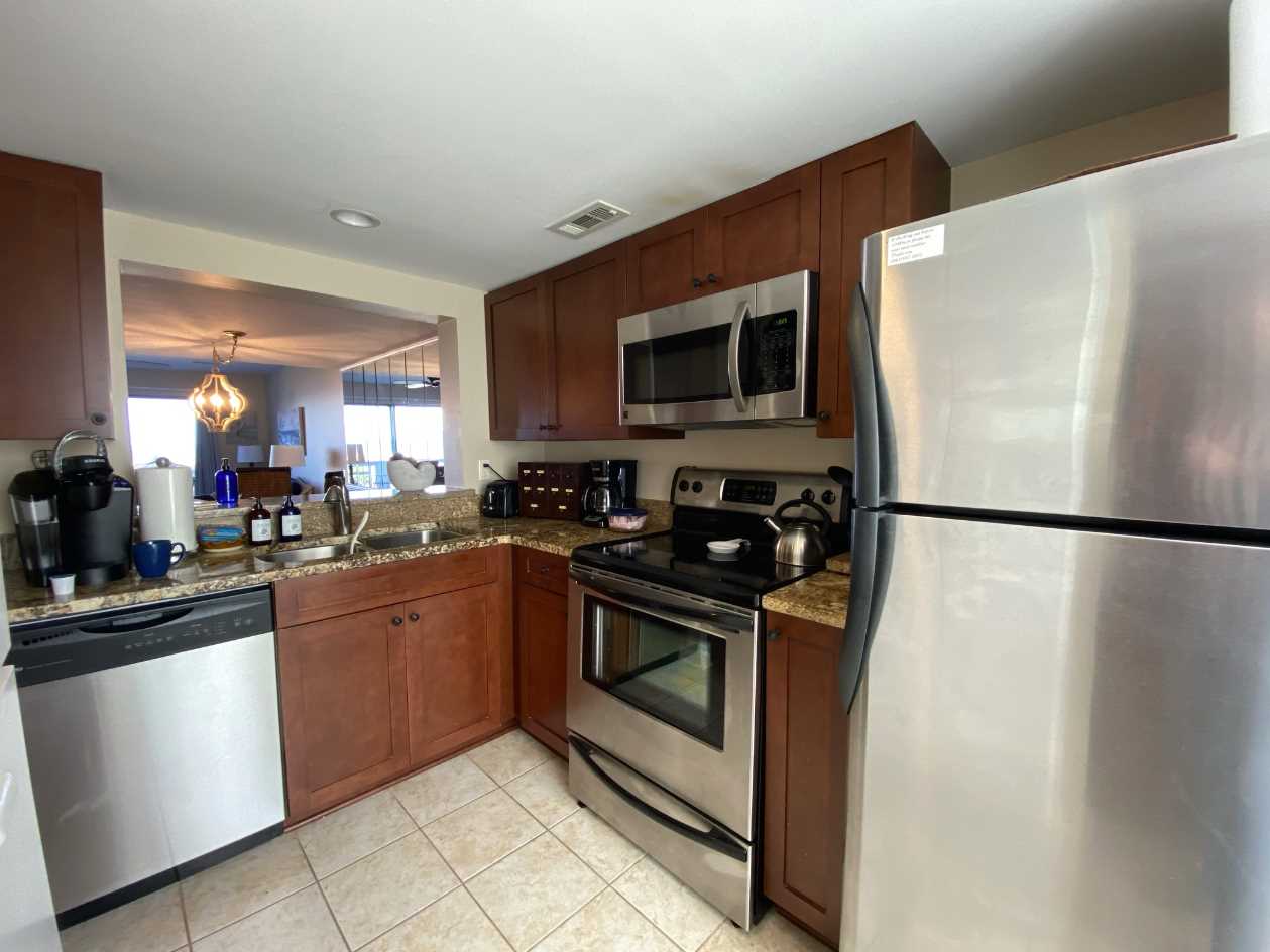 The kitchen was remodeled in 2018 with new cabinets, countertops, and flooring. The LG Washer and Dryer were updated in 2021 and the LG dishwasher in 2023. The hosts have added a Keurig and a Margaritaville mixer to make it a little easier to relax!