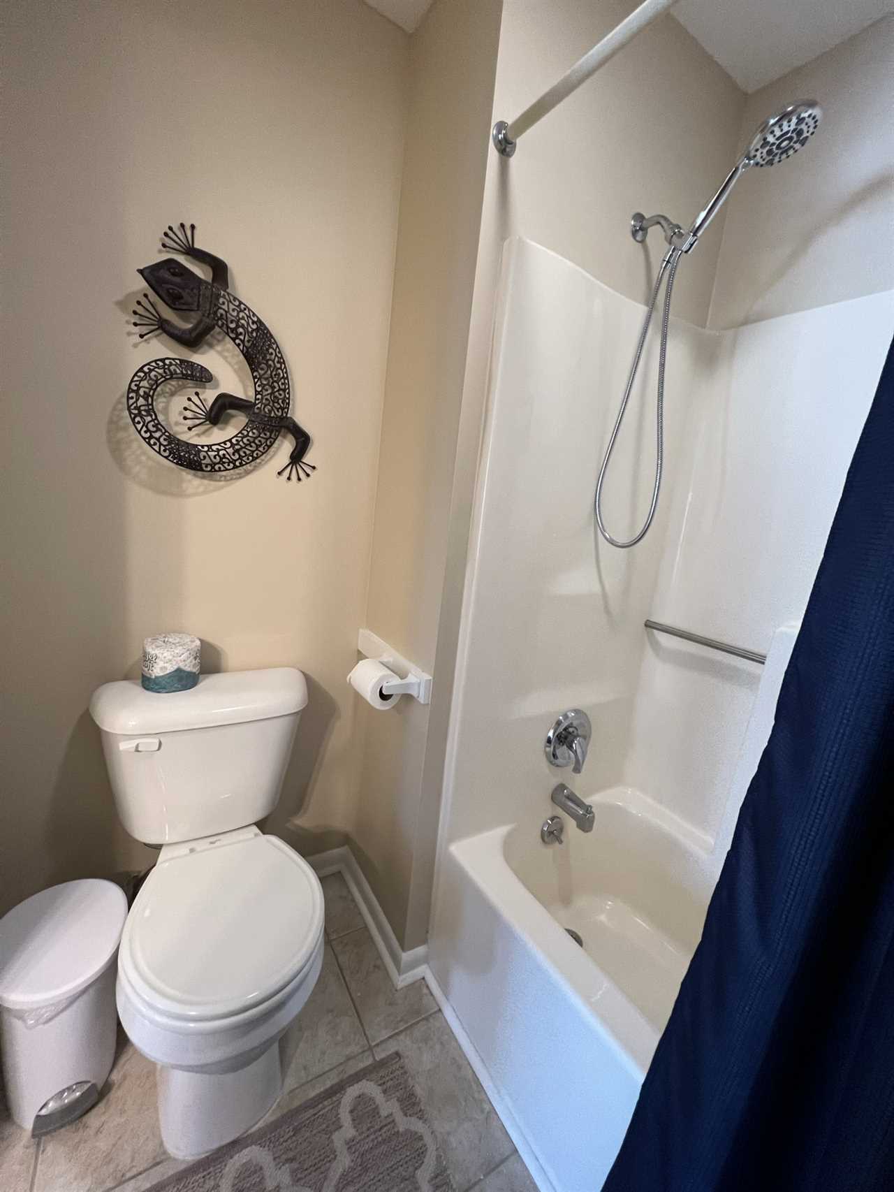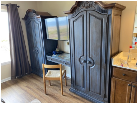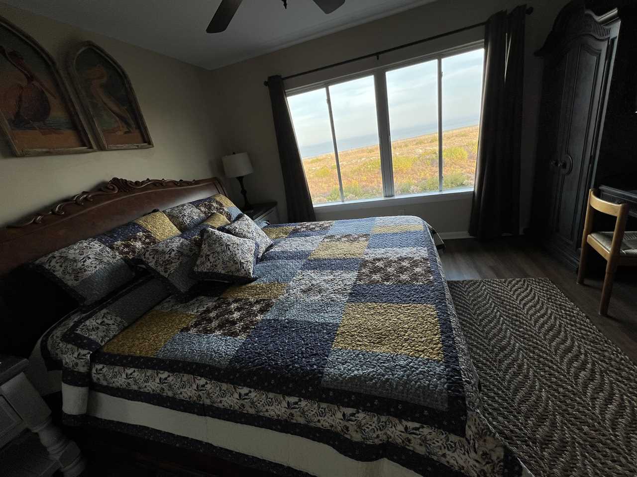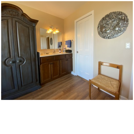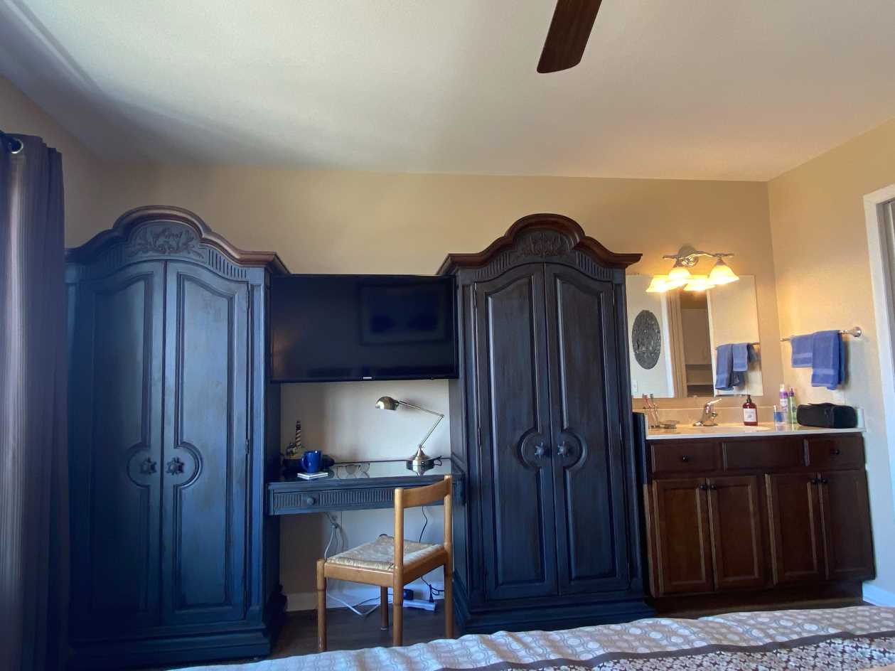 The main bedroom that overlooks the ocean was remodeled in 2021 and includes two spacious armoires and a gorgeous king size sleigh bed. The bathroom, which is off the bedroom, was totally remodeled in 2021 with brick-looking tile walls and Kohler fixtures.