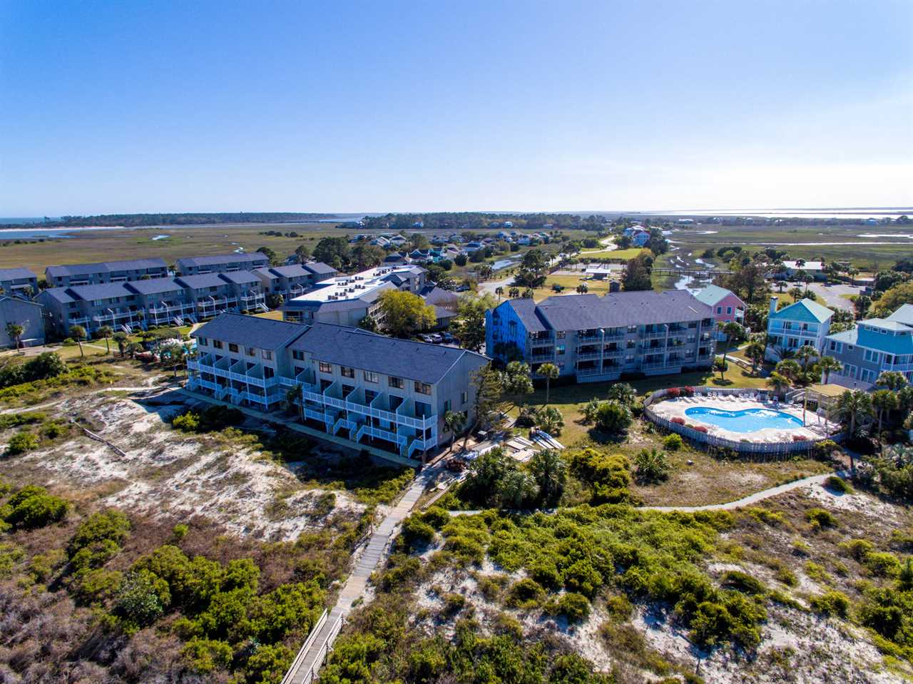 If you get tired of relaxing on the private deck overlooking the dunes and ocean, you can take a short walk to enjoy the 2 ½ mile stretch of secluded beach. Or perhaps you can use some of the Harbor Island amenities like one of three well-maintained swimming pools (in season), tennis and basketball courts, or their fitness room.