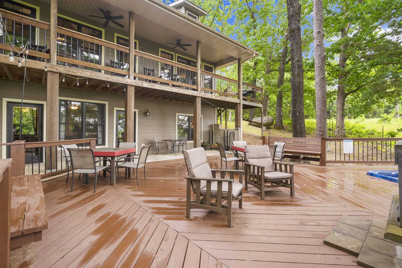 Meadow's Edge is located at the end of the lane of a 40 acres country estate in the heart of the Ozarks offering 6 unique homes to enjoy while on vacation in the Branson Missouri area. New Outdoor Salt Water Swimming Pool just added for these 6 unique homes. This beautiful three-story, six-bedroom, nearly 5,000 square foot lodge backs up to an open meadow and is perfect for friends or family gatherings! We have included an expansive deck that will give you plenty of extra room for entertaining and enjoying the fresh Ozarks air. The great room will be your center of activity, complete with a welcoming stone fireplace, beautiful hewn beams, and lots of windows overlooking the meadow. Meadows Edge lodge is decorator perfect in every way, and includes everything you need to experience a wonderful Branson getaway that will be calling you back again and again! The game room is equipped for some friendly competition with ping-pong, foosball, pool, and card tables. We even added an outdoor basketball hoop! This home also offers fast free Starlink internet! The kitchen is every chef's dream! With top-of-the-line appliances and granite countertops, this kitchen has everything you will need to make a great family meal. Meadows Edge has a beautiful circular dining room, surrounded by windows, as well as a breakfast nook! Step out onto the deck, or should I say one of the decks? The upper deck is covered-- the perfect place for morning coffee. The lower deck has multiple sets of patio furniture, an outdoor fireplace, and a ground-level hot tub. Both decks overlook the meadow and the forest. Take a load off in one of the bedrooms- and oh boy do you have options! Four of the bedrooms have king beds, and one has a queen. The last bedroom-- the bunkhouse-- has one queen bed and four twin beds. Pack N Play and High chair available in the home for your use! All of the bedrooms are comfortably furnished and decorated with a New England feel. The 4.5 bathrooms are all equipped with high-quality linens.