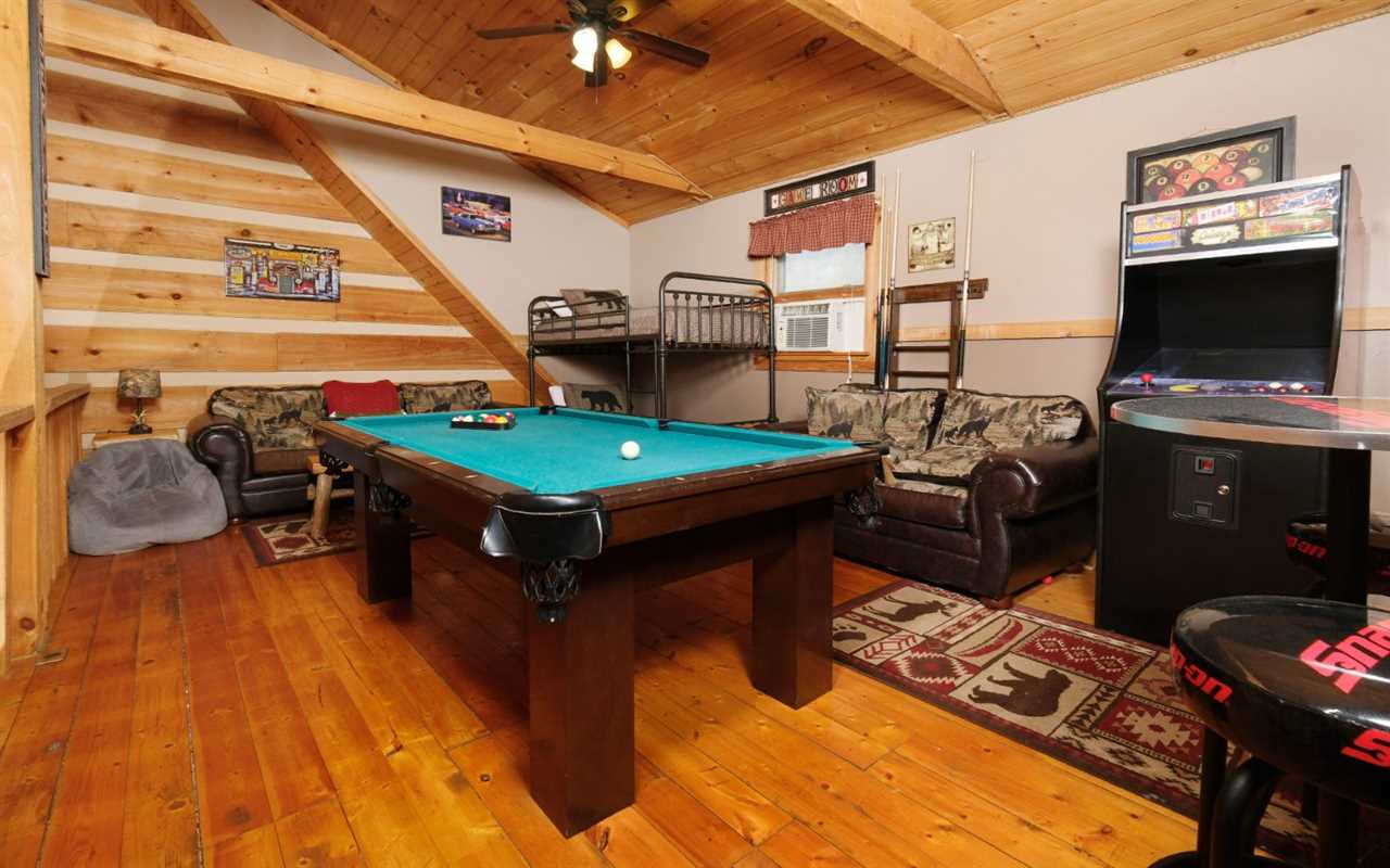 This Pigeon Forge cabin keeps your group entertained with a pool table, a Blu-ray player, and a 60-game arcade! For relaxation, enjoy rocking chairs on the porch, an outdoor hot tub, and a gas fireplace. Easily prepare meals in the fully equipped kitchen, retreat to the cozy bedrooms, and enjoy quality time together inside and out. There is also high-speed Wi-Fi and Chromecast TV for entertainment and convenience. Make lasting memories at this charming cabin in the Smokies.