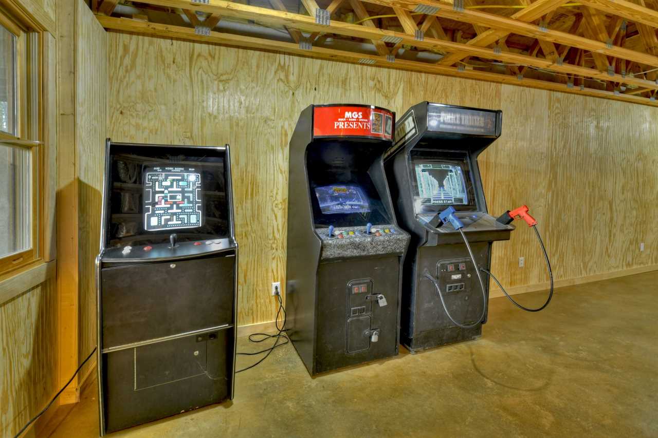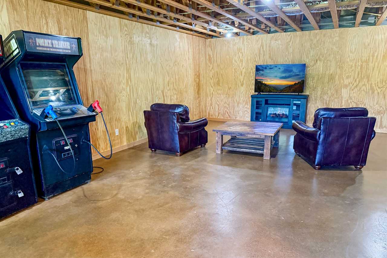 Cook meals in the fully equipped kitchen before heading to the partially finished basement to play arcade games or hang out in the media space with a few armchairs, a big screen TV, and a heated electric fireplace! Bedrooms include a king master suite, an open loft bedroom with a queen bed and a futon, and another bedroom in the partially finished basement.