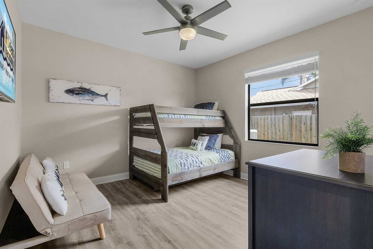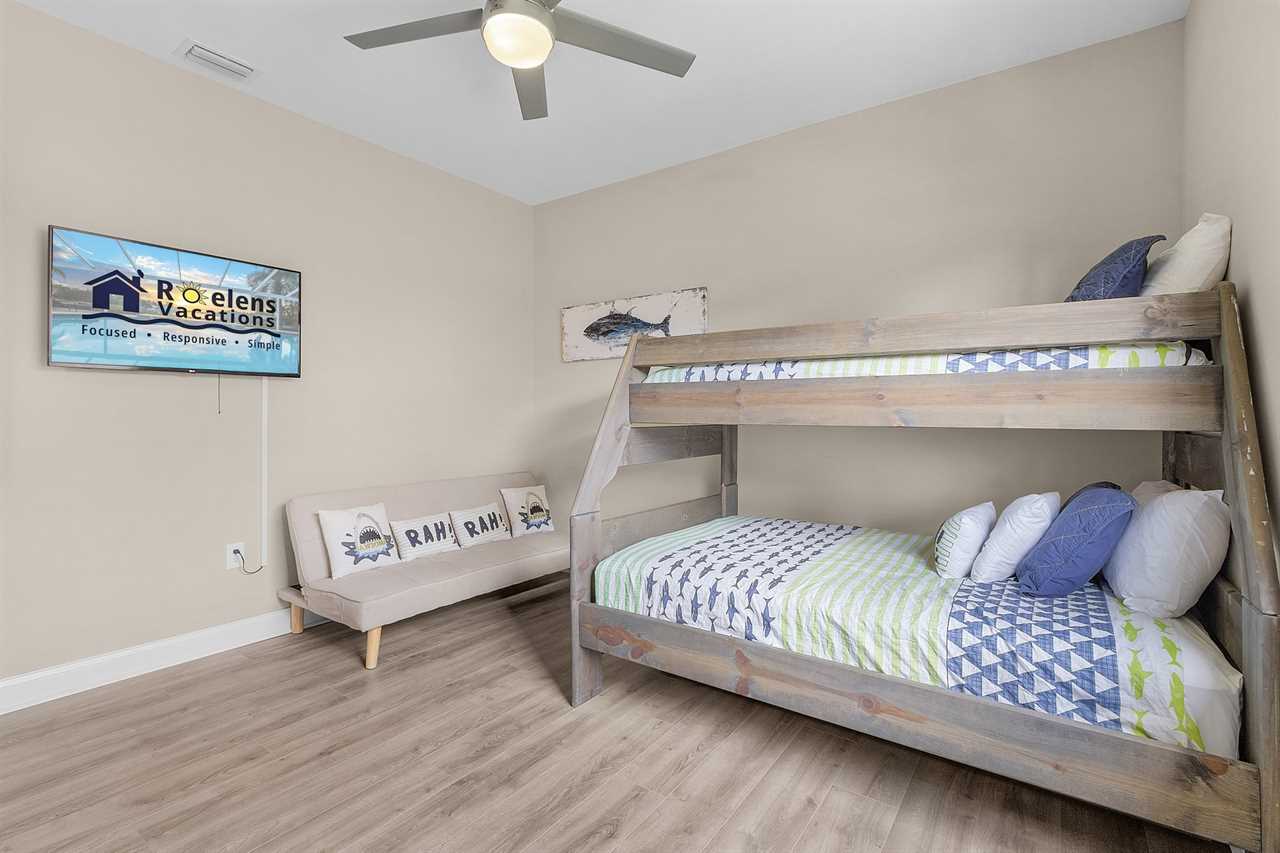 Guest Room 3: Twin-over-double bunk • Smart TV