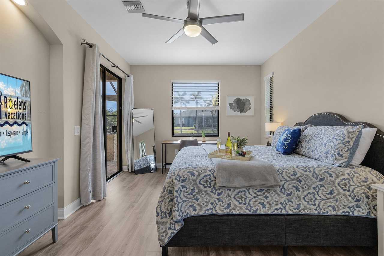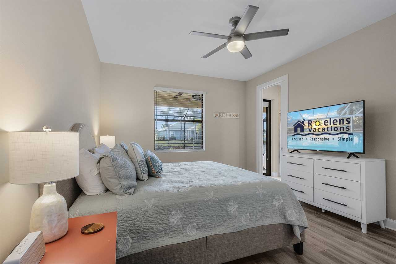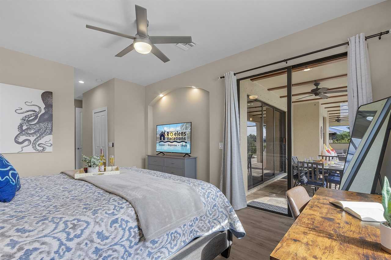 Master Suite: King bed • Smart TV • Ensuite bath • Direct lanai access