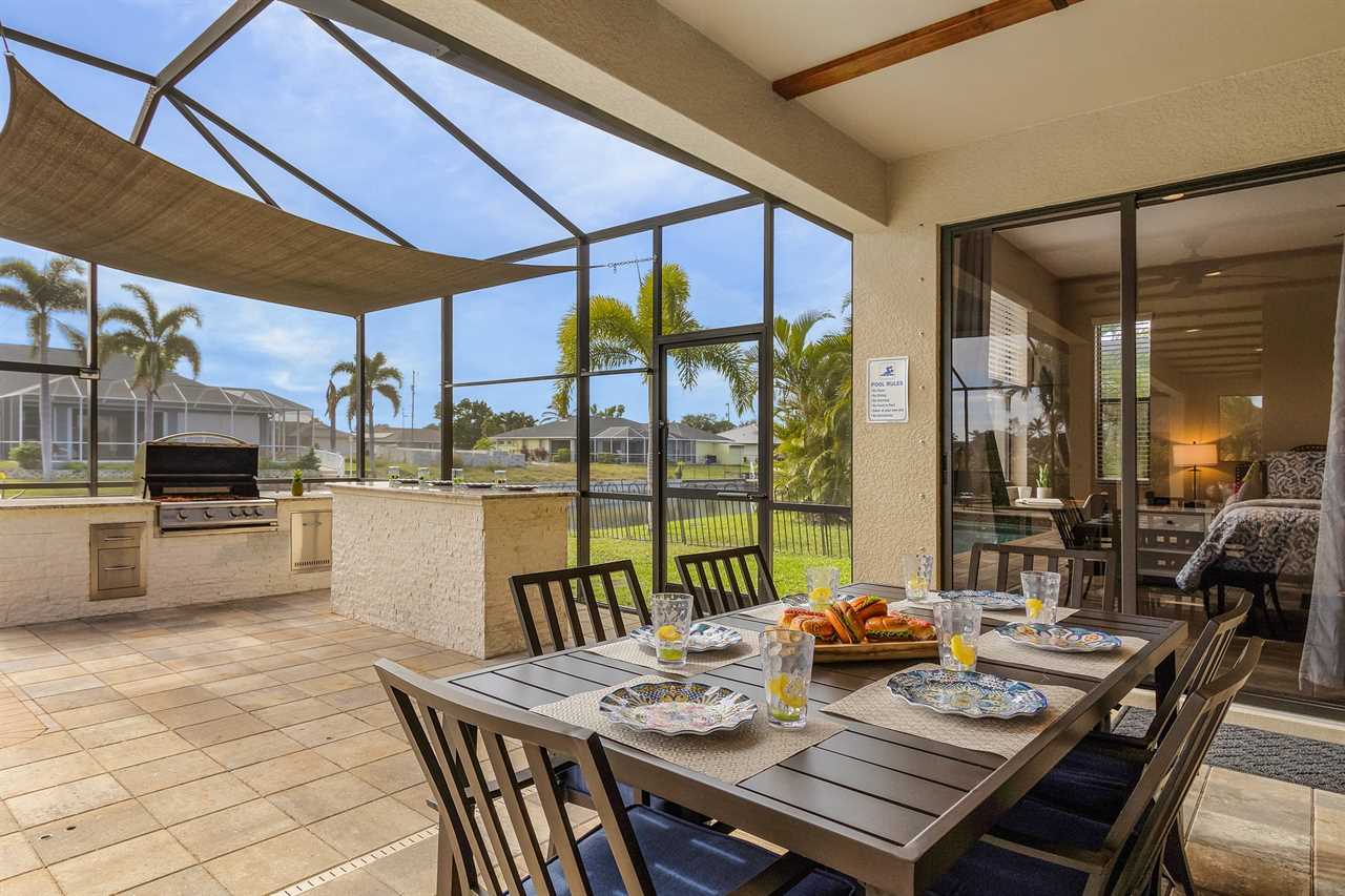 From sunrise coffees to golden sunsets, every moment at Casa Cabana feels like a dream. Lounge poolside, kayak through peaceful canals, or gather for a cookout in your private outdoor kitchen. With a perfect blend of modern style and tropical charm, this villa is your ultimate Southwest Florida escape.