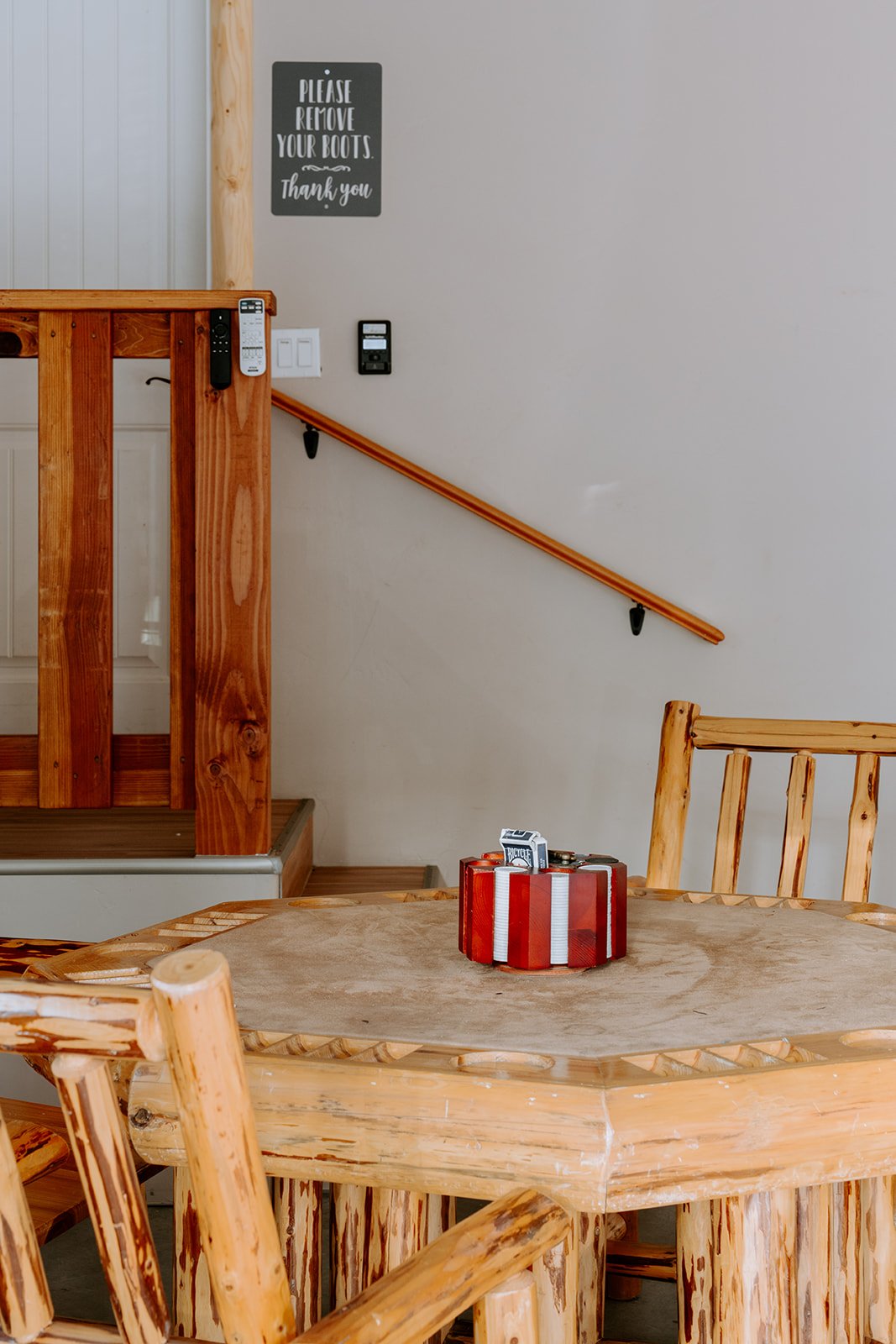 Newly constructed, custom built log cabin style home centrally located in Fox Farm. Three-bedroom, two bath open concept cabin with a gas fireplace, game room with ping pong, air hockey poker table and Firestick enabled projector with 120” screen, 400 Mpbs WiFi, Smart TVs, Bluetooth sound system, soaking tub, washer/dryer, and a fully stocked kitchen with stainless steel appliances, quartz countertops, stove/oven, refrigerator, dishwasher, microwave, blender, toaster, coffee maker, dishes, pots/pans, and more. The entire home has brand new furniture, including all new memory foam mattresses. Coffee, spices, hairdryer, towels, and complimentary toiletries are provided. We also have a variety of board games, card games and puzzles. Front and back decks with a gas barbecue, 8-person hot tub and a gas fire pit.