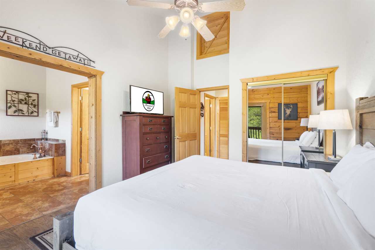 Unlock exclusive savings on popular Branson shows and attractions just for booking with us! See details below! Welcome to the Cabins at Grand Mountain, where rustic charm meets modern comfort. Nestled in the heart of Branson, this single-level two-bedroom cabin offers an unforgettable retreat for your vacation. As you step inside, you'll find a cozy living room adorned with a plush recliner and a seasonal gas fireplace, perfect for curling up with a good book or gathering with loved ones. The cabin boasts a thoughtfully designed open floor plan that seamlessly connects the living room, kitchen, and dining area, creating a warm and inviting atmosphere for relaxation and togetherness. The fully equipped kitchen provides all the amenities you need to prepare delicious meals, complete with a stove, oven, refrigerator, microwave, and dishwasher. Adjacent to the kitchen is a charming dining table where you can enjoy your culinary creations while soaking in the natural beauty through the cabin's large windows. The two bedrooms are elegantly appointed with king-size beds, ensuring a restful night's sleep after a day of exploration. The cabin features two bathrooms for added convenience and privacy. One bathroom features a luxurious walk-in shower, while the other boasts both a walk-in shower and a rejuvenating Jacuzzi tub, offering the perfect spot to unwind and pamper yourself. Step outside onto your private covered balcony and breathe in the fresh Ozarks air. Whether you're sipping your morning coffee or stargazing at night, this outdoor sanctuary is an ideal space for quiet reflection and relaxation. For added convenience, the cabin includes an in-unit washer and dryer, allowing you to pack light and enjoy the freedom of fresh clothing throughout your stay. Whether you're seeking a romantic getaway or a family vacation, this two-bedroom cabin offers the perfect balance of rustic charm and modern amenities to create memories that will last a lifetime. Great location with many attractions nearby: - Tanger Outlets: less than 1 mile away - Wonder Works: less than 1 mile away - Dig Town: 1 mile away - Hollywood Wax Museum: 1 mile away - Dolly's Stampede: 2 miles away - Butterfly Palace: 3 miles away - Branson Landing: 4 miles away - Silver Dollar City: 7 miles away Get 4 show or attraction tickets at deeply discounted rates when you book with us! Choose from over 30 of the hottest entertainment options the Live Entertainment Capital of the World has to offer! Just follow two easy steps: 1.) Complete the booking process. 2.) Send us a message to let us know you want the best savings in town! We beat all prices on Branson tickets - guaranteed! Shows and attractions sell out quickly, so we highly recommend that you contact us in advance of your stay to ensure the best seats! **Offer exclusive to guests of Thousand Hills Vacations. Activities are subject to availability and partners' participation is subject to change at any time.** Booking directly with Thousand Hills Golf Resort through this listing means you will have access to our on-site staff and will check in at our beautiful clubhouse, located at: 245 S. Wildwood Dr. Branson, MO 65616 Get unique access to all the amenities Thousand Hills Resort has to offer, including pool access, discount rounds of golf, BBQ grills, 24-hour maintenance and staff, and on-site concierge service to help you plan and book your entire Branson vacation. Guest comfort and experience is our ultimate goal. Our front desk staff will expedite your check-in experience and make sure you have everything you need for a wonderful stay in Branson. Our Concierge can assist you during your check-in experience to help round out your vacation with the best deals in town. You can also reach out to us ahead of time to book these experiences with our low-price guarantee.