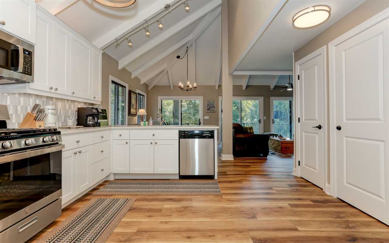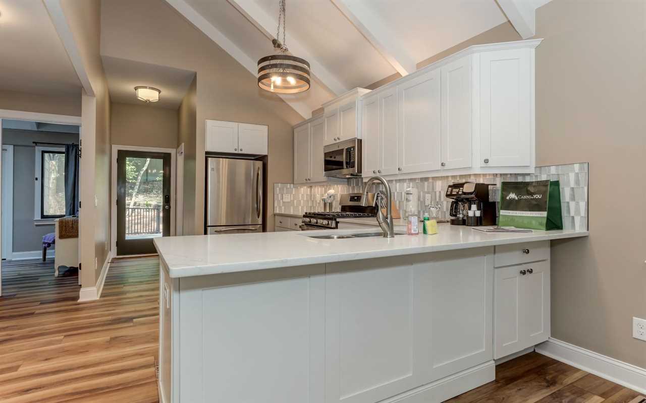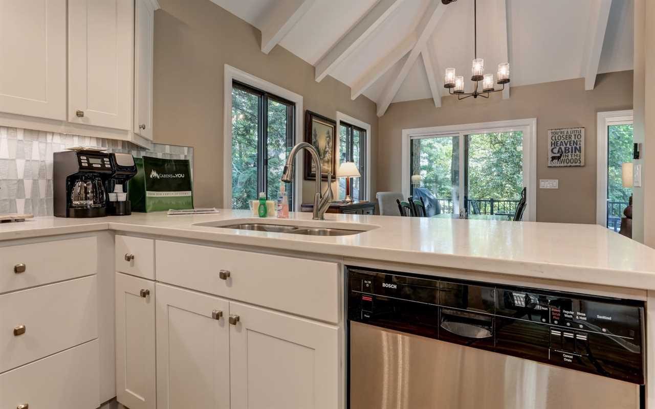 Additional amenities at this Big Canoe cabin rental include TVs in the bedrooms, a grab bar in the shower, a washer and dryer, self check-in and checkout with keyless entry, and free Wi-Fi. For travel notes, the driveway is flat and paved, with parking for 2 and a ramp to the front door. Plan your unforgettable Blue Ridge Mountain vacation at Villa on 9 today!