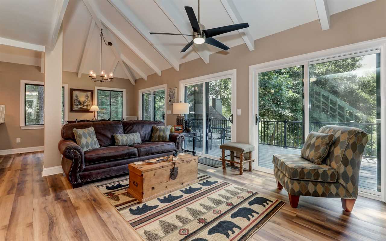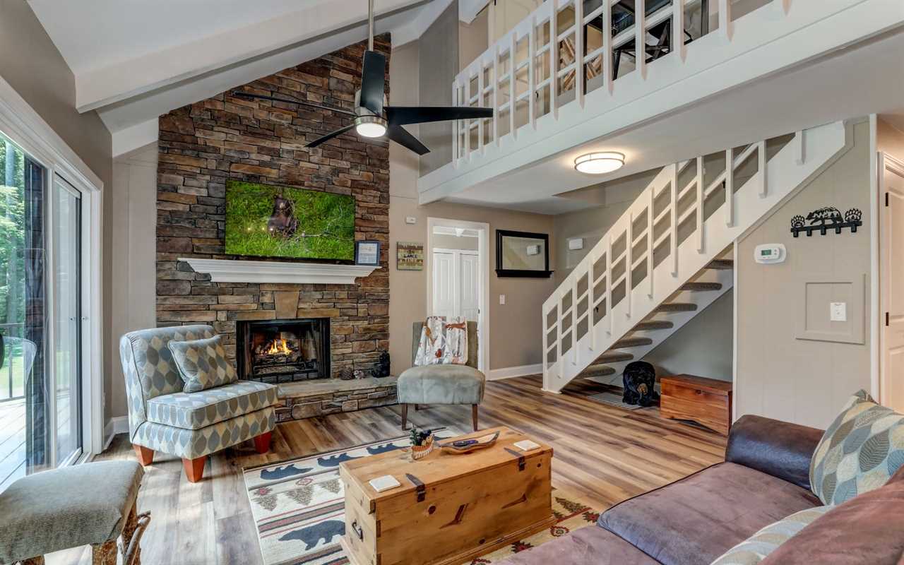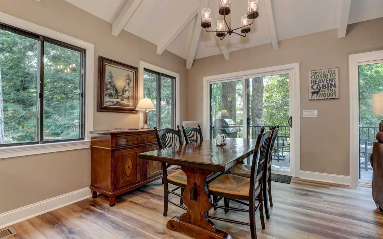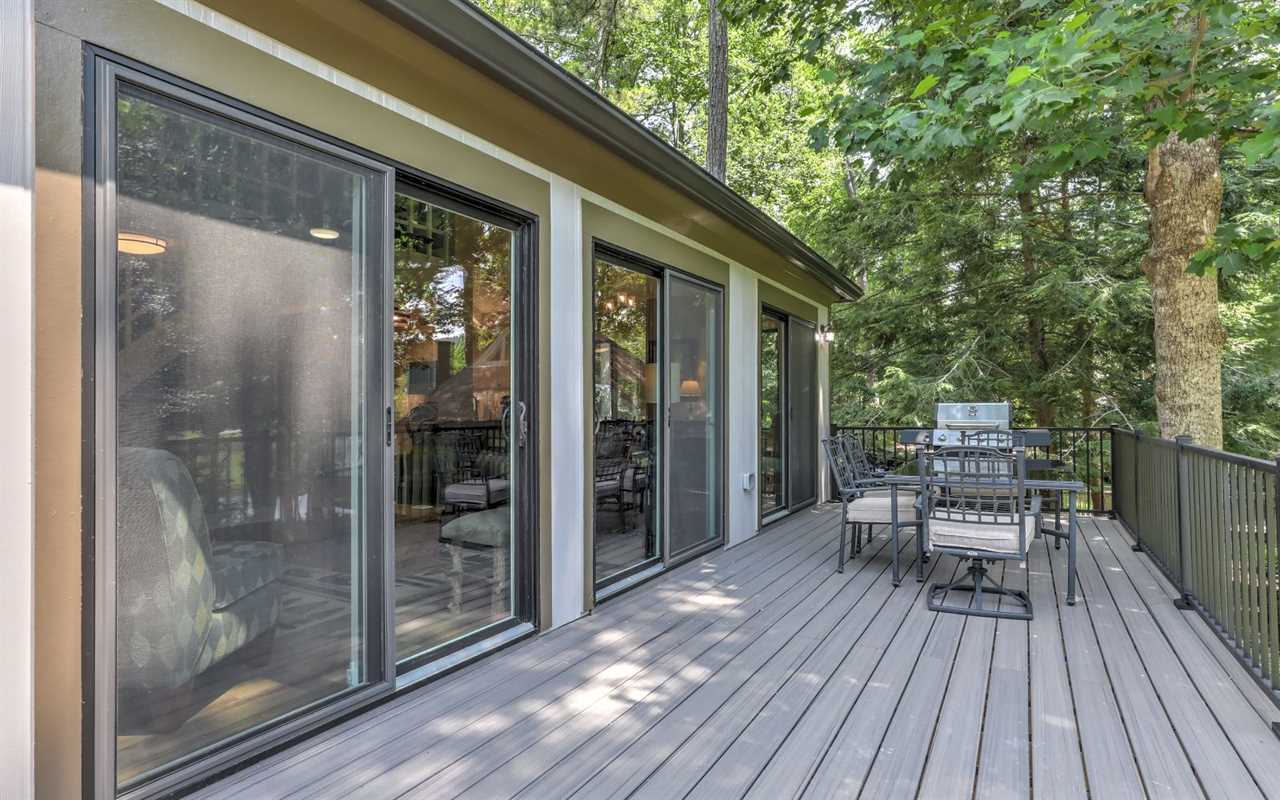 View the championship golf course from your open decks, where you can sip morning coffee or fire up the gas grill and dine at the outdoor table. On cool evenings, light a fire in the stone (gas) fireplace to pair with wine, dessert, a good book, or a DVD film on the big screen TV in the living room. You can set up board games at the table between mealtimes, with snacks and drinks prepared in the fully equipped kitchen at your Big Canoe rental.