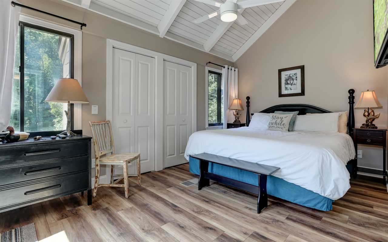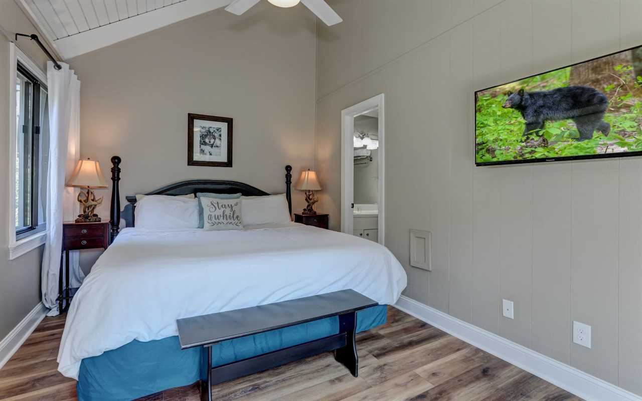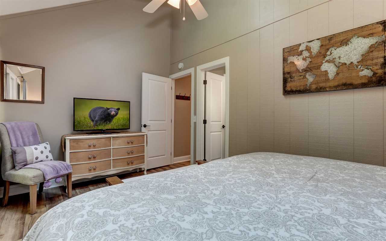 Between playing golf, tennis, and bocce, splashing at the pools and lakes, taking the kids to the playgrounds, hiking trails, or dining at exclusive eateries in the community, retreat for a hot shower at your North Georgia vacation home. There are 2 bedrooms on the entry level — with king-size beds. And you'll find a twin-over-twin bunk plus a queen bed upstairs.