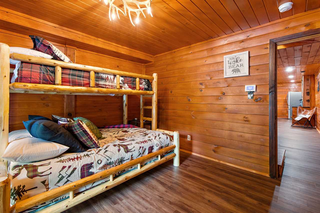 The master suite is on the main level and includes a king bed, a TV, a private ensuite bathroom with a large soaking tub, and deck access. The second king bedroom on the main floor has a TV and gorgeous mountain views. Upstairs are two bedrooms with a queen bed and a full bed each. There is a shared upstairs bathroom with a tub/shower combo. The lower level bunk room accommodates 3 with a full-over-queen bunk bed and an attached full bathroom. This room has a Nintendo Switch. Additional sleeping spaces for flexible options include a futon in the lower level family room, a futon in the loft, and a child-sized single sleeper chair.
