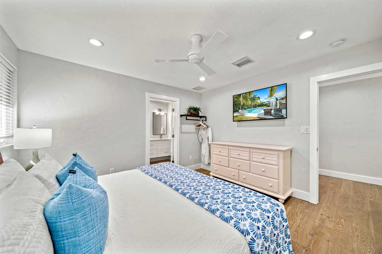 - Bedroom 1: King Bed, Ensuite Bath, TV