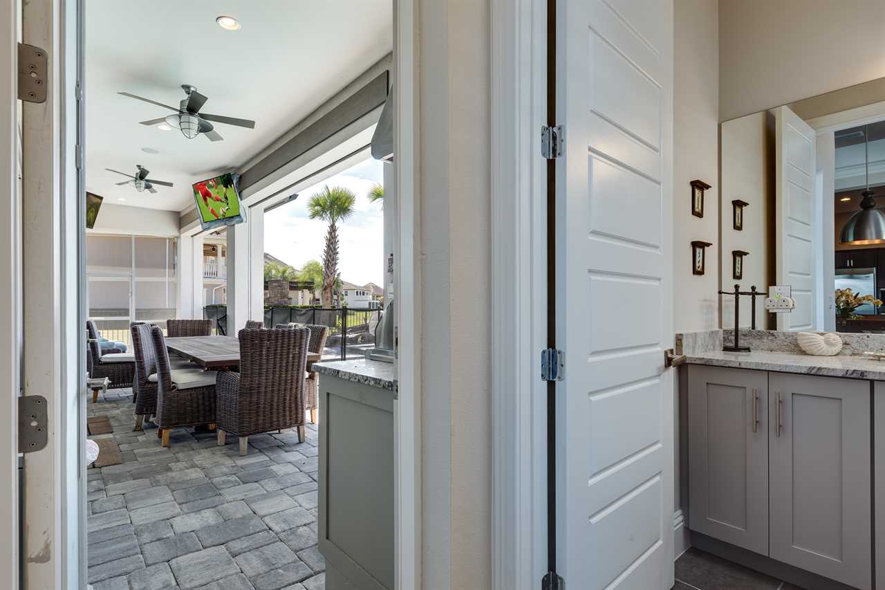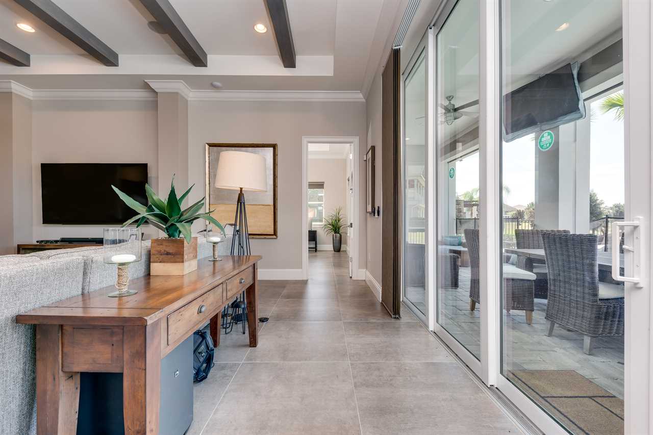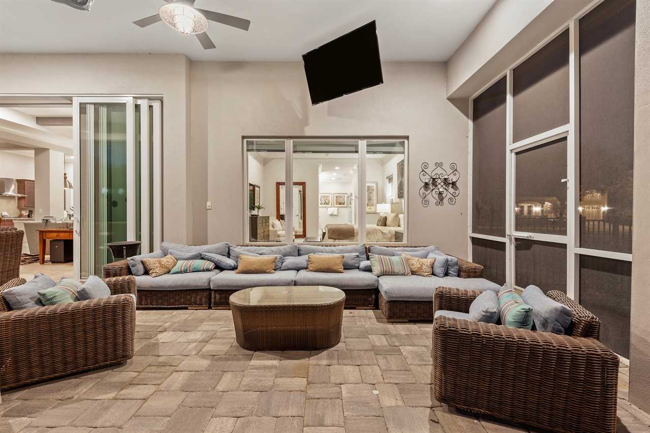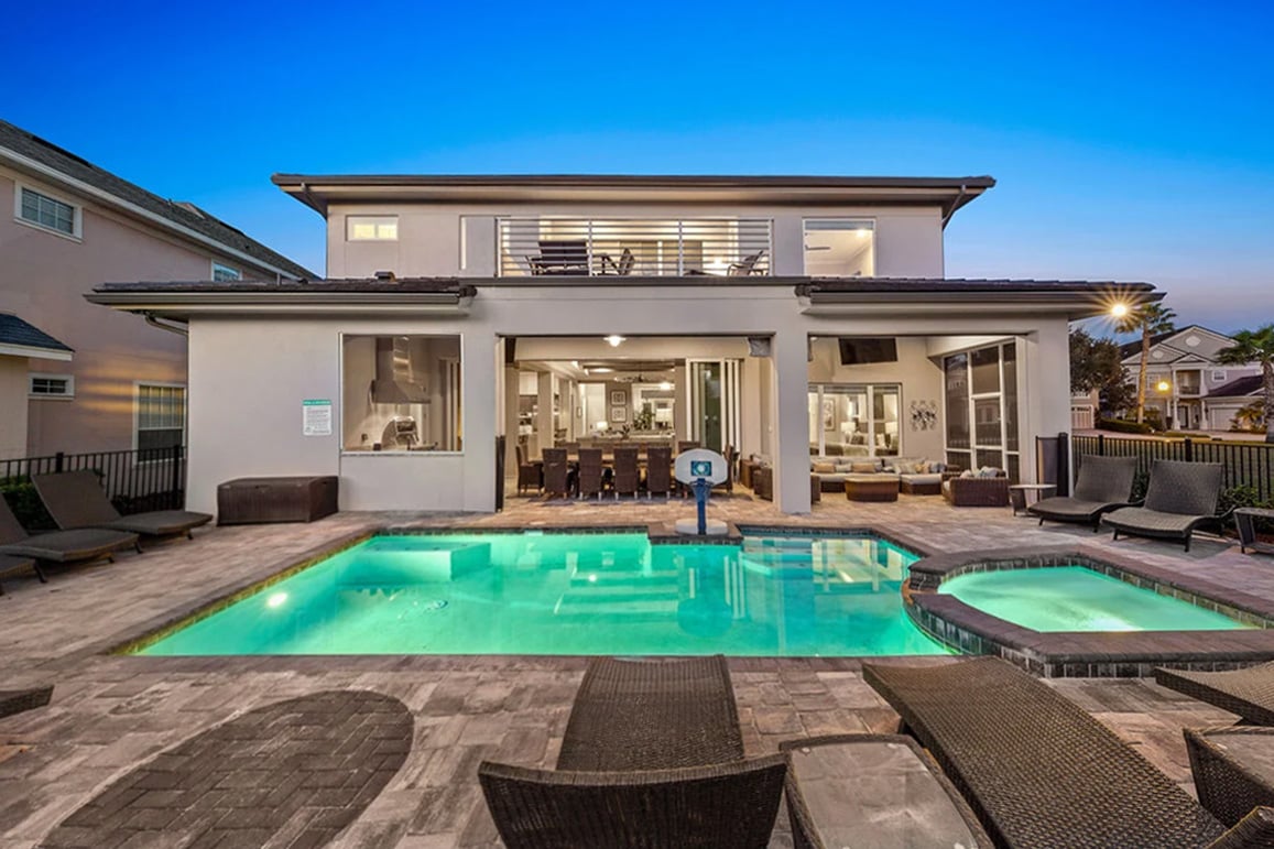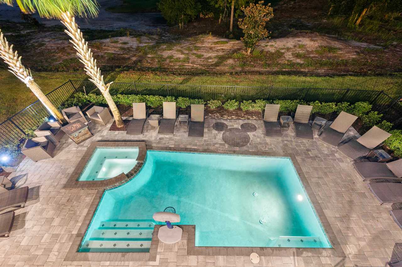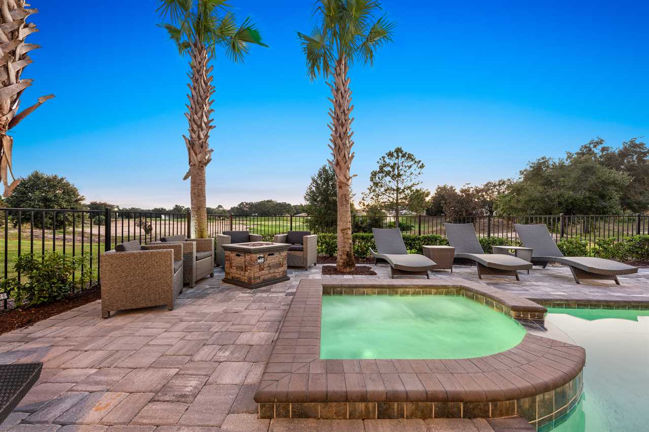 Step out and soak up the warm Florida sun. A large private pool complete with a spillover spa makes this your own private oasis. Luxury patio furniture with ample outside seating in the back making sure there is enough space for everyone. Fire up the gas-fed grill and enjoy dining al fresco under the stars. Play basketball from the pool and enjoy keeping up with your sports games and favorite movies with the 3 4K Roku TVs on the patio.