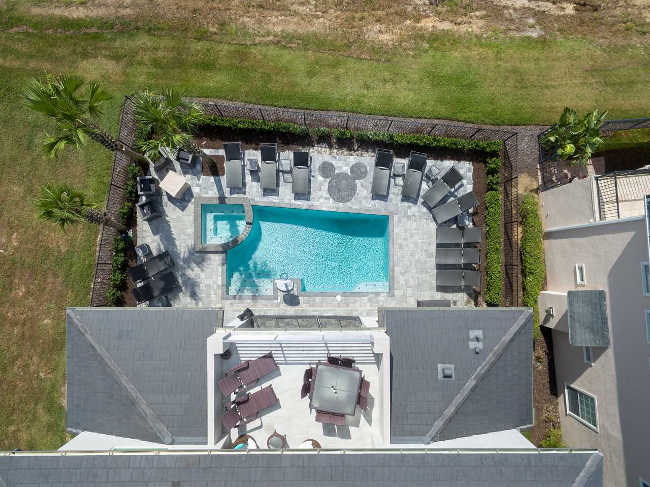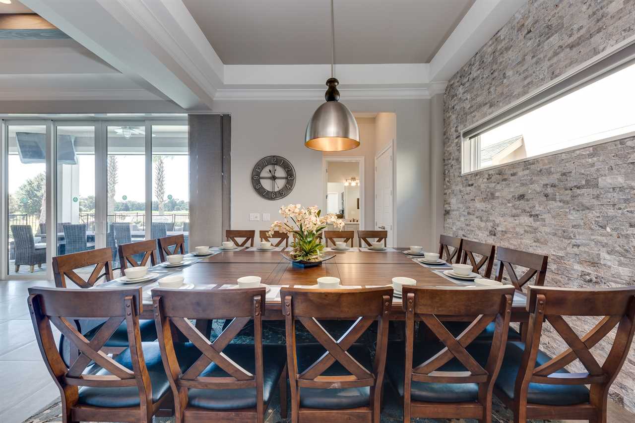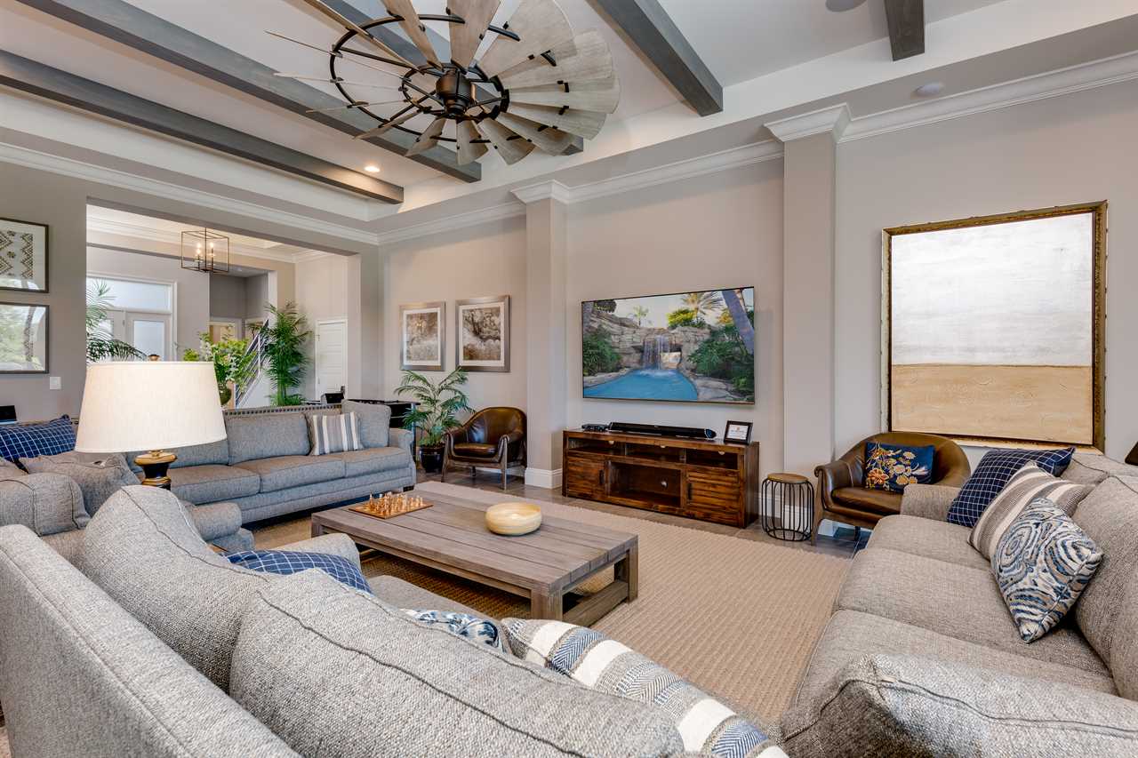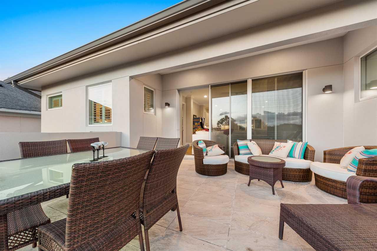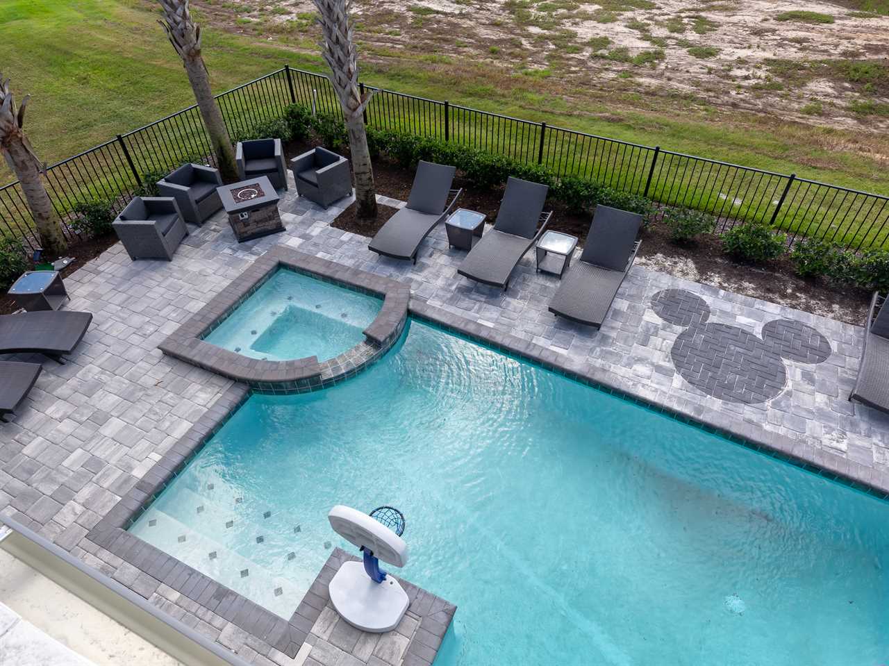 Step out and soak up the warm Florida sun. A large private pool complete with a spillover spa makes this your own private oasis. Luxury patio furniture with ample outside seating in the back making sure there is enough space for everyone. Fire up the gas-fed grill and enjoy dining al fresco under the stars. Play basketball from the pool and enjoy keeping up with your sports games and favorite movies with the 3 4K Roku TVs on the patio.