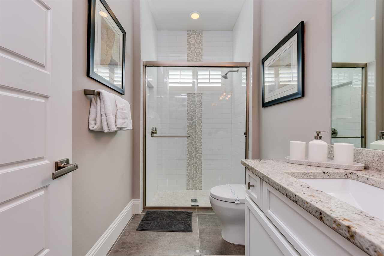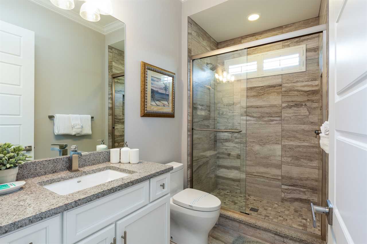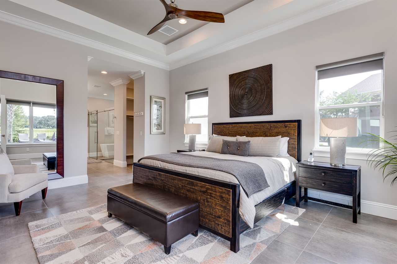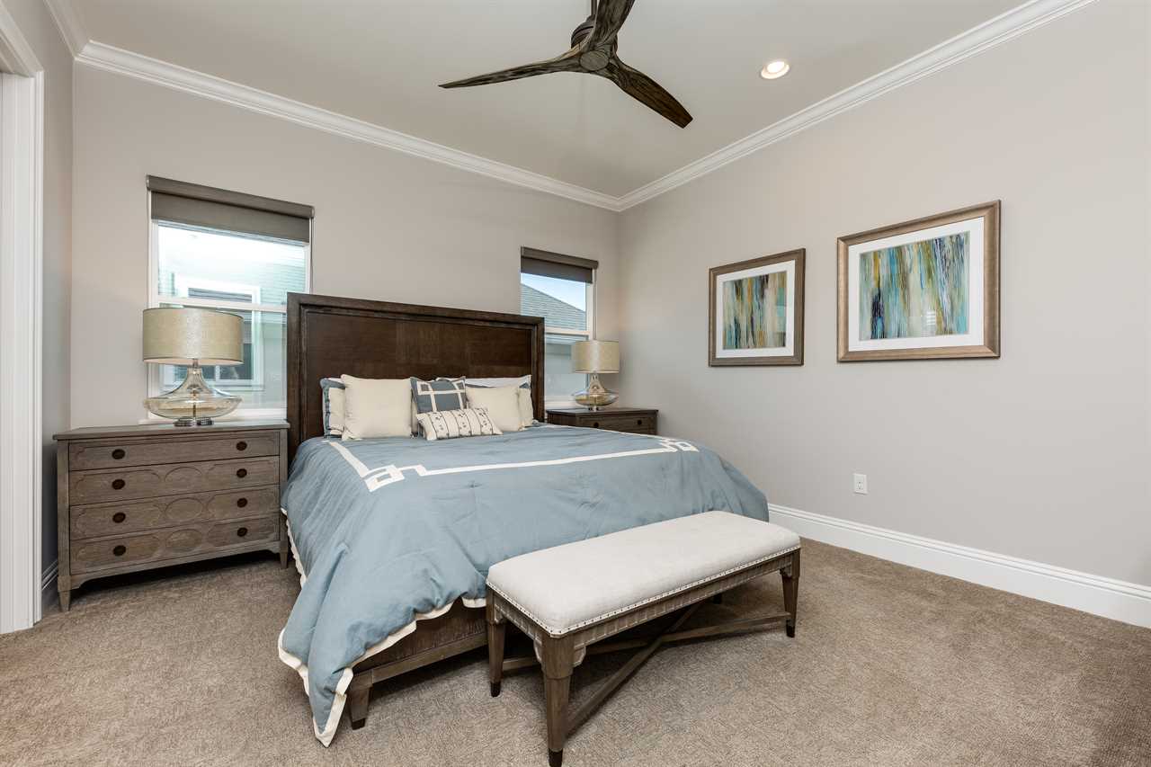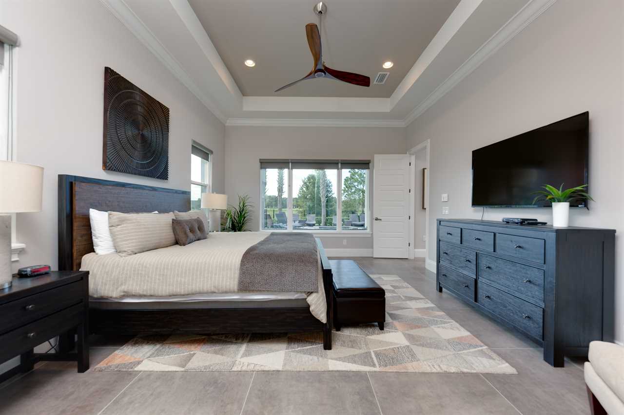 Stepping into the grand entrance of the exquisitely designed home, you will be blown away by the detail that the owner has taken when designing, and furnishing this unique villa. The open floor plan allows for amazing views of the Independence golf course from the front entrance, to the large wall of sliding glass doors that lead you back to the private pool area. The home was furnished with no expense spared. There are large airplane blade ceiling fans on the top and bottom-living areas. Plush sofas offer ample seating that surrounds the large 83-inch 4K Smart TV in the living area equipped with 9.2 surround sound for a home theater feeling. The massive kitchen is a chef's dream with an industrial size fridge, double ovens, double dishwasher, beautiful granite countertops, and state of the art appliances. For guests that need their daily caffeine, there's a Nespresso machine (Breville Model if you would like to bring your own pods) and a regular coffee machine available. The ground floor master suite has exceeded any standard set as it has a large master shower featuring rain shower heads and a large soaking tub. Two other master suites are located on the ground floor both with en suite bathrooms. The kids will love the familiar space theme in one of the downstairs suites.