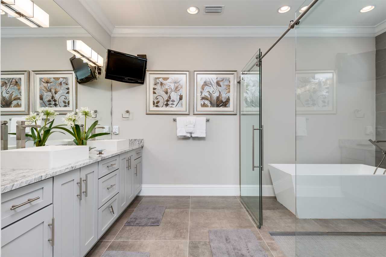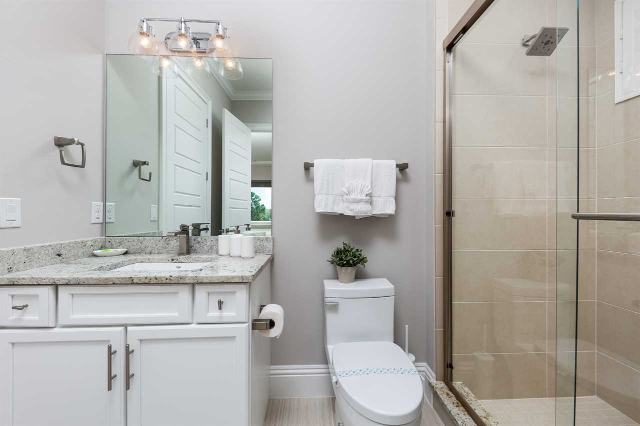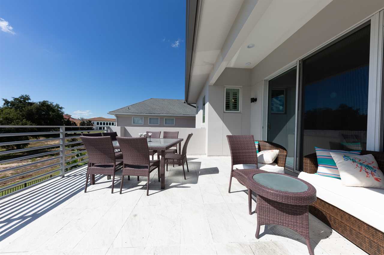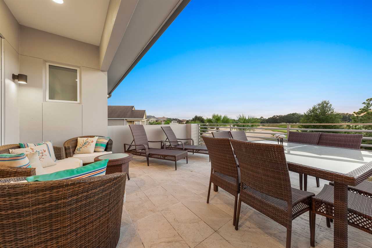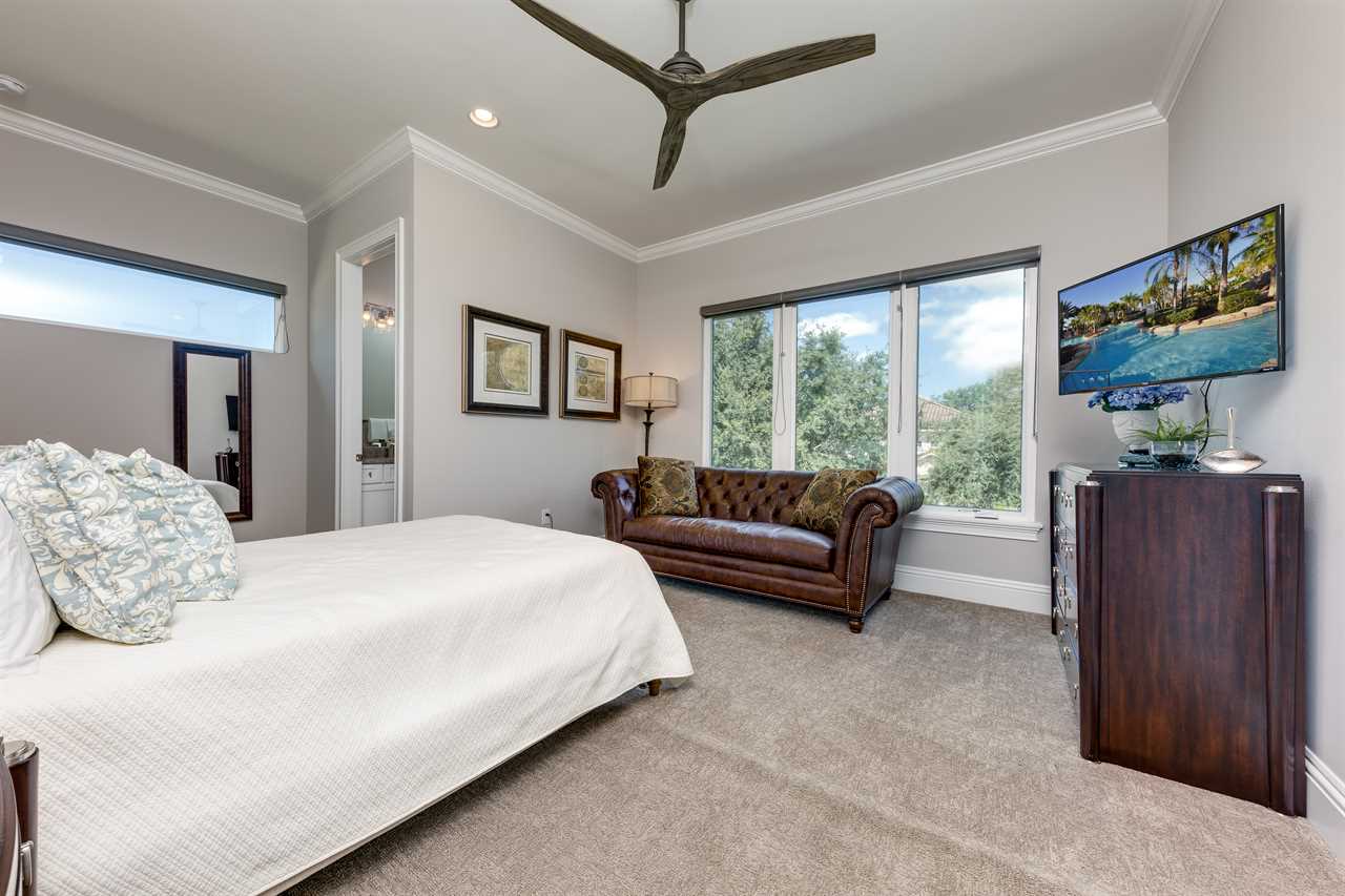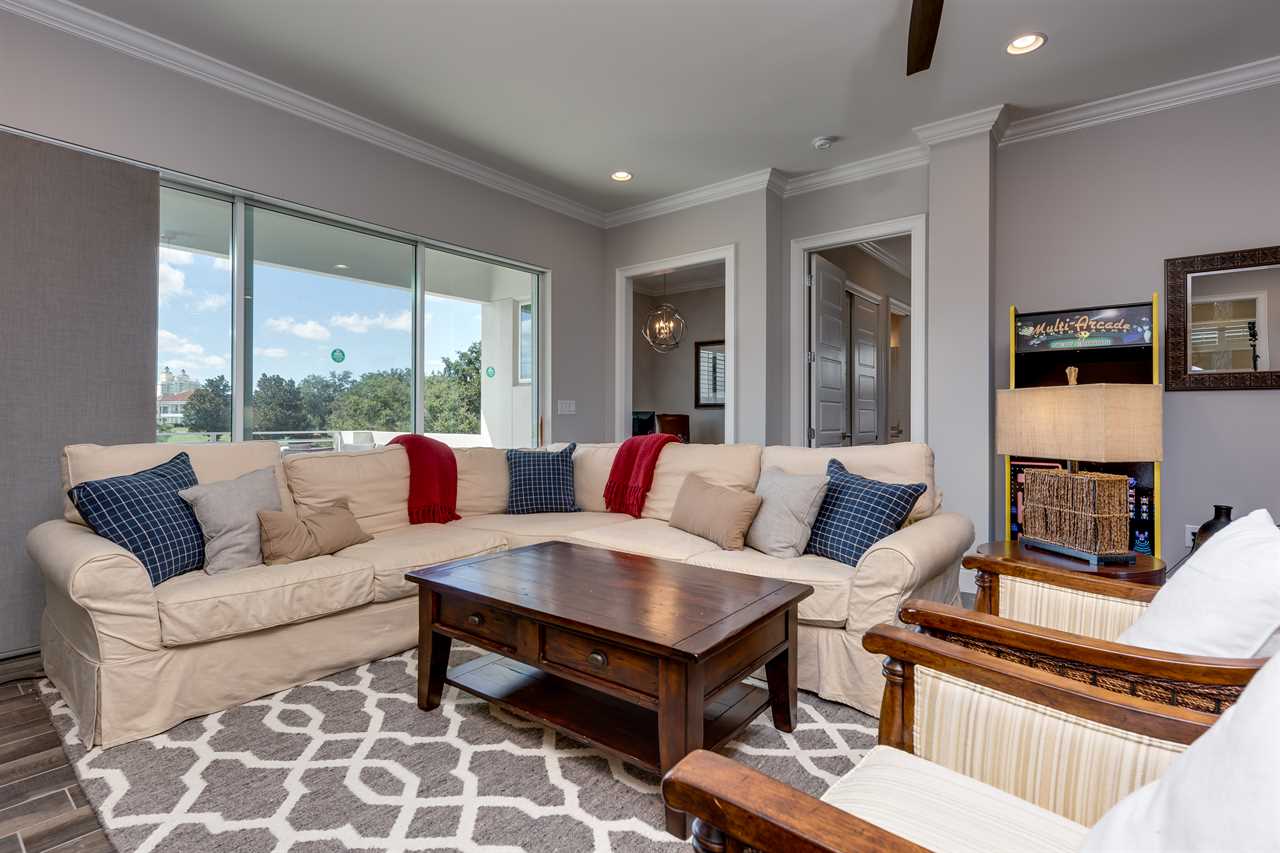 The second floor is perfect for entertaining with a large poker table, custom-designed slate pool table, wet bar with beverage cooler, and large sectional sofa with a large 70-inch 4K Smart TV. For gaming options, the loft also has a Star Wars pinball machine, 60 game multi-arcade, PS3 with 4 controllers (the following games are available to play: Raymond Legends, DuckTales, SEGA Mega Drive: Ultimate Collections), NES Classic, and foosball. A large patio with a table and outside seating gives a great view of the pristine course behind the home. Two other king master suites with en suite bath, one queen room, a room with two twin beds features everyone's favorite mouse, and a room with a full-size bed. All of the bedrooms have Smart TVs, en suite bathrooms, and come complete with blackout roller shades perfect for the bright Florida sun.
