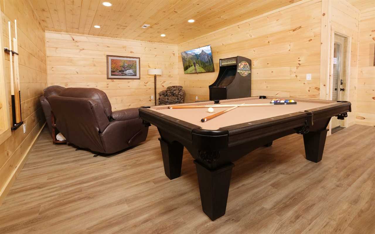 INSIDE THE CABIN Comfort and flexibility define the sleeping arrangements in this spacious cabin. With 2 king bedrooms, a cozy loft bunk, and extra sleeper sofas, it's ideal for families or groups. Three full bathrooms and a half bath offer plenty of space for everyone to refresh with ease. • 2 king bedrooms with TVs • Loft with twin-over-futon bunk • 2 queen sleeper sofas (living room + rec room) • 3 full bathrooms (2 with walk-in showers, 1 with shower/tub combo) • 1 convenient half bath FULLY EQUIPPED KITCHEN & DINING Whip up snacks, home-cooked meals, or festive spreads in the full kitchen. Stone countertops and stainless steel appliances make cooking both stylish and convenient. Gather around the large dining table or enjoy a casual bite at the breakfast bar. • Stainless steel appliances + stone countertops • Cookware, dishes, and utensils included • Dining table for 8 guests • Breakfast bar with additional seating LIVING ROOM & RELAXATION SPACES After a day in the mountains, curl up by the fireplace in the inviting living room. A plush sectional, big screen TV, and cozy ambiance make it perfect for downtime. There's also a game room nearby for even more indoor entertainment. • Sectional sofa and electric fireplace • Big screen TV for movie nights • Board games and lounging spaces GAME ROOM & PRIVATE INDOOR POOL Stay in and play with plenty of fun right at your fingertips. Challenge friends to a game of pool or revisit classics on the arcade machine. Don't forget to enjoy a swim any time of year in your private indoor pool, complete with built-in steps and large windows. • Pool table + classic arcade machine • Big screen TV and comfy media seating • Private indoor pool with surrounding windows • Built-in steps for easy pool access OUTDOOR FEATURES Take in the fresh mountain air from the cabin's deck surrounded by trees. Fire up the grill for dinner, unwind in the hot tub, or dine al fresco with loved ones. The flat, paved parking area and easy 3-step entry make arrival simple and stress-free. • Bubbling hot tub on the deck • Outdoor dining table + rocking chairs • Gas grill (propane not included) • Flat, paved parking for 3 vehicles • Easy entry with only 3 steps IMPORTANT TO NOTE This cabin is not pet friendly, including for service animals. Community amenities are not included, but with your own indoor pool and plenty of games, you won't miss a thing. A Pool's Paradise offers year-round fun in a peaceful mountain setting. • No pets allowed • No access to community amenities • Indoor pool is private and open year-round Whether you're planning a spring break adventure, a holiday celebration, or a fun family escape, A Pool's Paradise blends comfort, entertainment, and beautiful wooded surroundings for a truly memorable Smoky Mountain getaway.