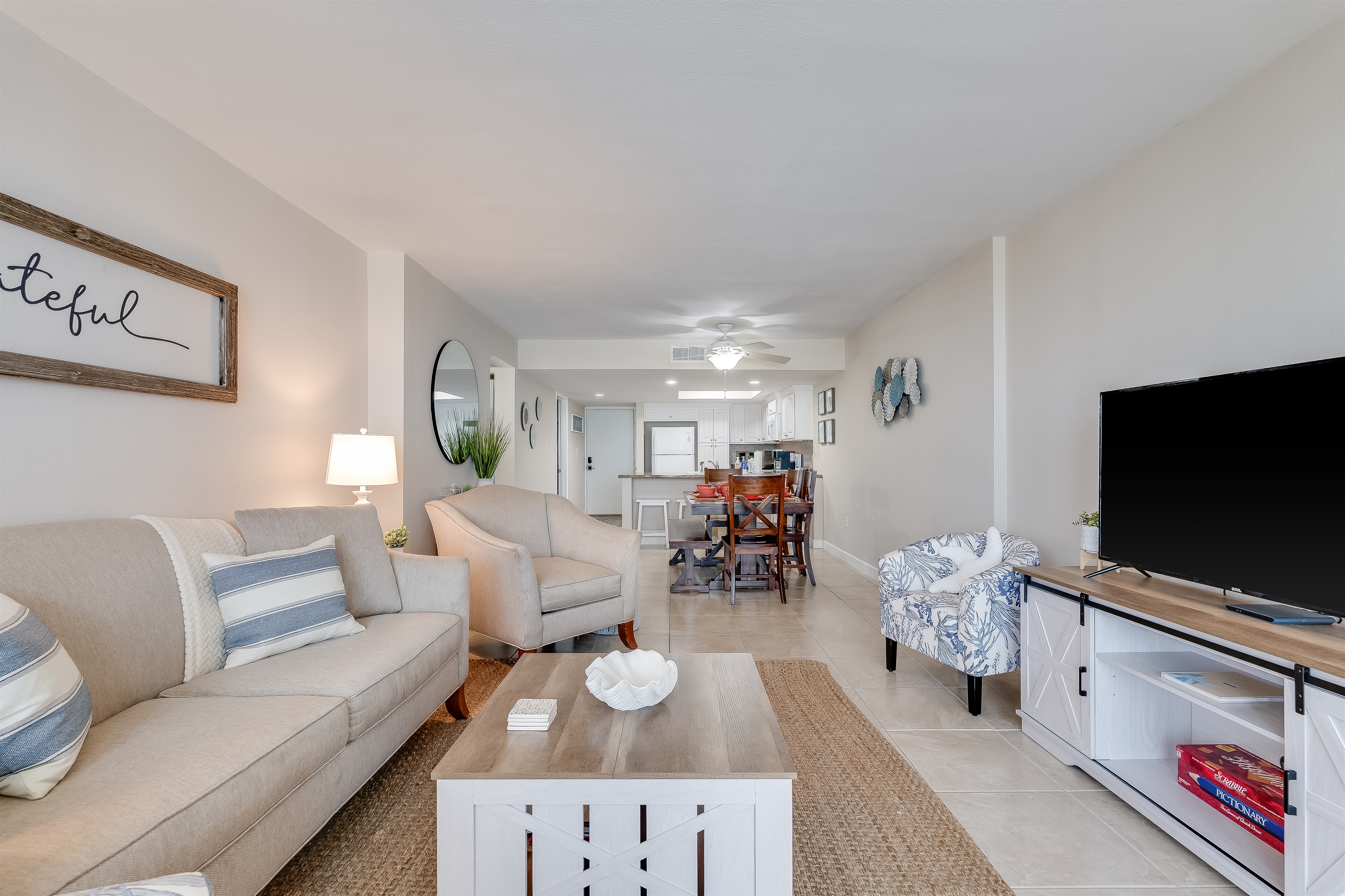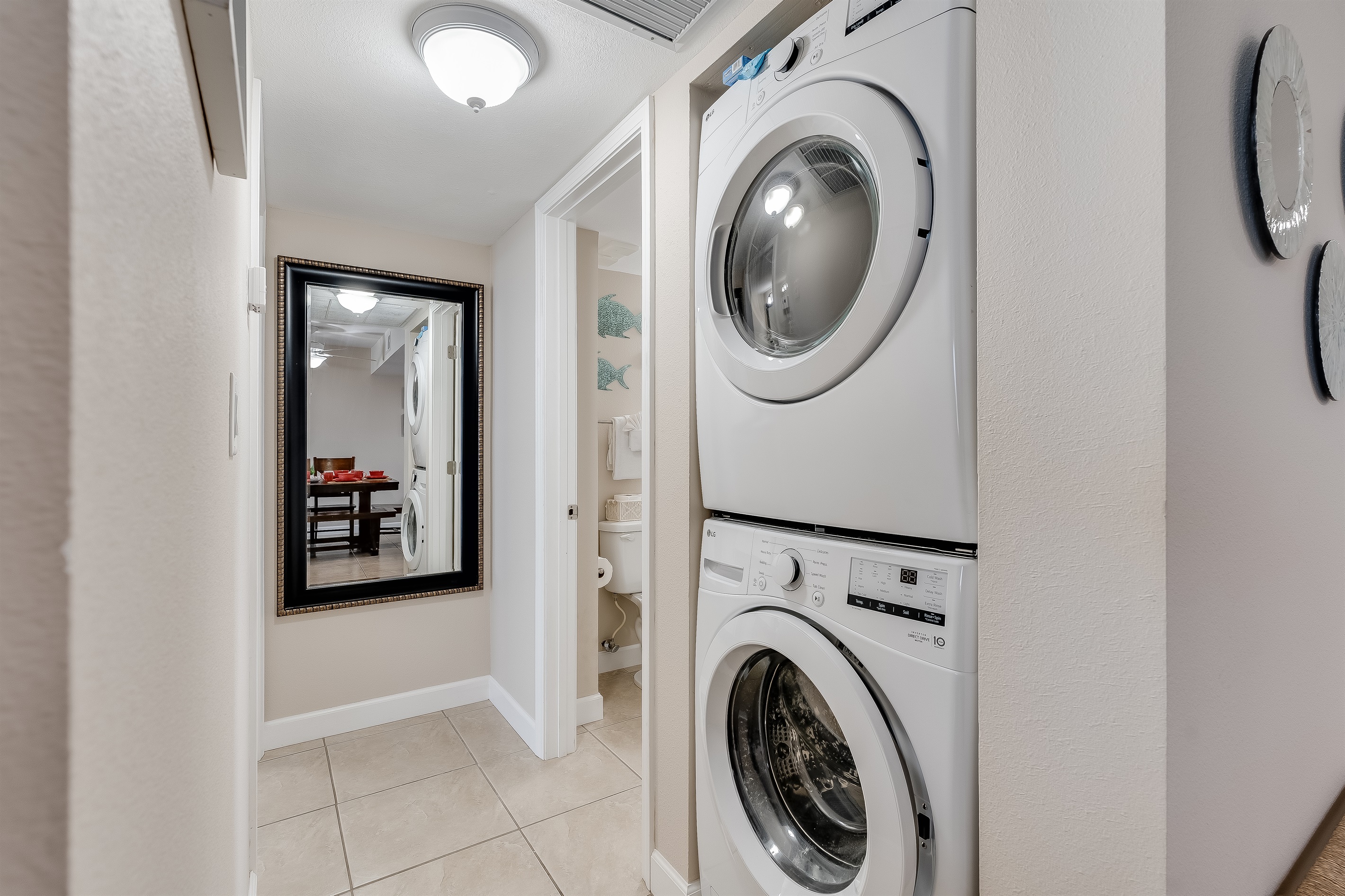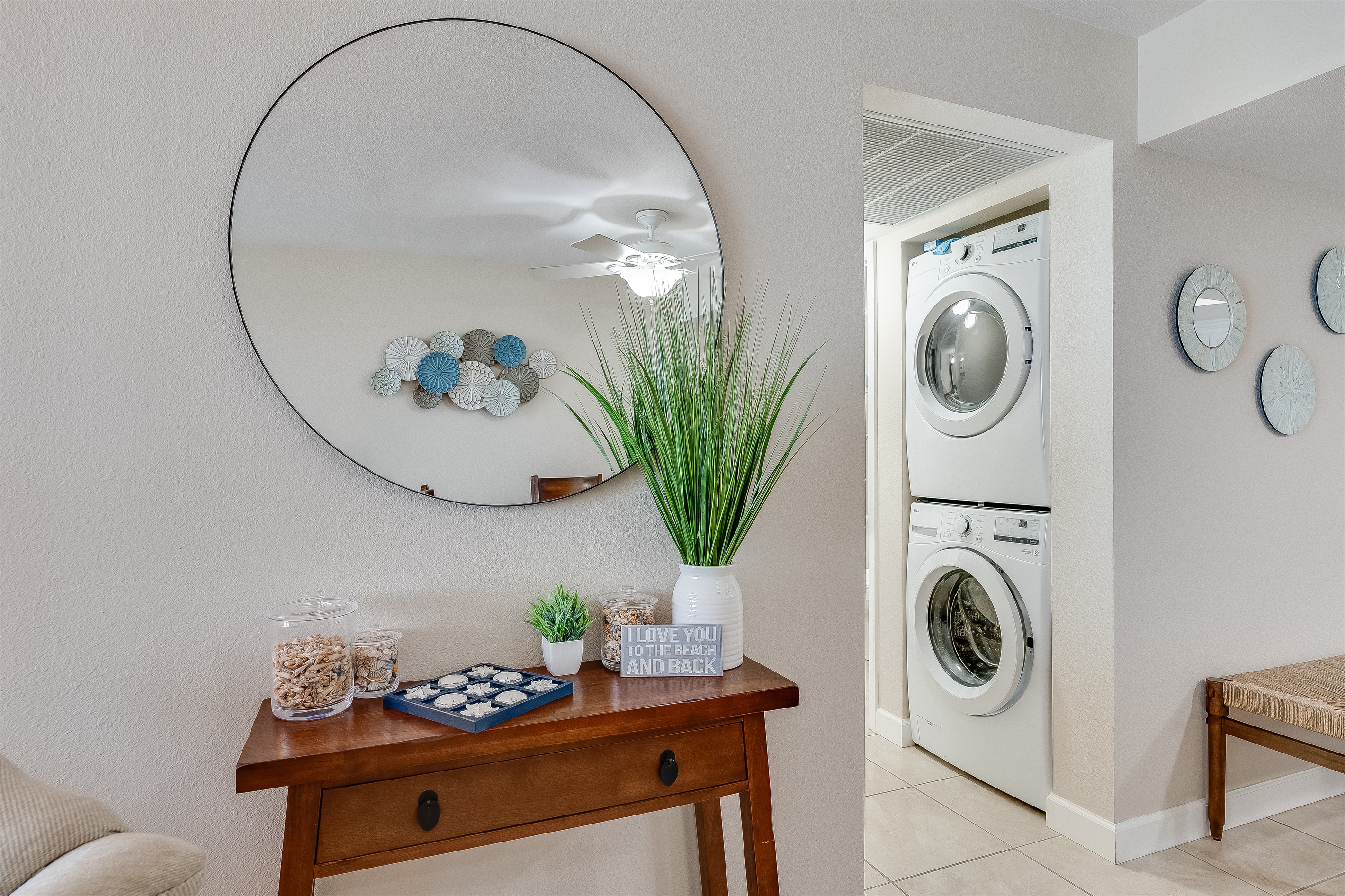 With two bedrooms and two full baths, Beach Life is Life is the perfect rental for families! Floor-to-ceiling sliding glass doors lead you to your large balcony that spans living room and bedroom giving you the BEST sunset views. We provide a fully equipped kitchen, plenty of dining room seating, and comfortable living room. Or enjoy the ocean breeze while serving your meals on the balcony – there’s a large table and extra seating outside as well. Should you decide to do laundry, we offer new washer/dryer. All linens are provided, including beach towels.