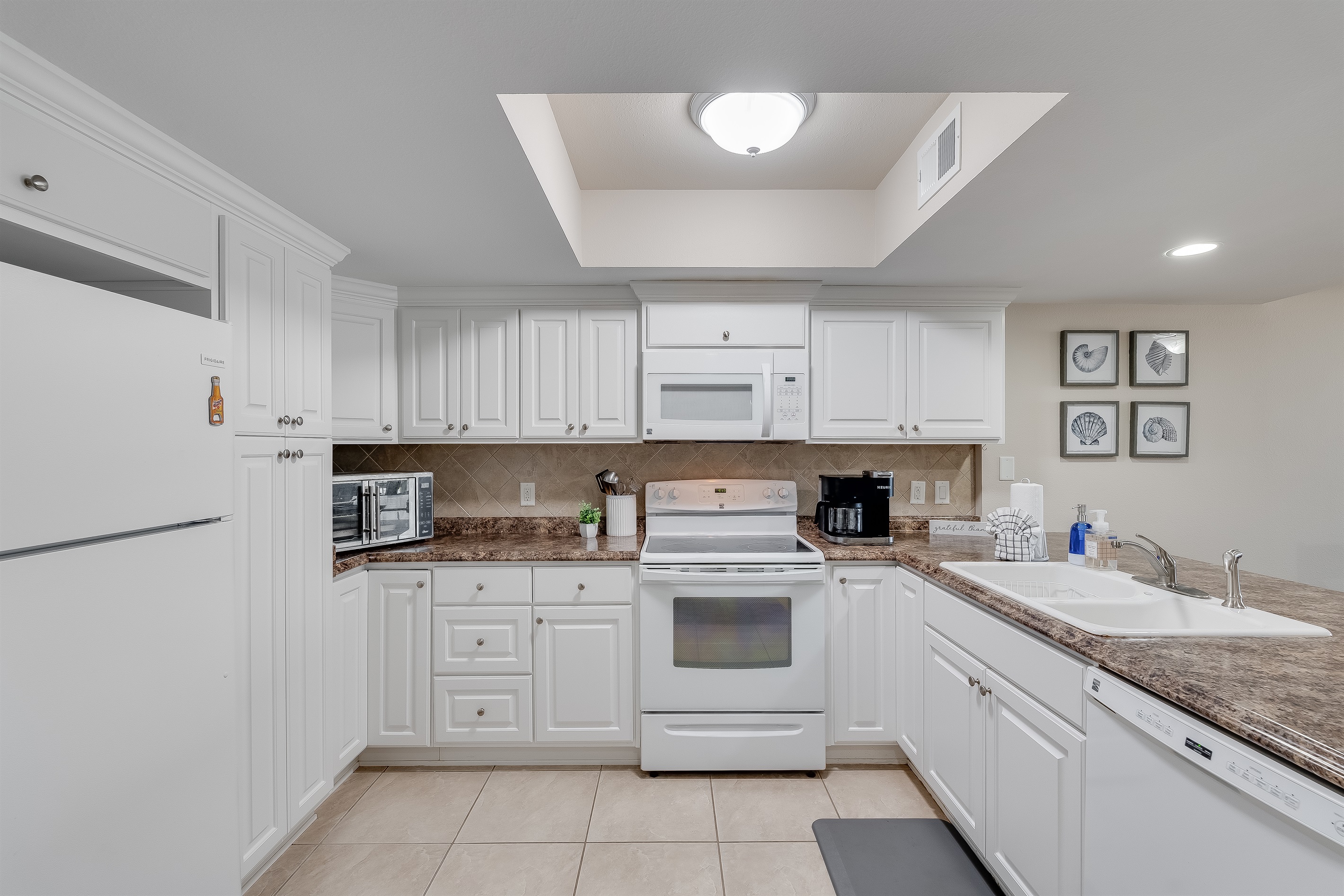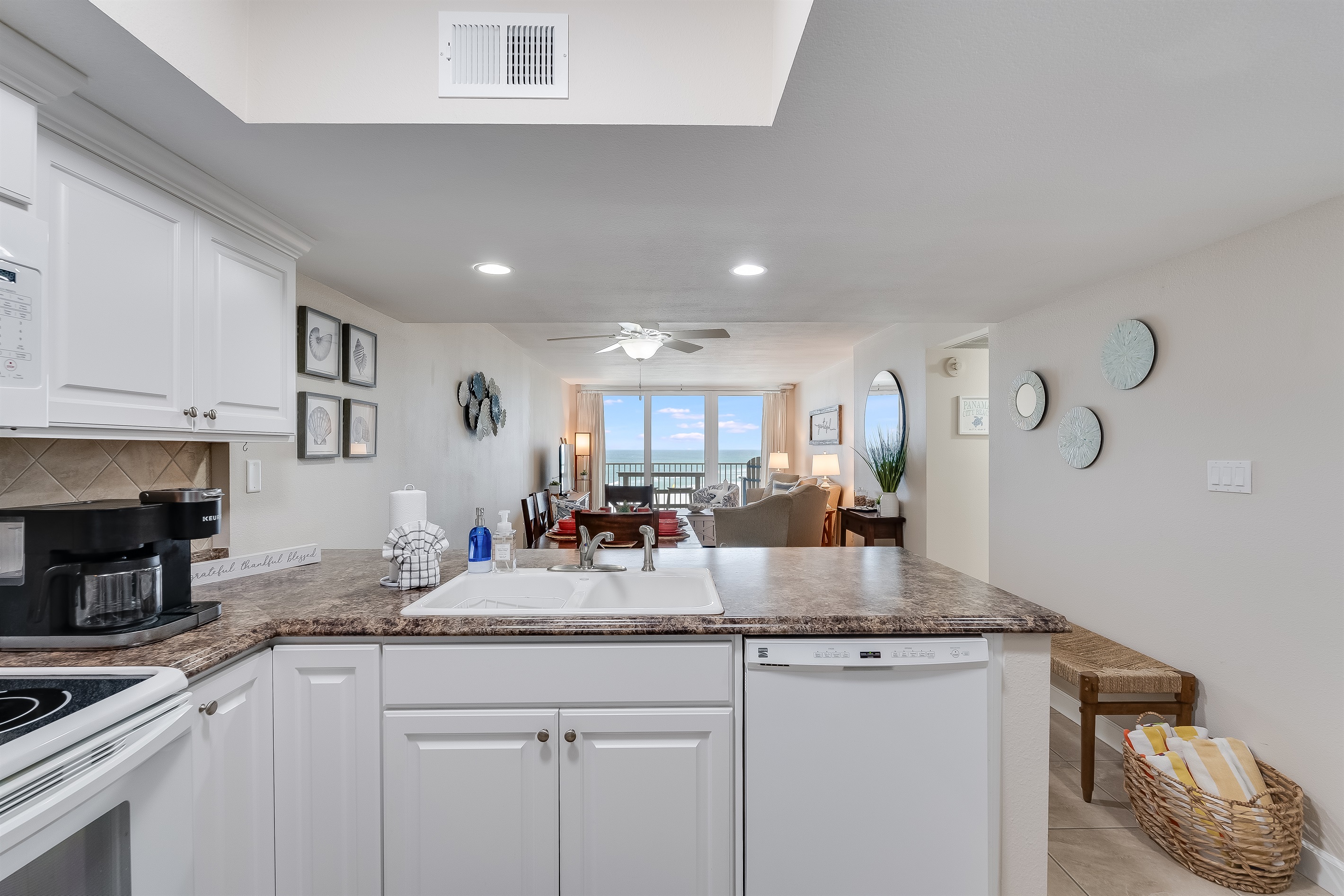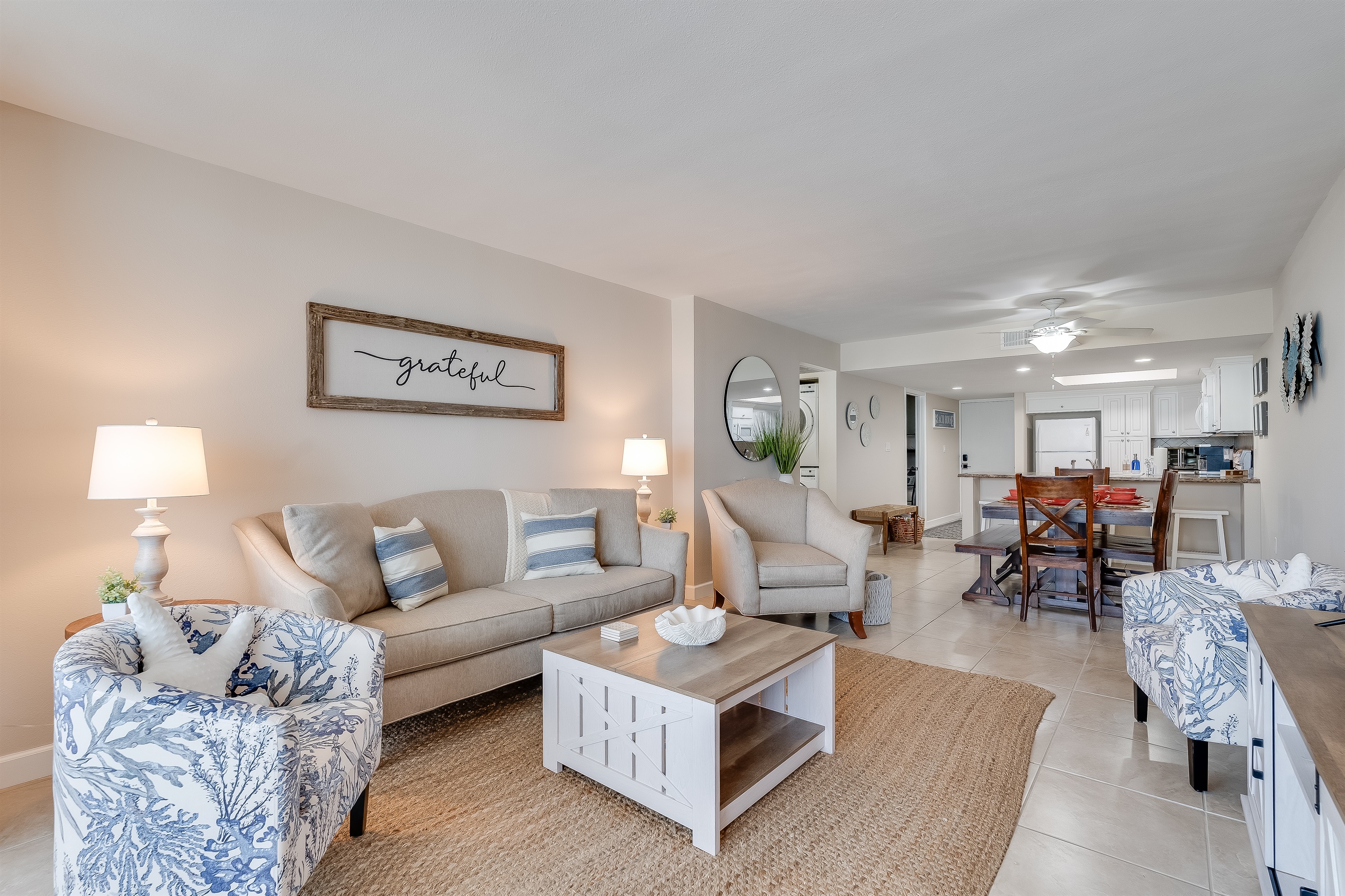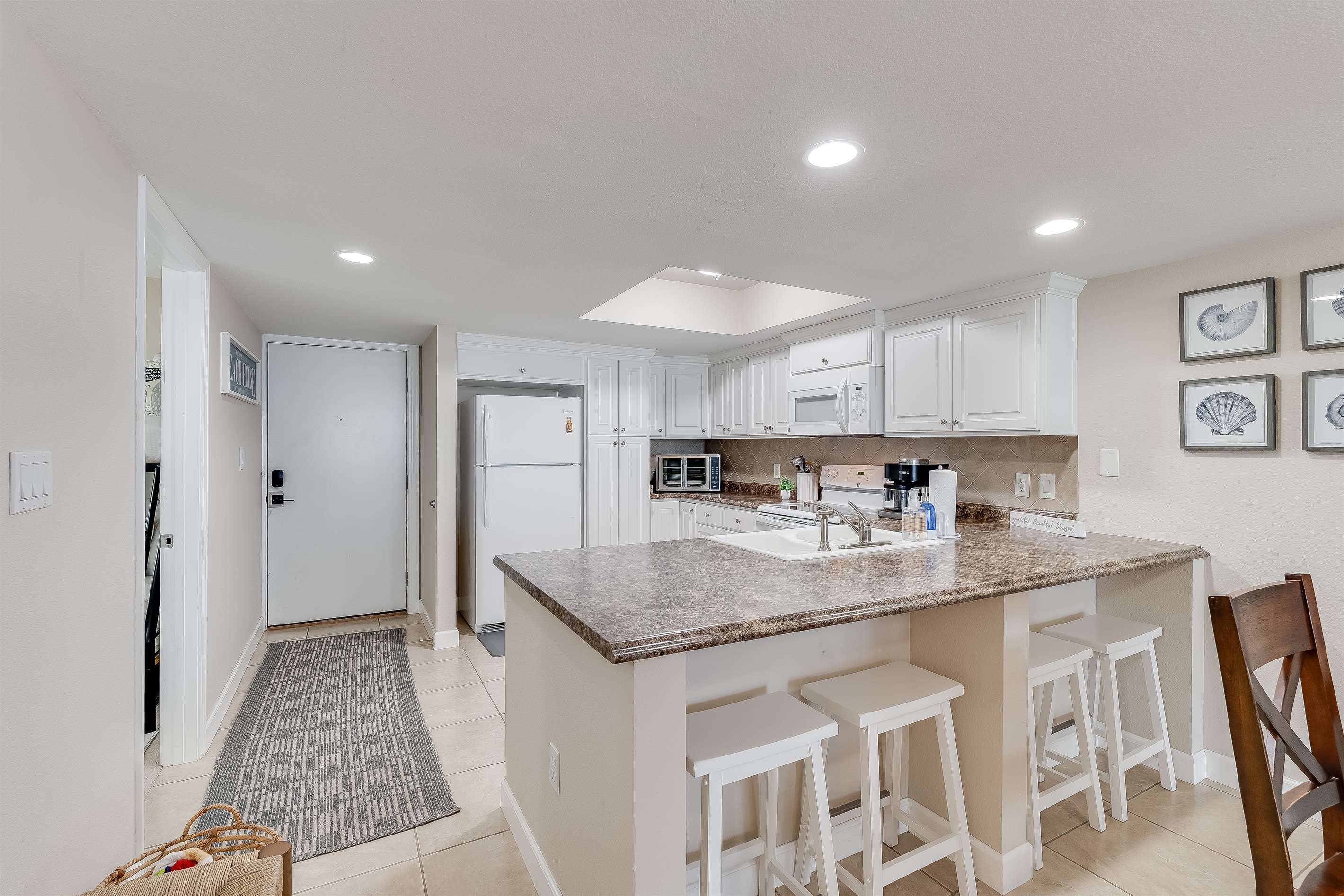 With two bedrooms and two full baths, Beach Life is Life is the perfect rental for families! Floor-to-ceiling sliding glass doors lead you to your large balcony that spans living room and bedroom giving you the BEST sunset views. We provide a fully equipped kitchen, plenty of dining room seating, and comfortable living room. Or enjoy the ocean breeze while serving your meals on the balcony – there’s a large table and extra seating outside as well. Should you decide to do laundry, we offer new washer/dryer. All linens are provided, including beach towels.