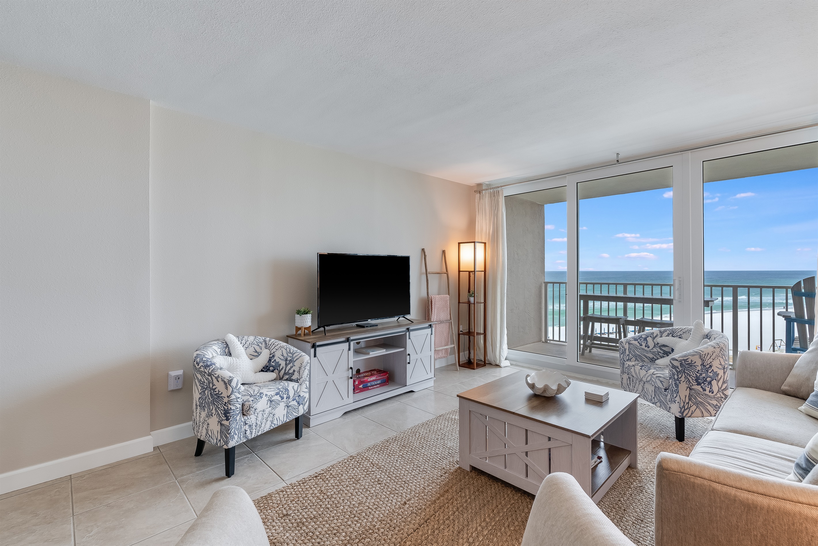 Welcome to Dunes of Panama C606! This beautiful condo offers fabulous Gulf Views from the living room, kitchen and master suite. This is a top floor unit with tile throughout, including the bathrooms, with carpeted bedrooms.
